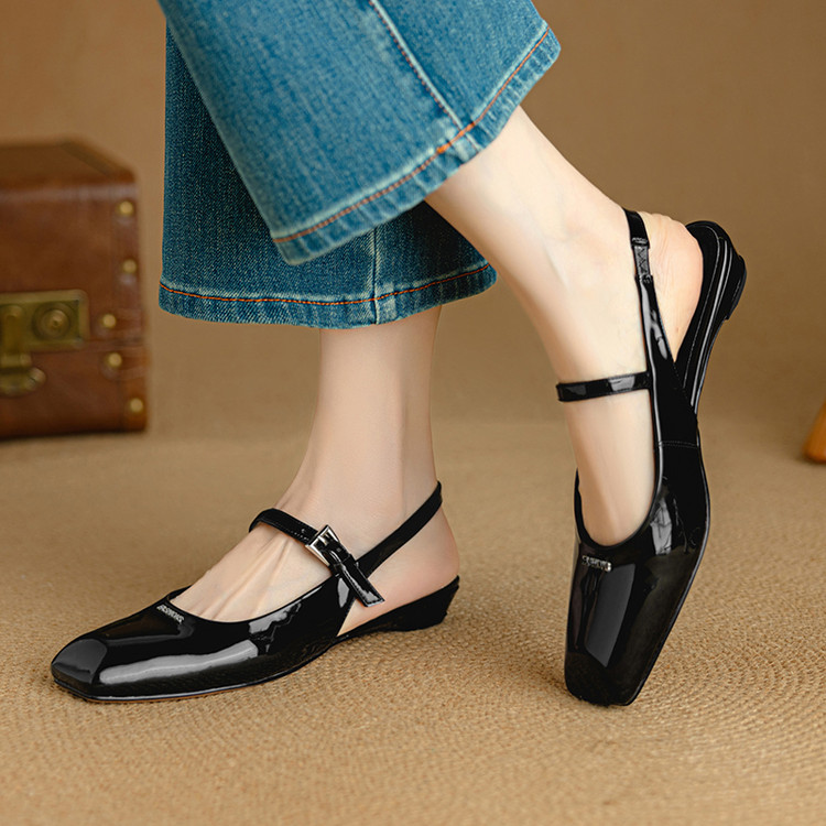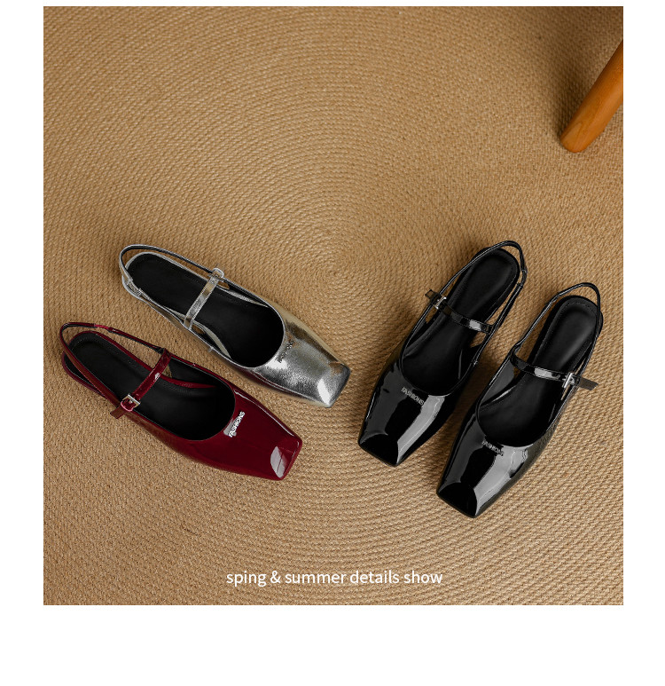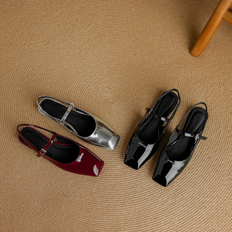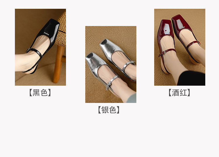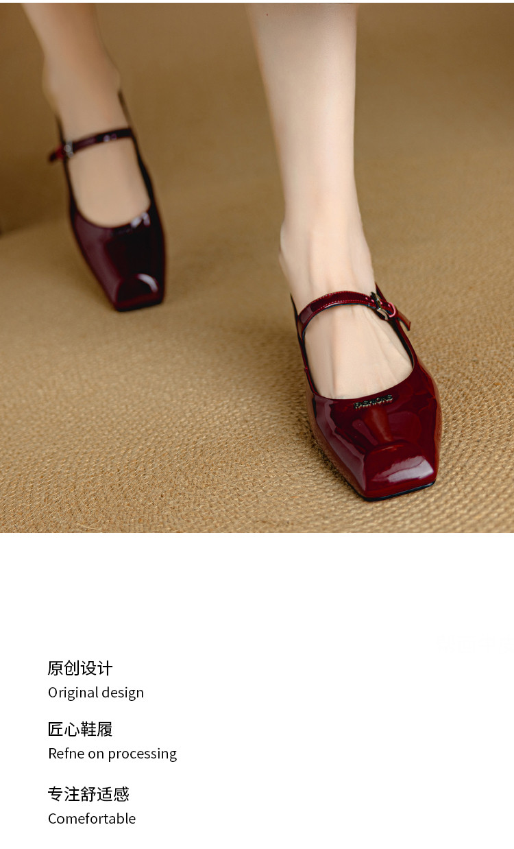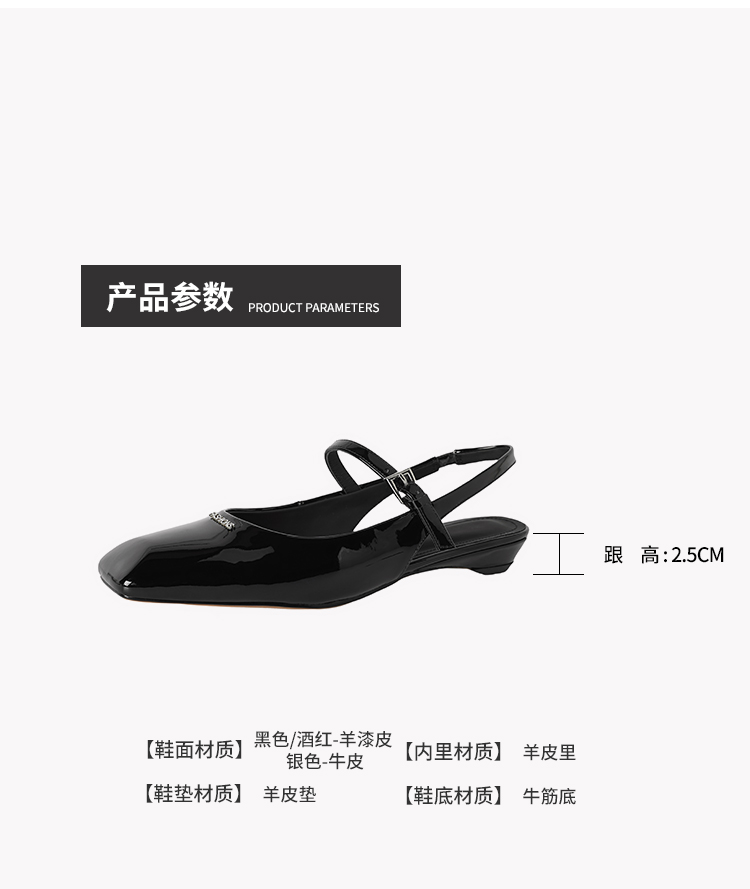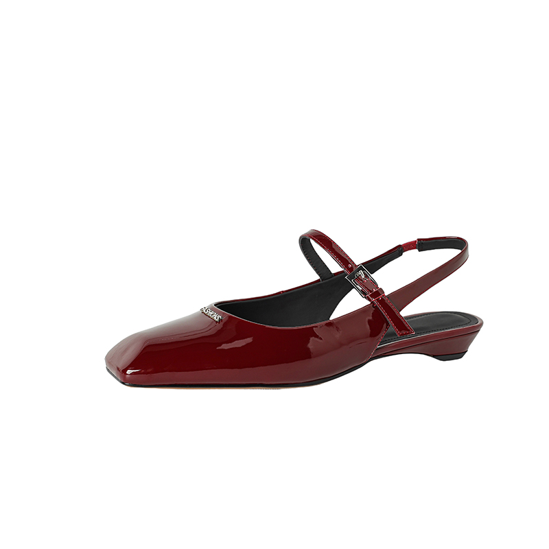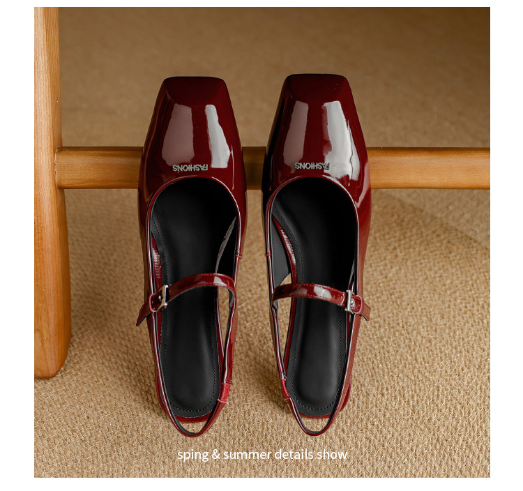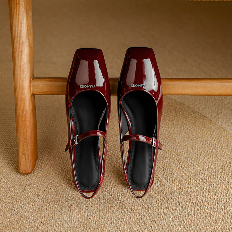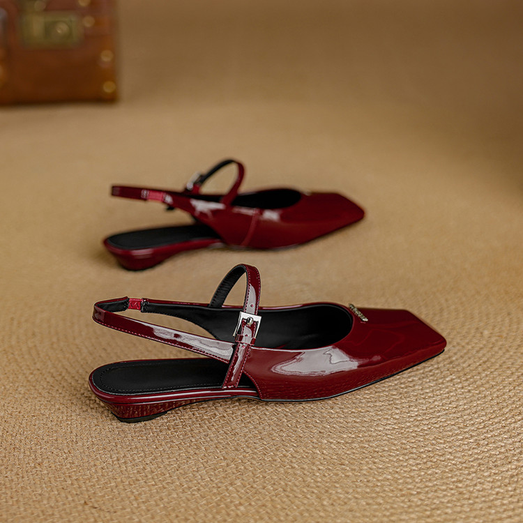 【预售5天】法式复古方头一字带后空凉鞋新款百搭通勤红色玛丽珍鞋NJMK&K1392