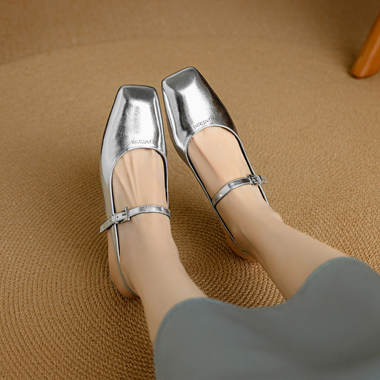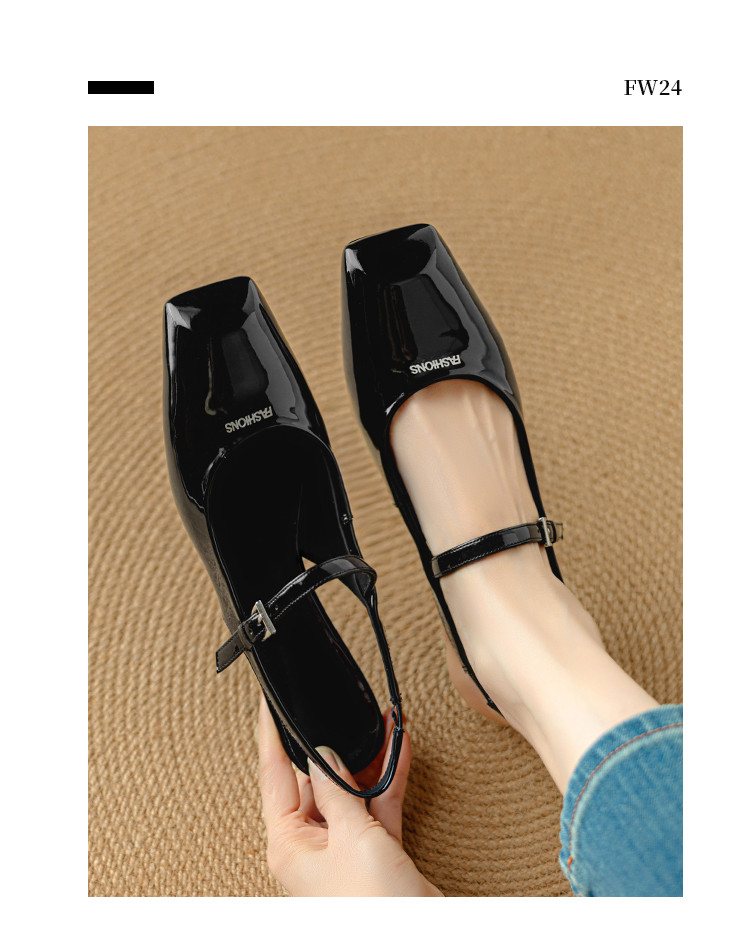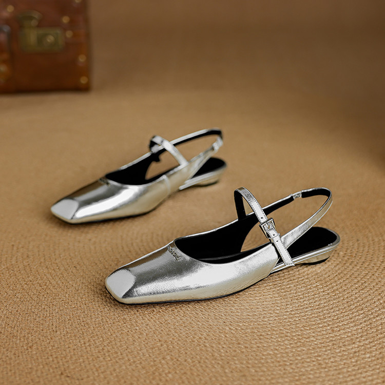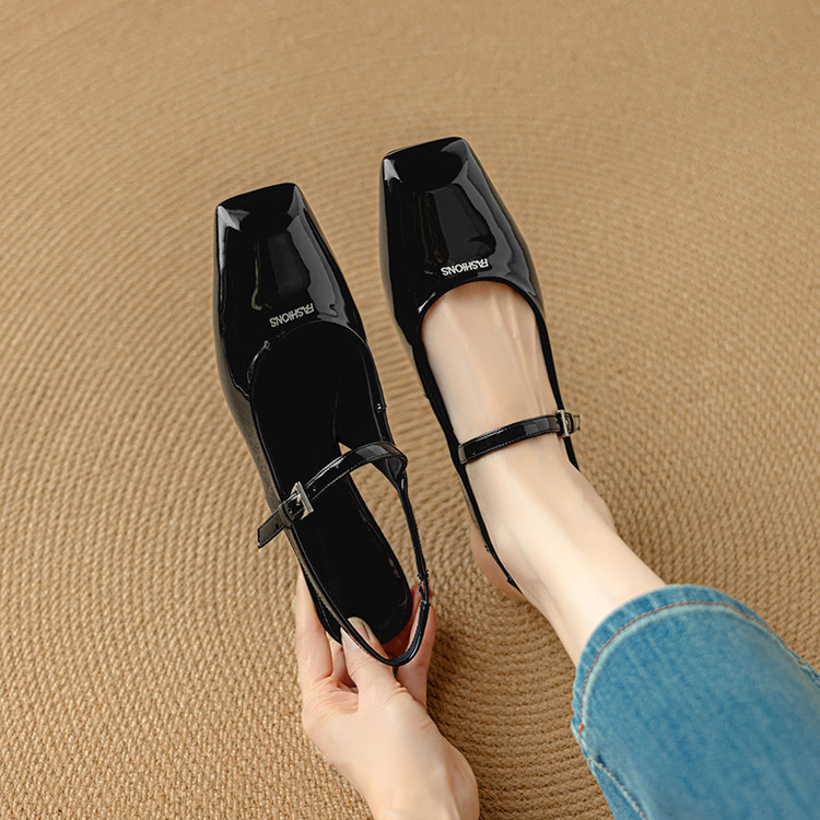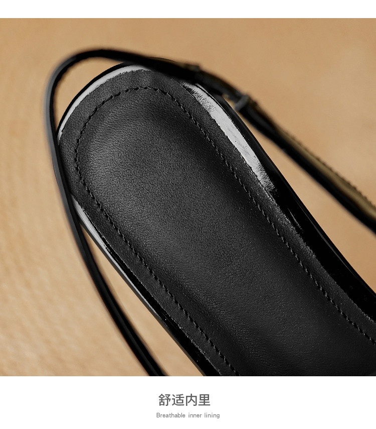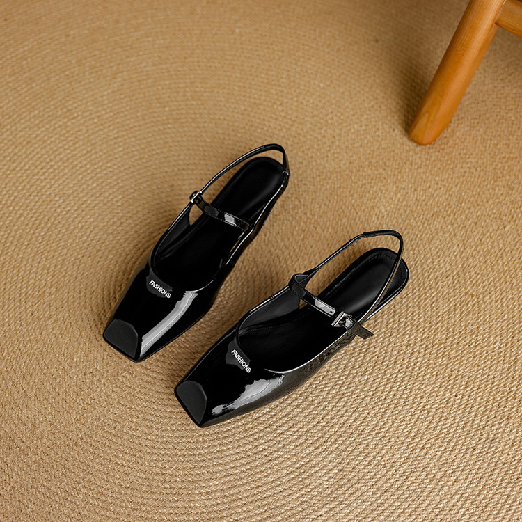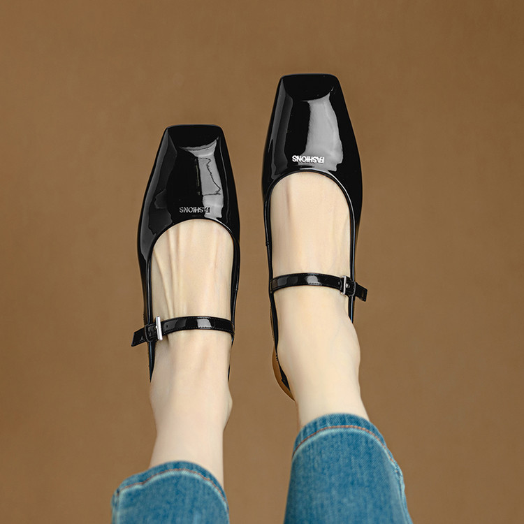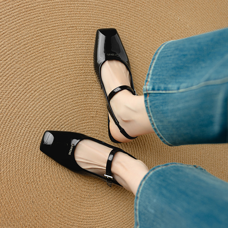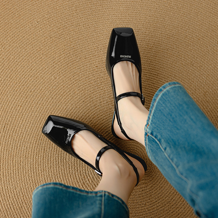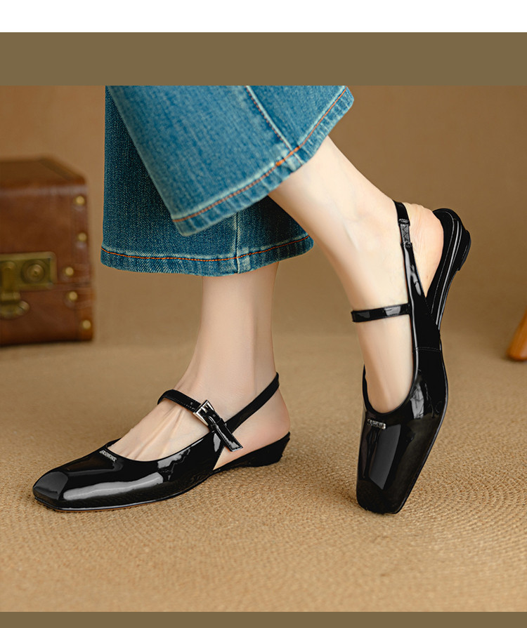 【预售5天】法式复古方头一字带后空凉鞋新款百搭通勤红色玛丽珍鞋NJMK&K1392