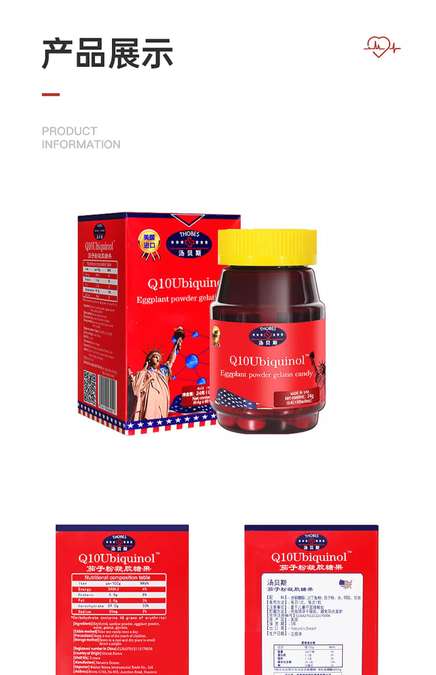 美国原装进口汤贝斯辅酶Q10软胶囊60片/瓶 1瓶