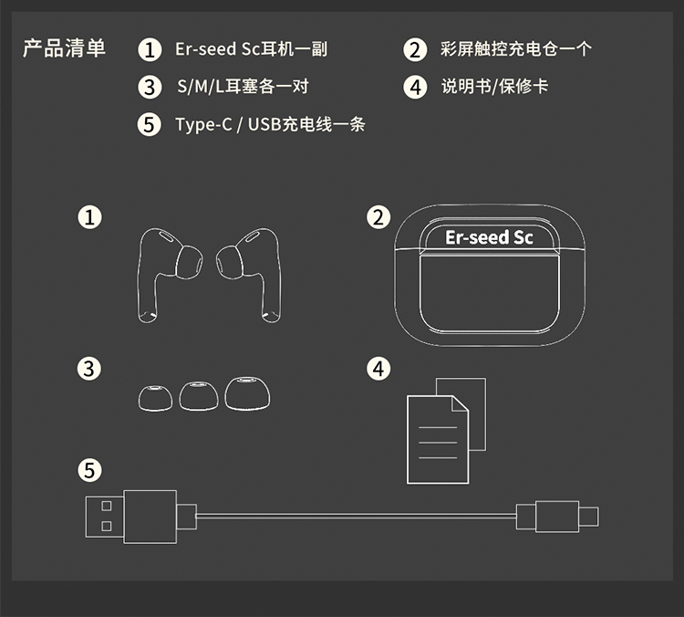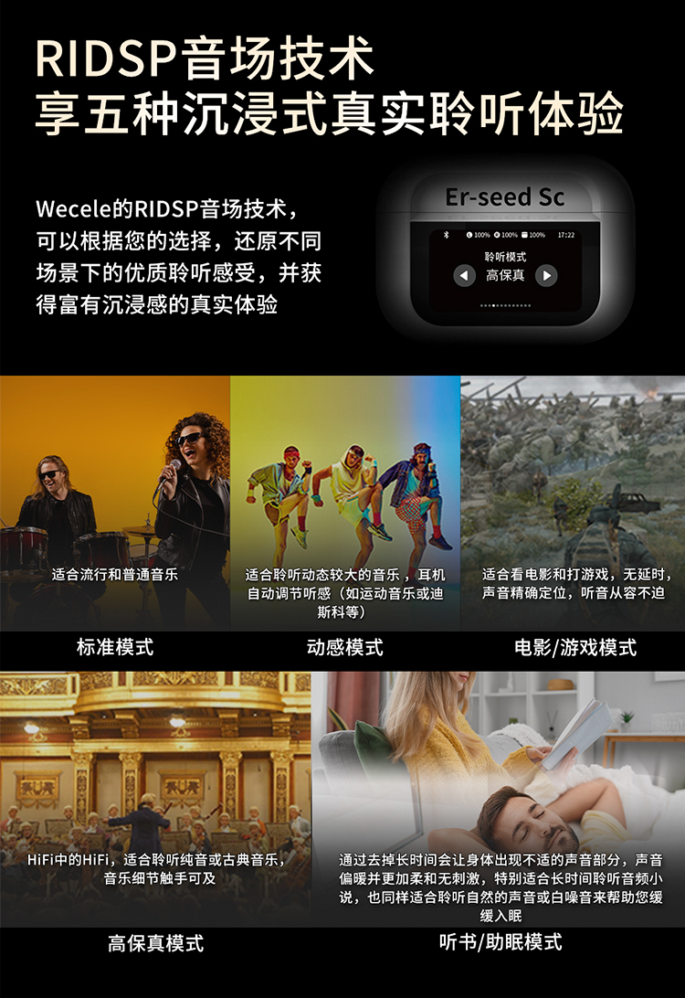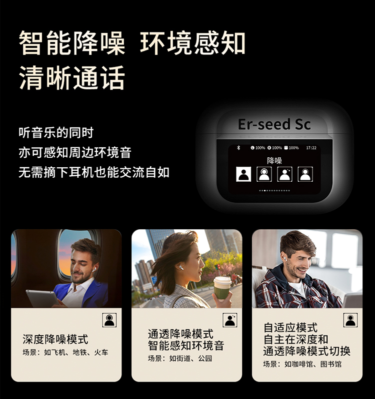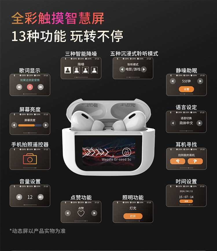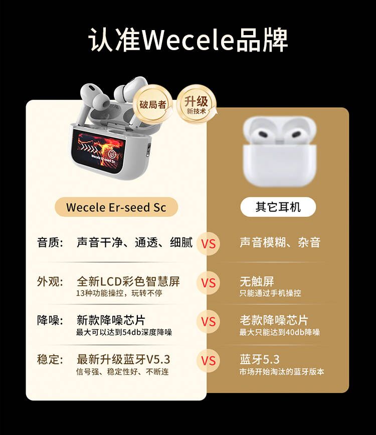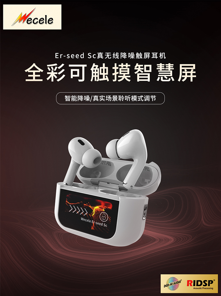 WECELE Er-seed Sc 彩色触摸屏 真无线智能降噪蓝牙耳机2024新款 高端品牌超长续航大电量高音质 不漏音 白色 Er-seed Sc