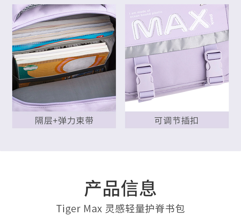 【达播露娜】tigerfamily虎米 3-6年级/初中男女书包小学生背包初中男女生护脊双肩包灵感系列