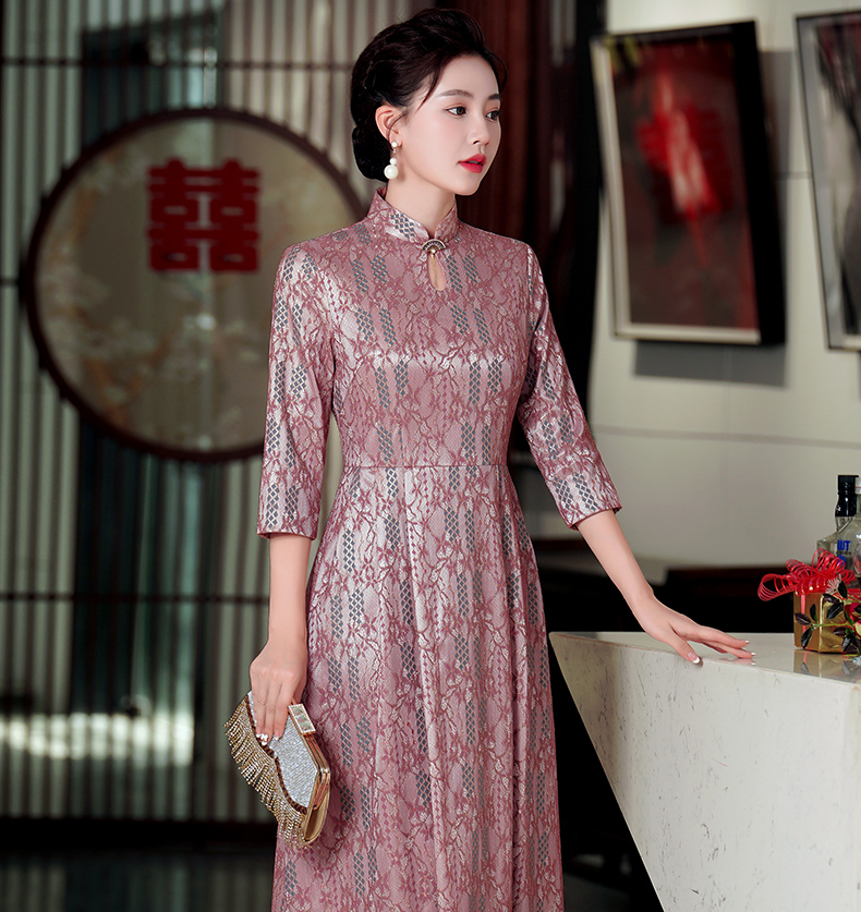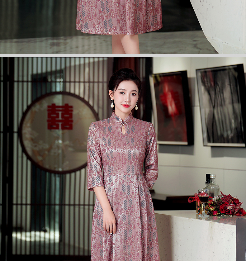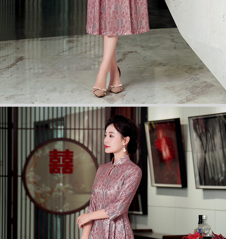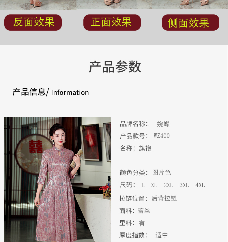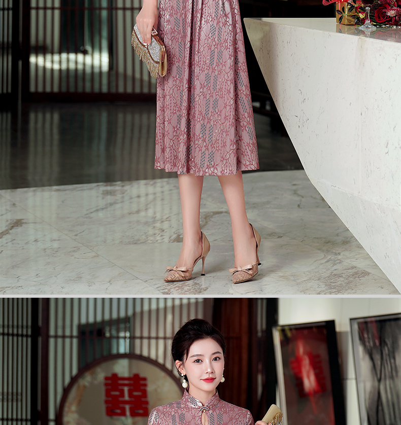 WD-WZ400秋天旗袍改良蕾丝连衣裙订婚婚宴礼服喜婆婆婚宴装