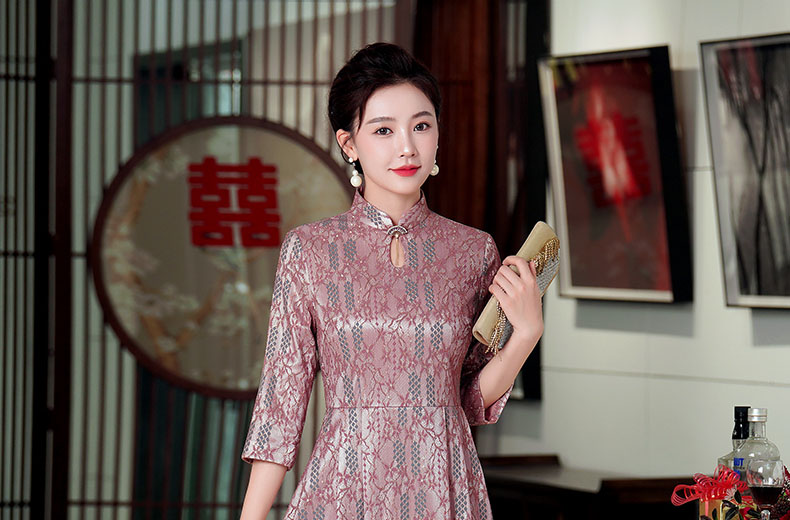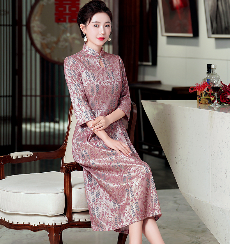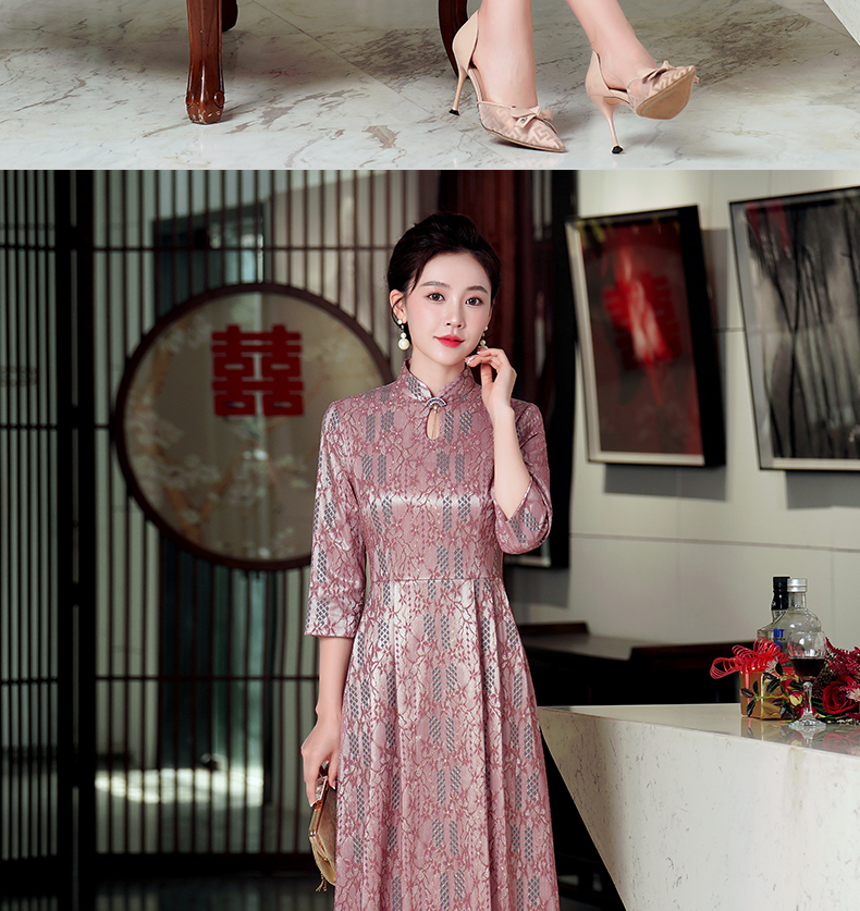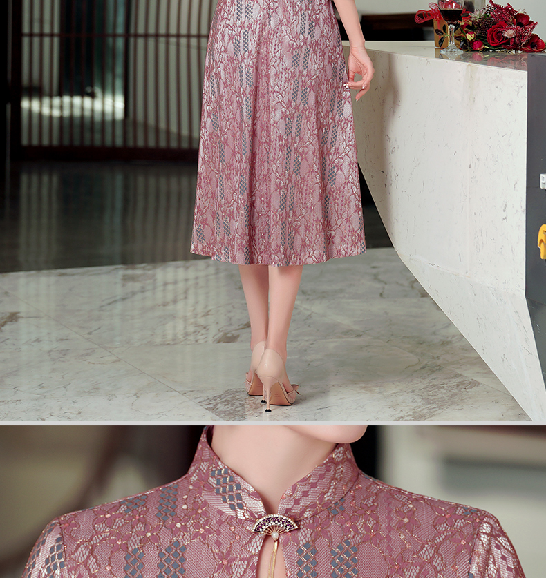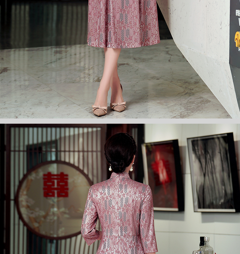 WD-WZ400秋天旗袍改良蕾丝连衣裙订婚婚宴礼服喜婆婆婚宴装