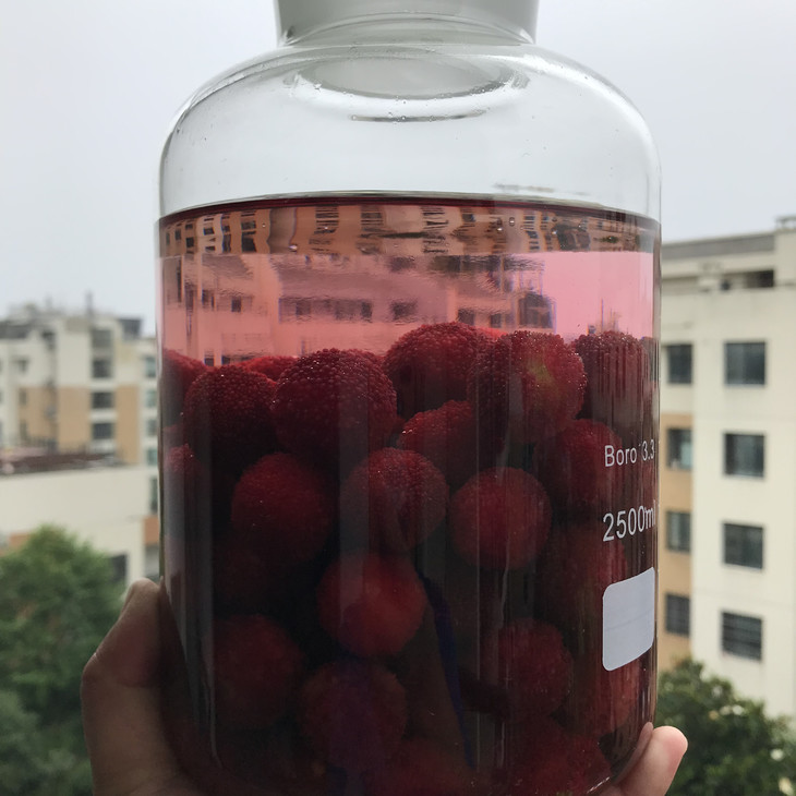 杨梅在白酒里可以很长时间保持不变质,泡过白酒的杨梅,酸甜依旧,酒味其中,别有一番滋味。