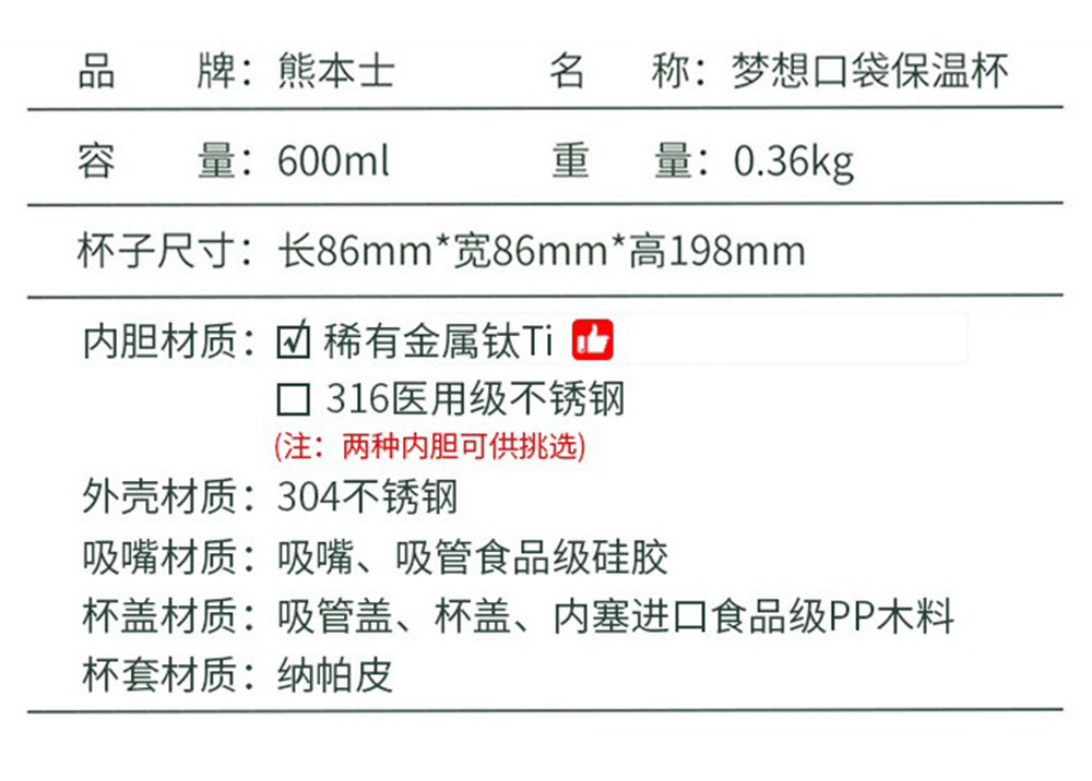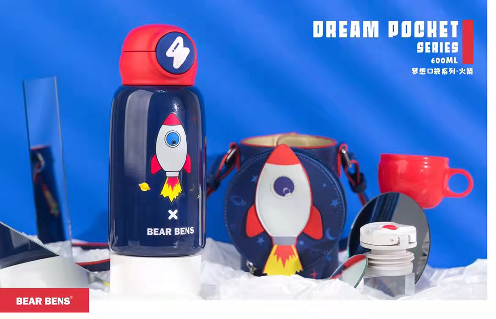 熊本士/BEARBENS宠爱系列316不锈钢无缝内胆硅胶杯套两盖儿童保温吸管杯 400ML