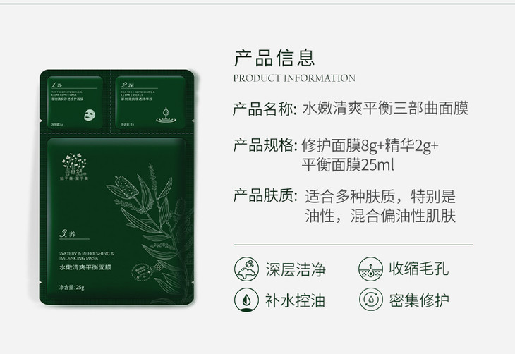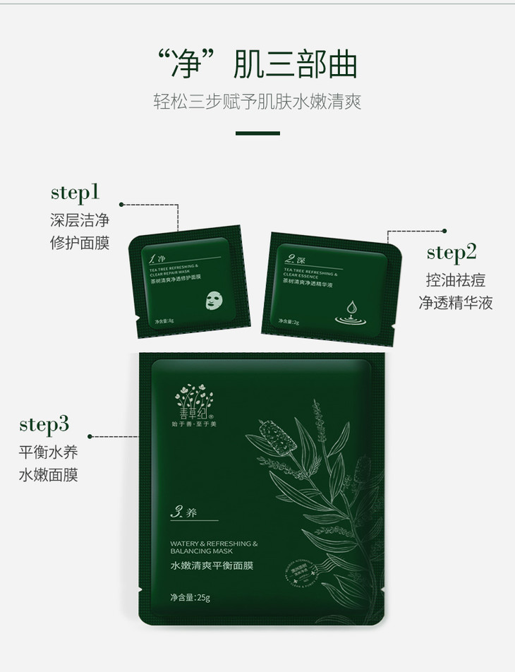【双旦礼遇季】善草纪茶树三代控油水乳+2.0茶树三部曲面膜1盒 祛痘保湿舒缓油皮油痘肌精油
