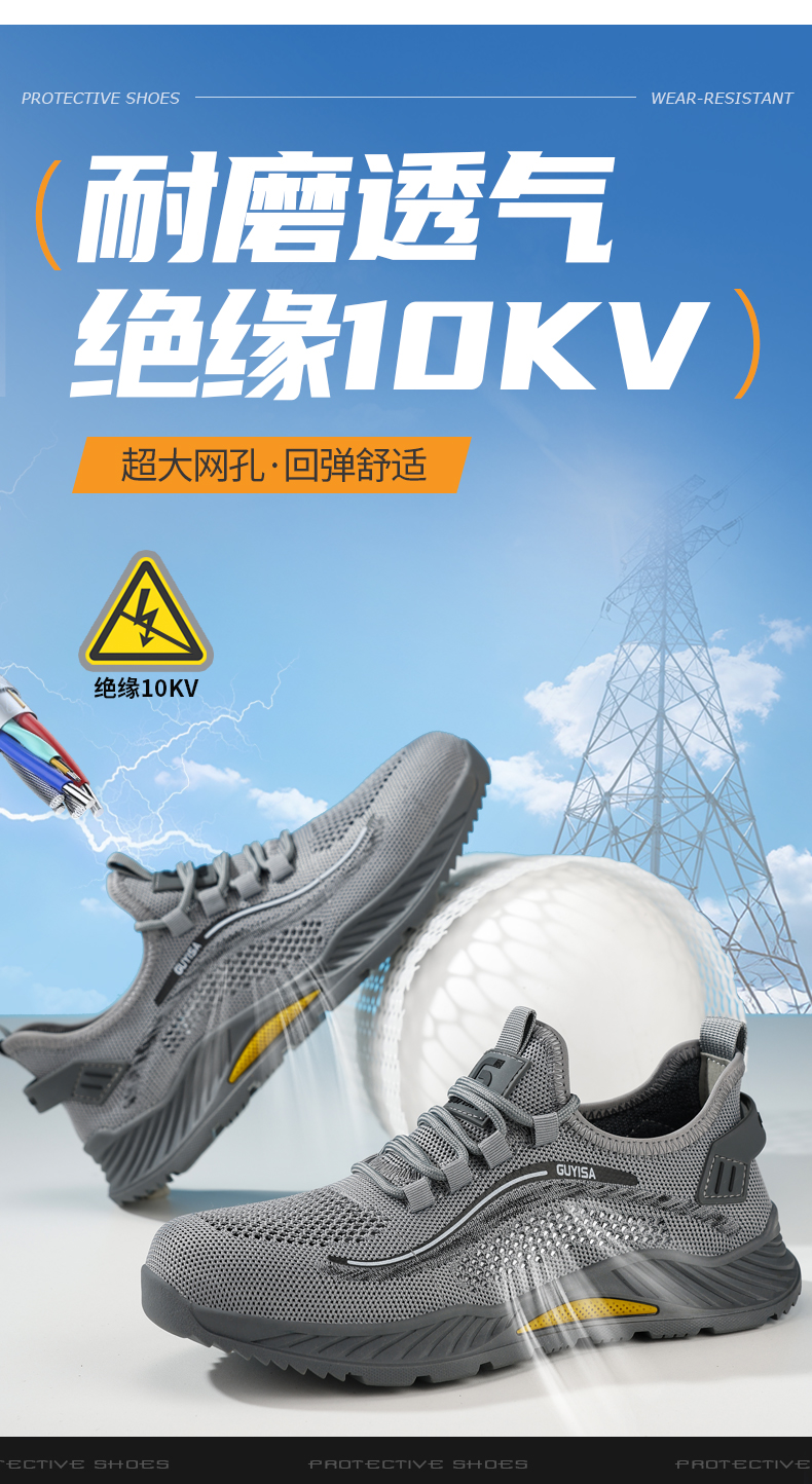 新款夏季透气绝缘10KV塑包头劳保鞋凯夫拉底中底防刺橡胶底防砸防刺