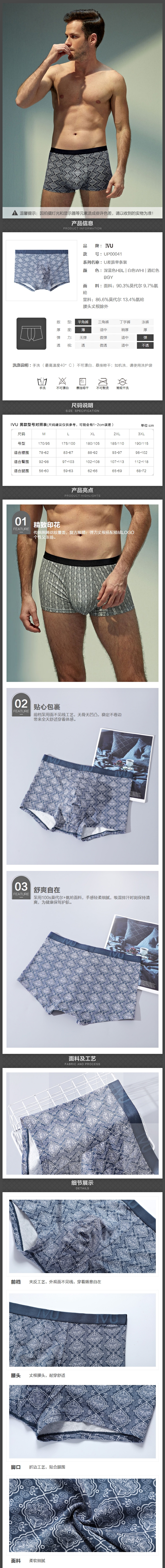 安莉芳旗下IVU印花薄款莫代尔内裤男士舒适中腰平角裤UP00041