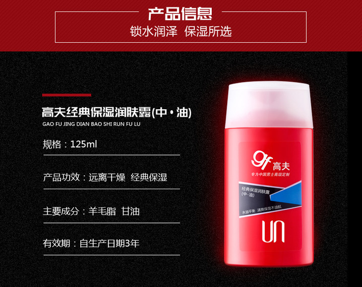 高夫经典保湿润肤露(中油)125ml保湿补水控油擦脸油男士