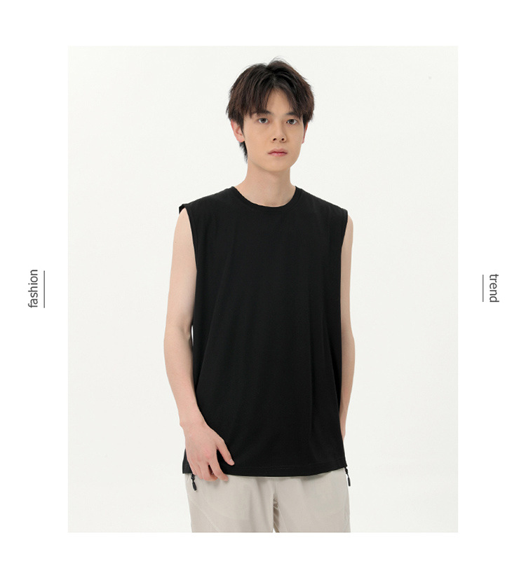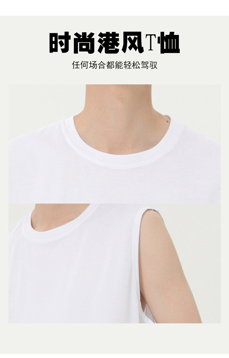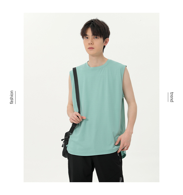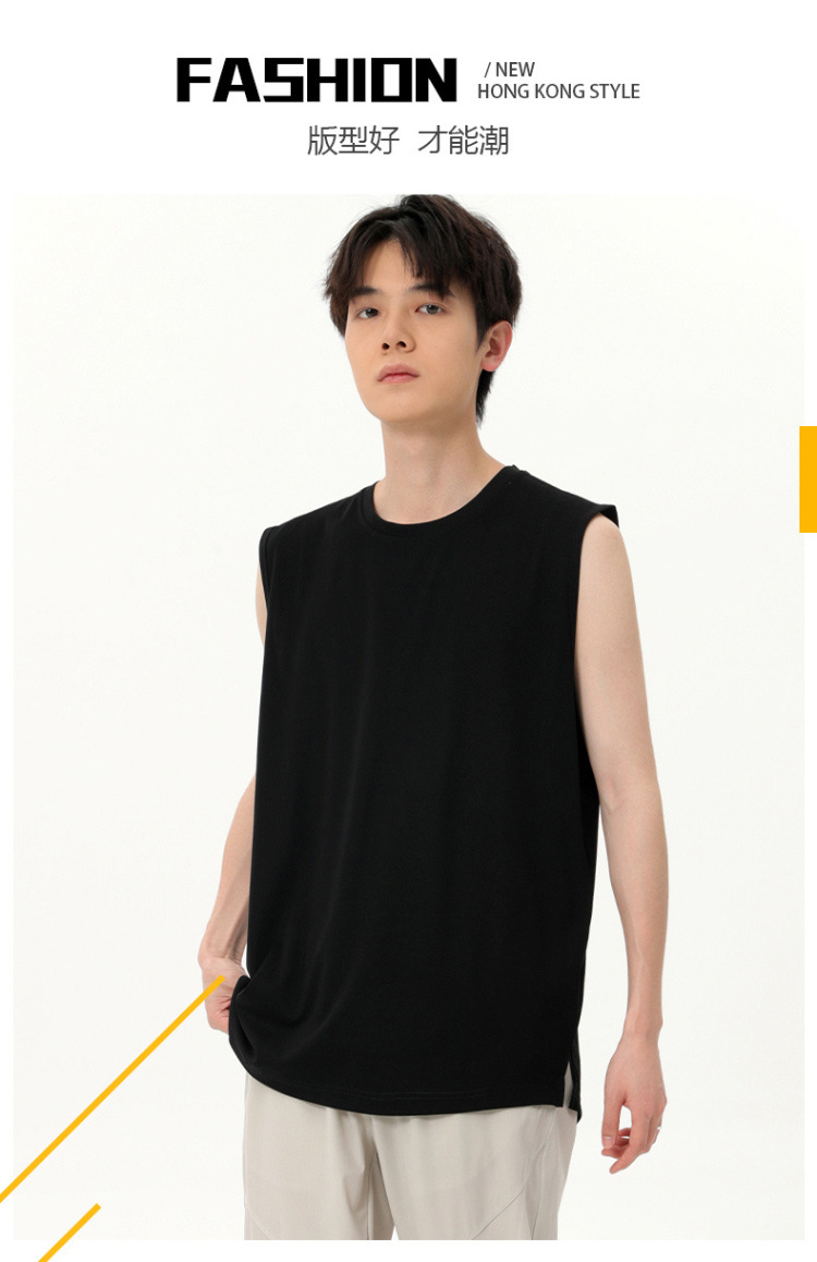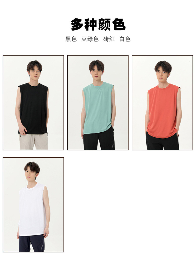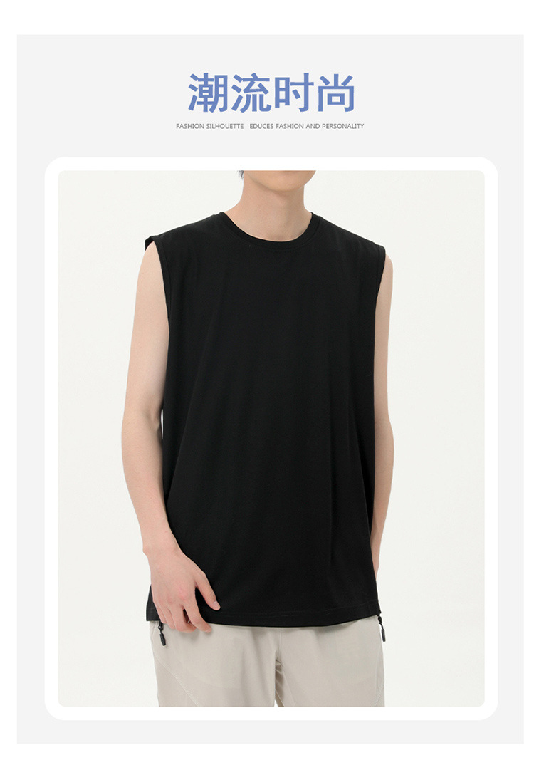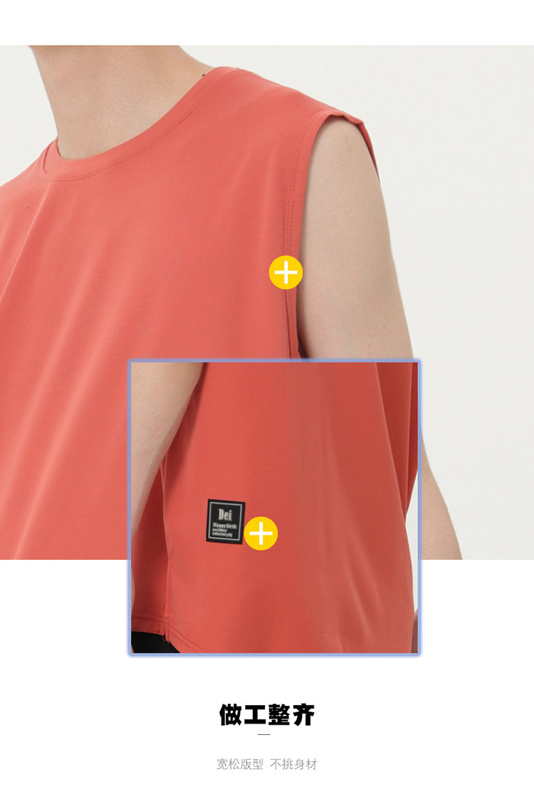 【冰氧棉】【DSK】大依优型大码纯色背心休闲运动宽松短袖T恤无袖背心加大码宽松上衣男士