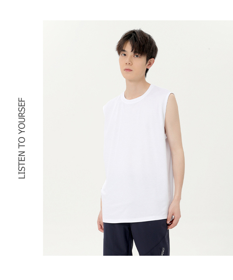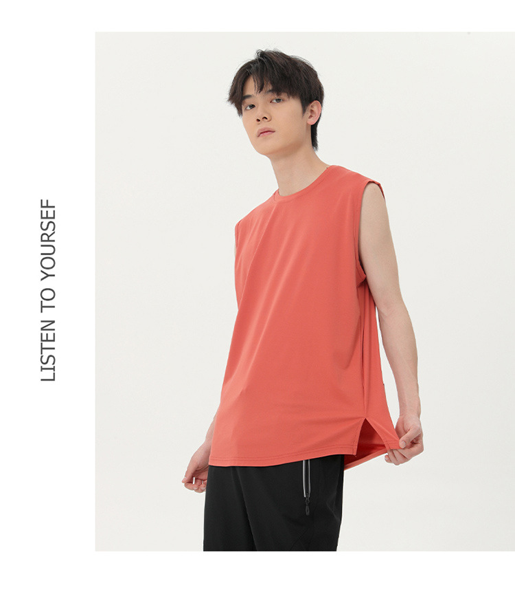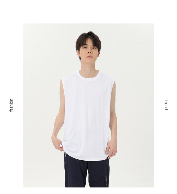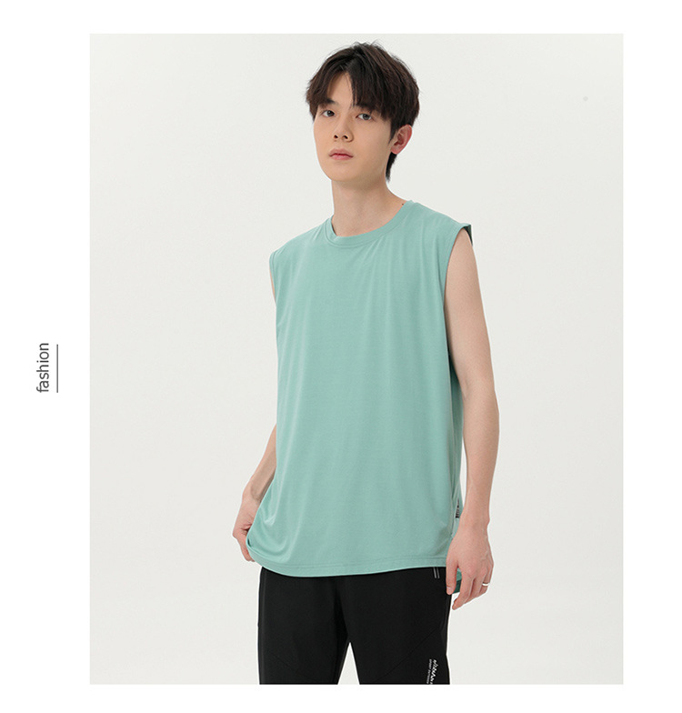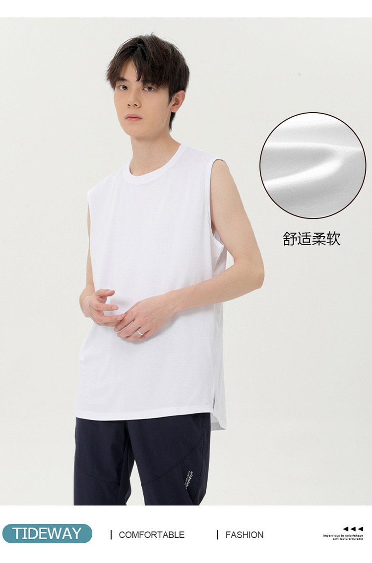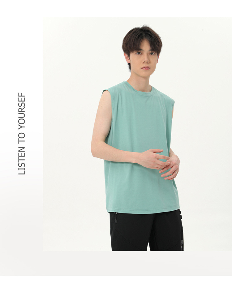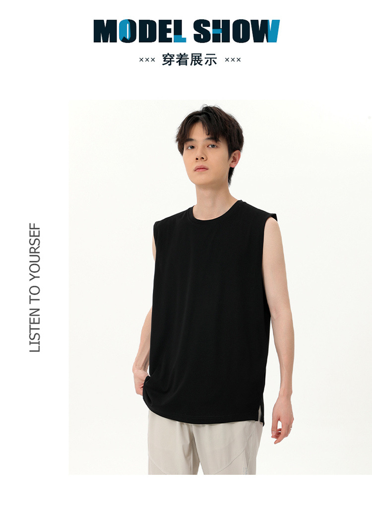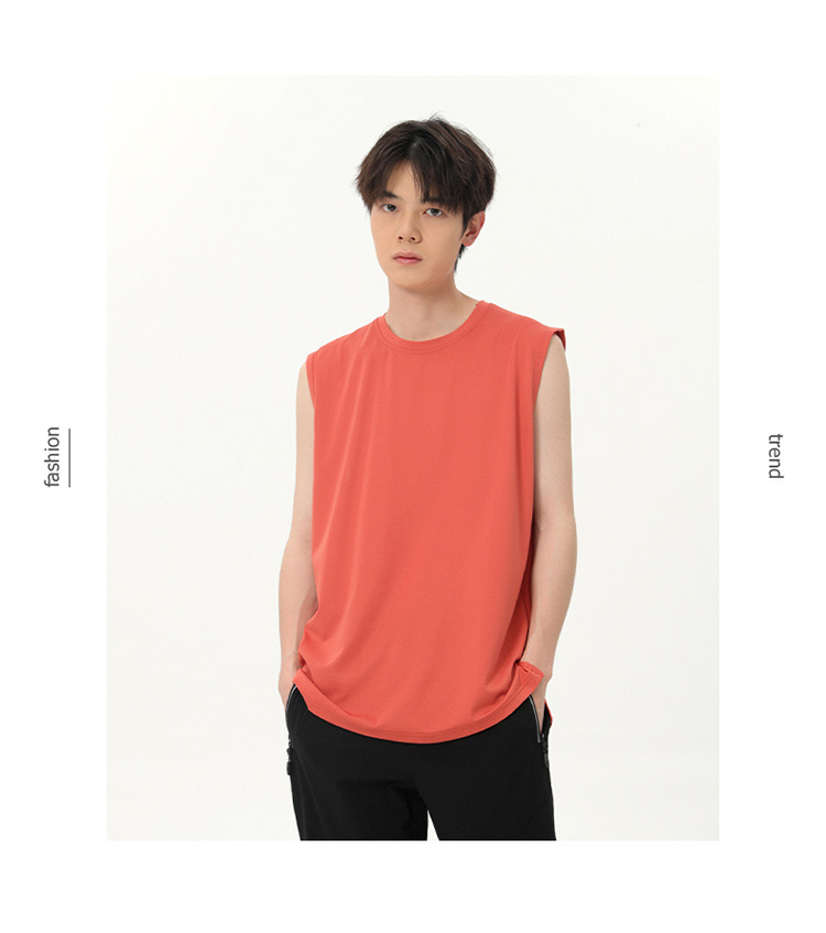 【冰氧棉】【DSK】大依优型大码纯色背心休闲运动宽松短袖T恤无袖背心加大码宽松上衣男士