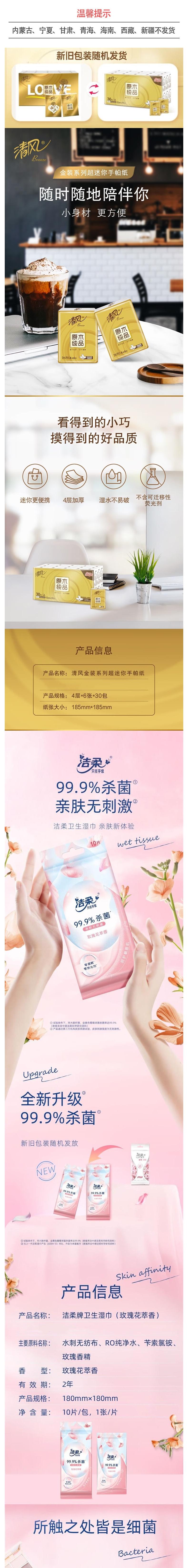 清风 金装手帕纸6片30包+赠洁柔随机湿巾10片新老随机 B228022