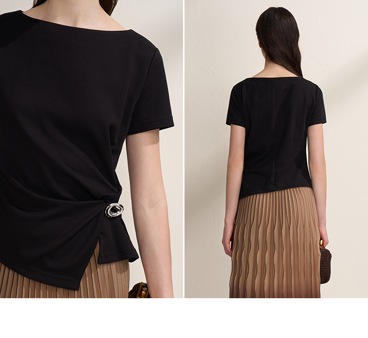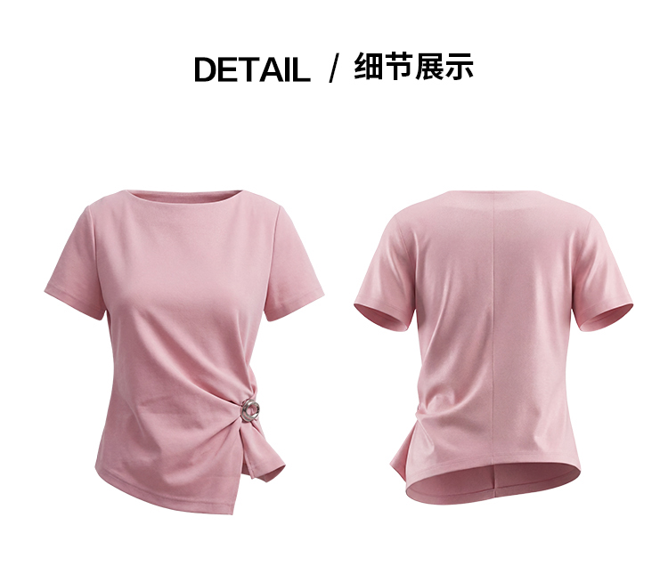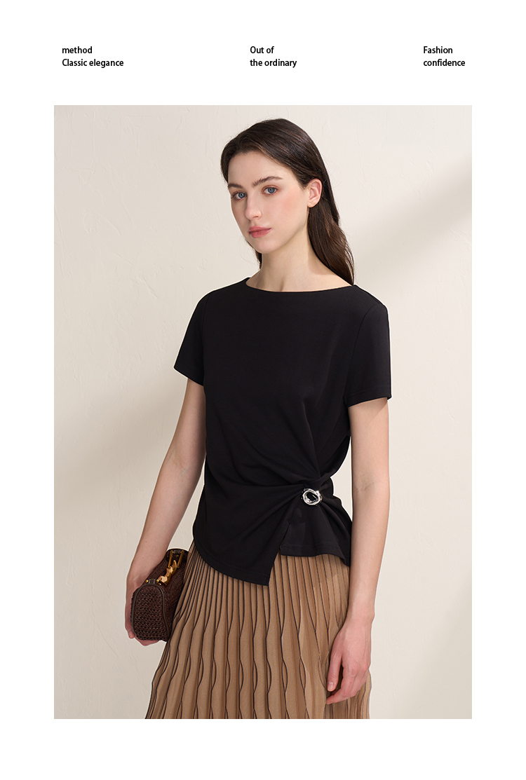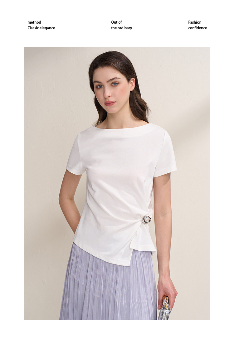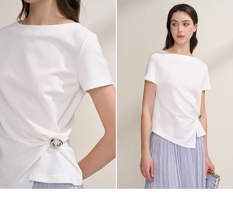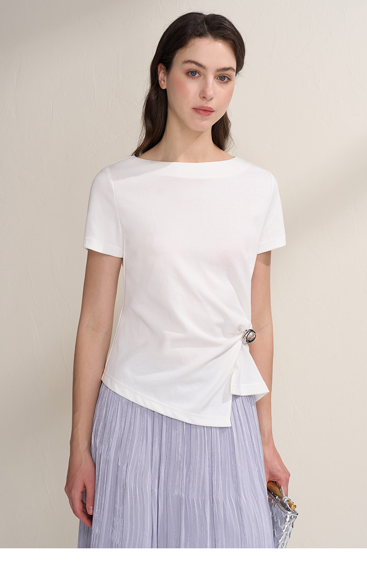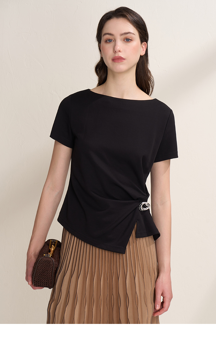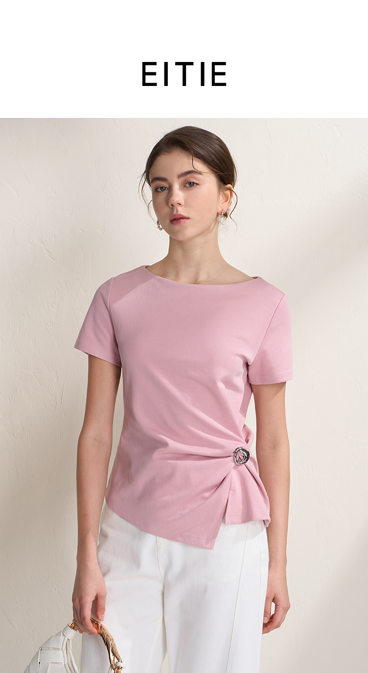 EITIE爱特爱不对称褶皱收腰正肩显瘦时尚短袖T恤上衣2026夏新款B2602202