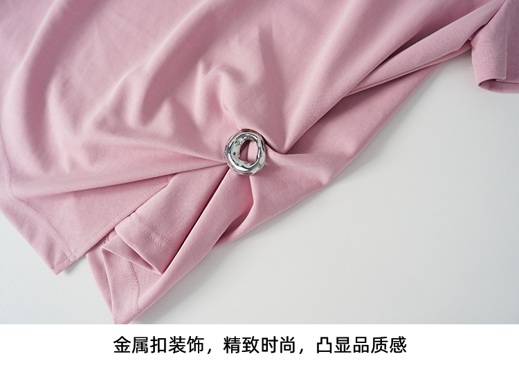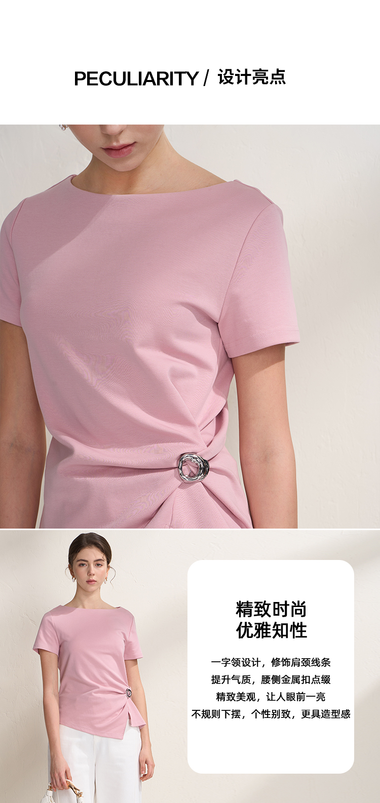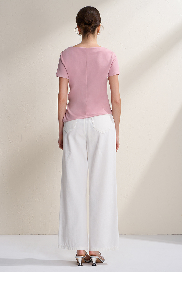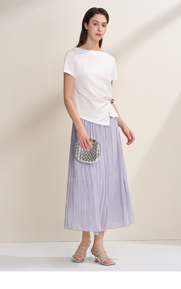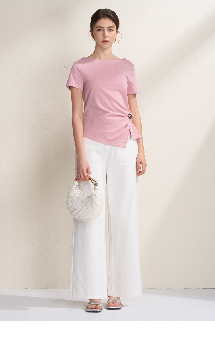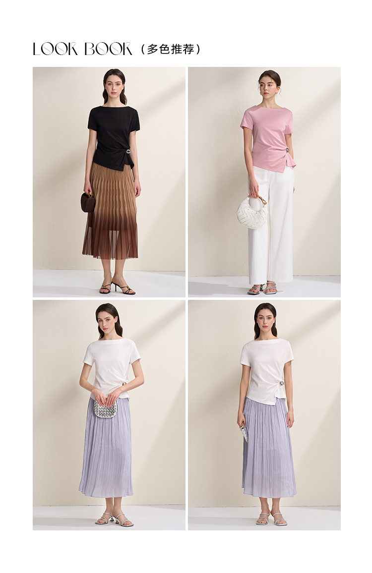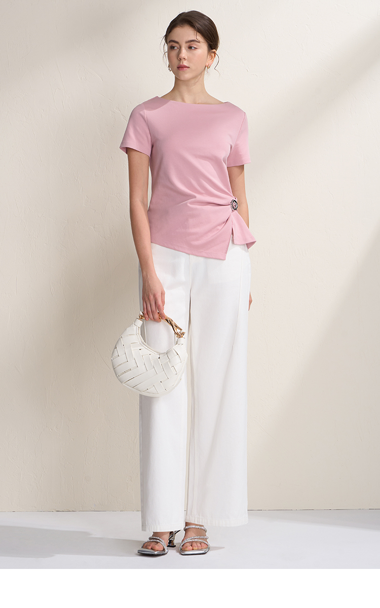 EITIE爱特爱不对称褶皱收腰正肩显瘦时尚短袖T恤上衣2026夏新款B2602202