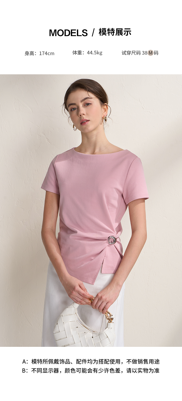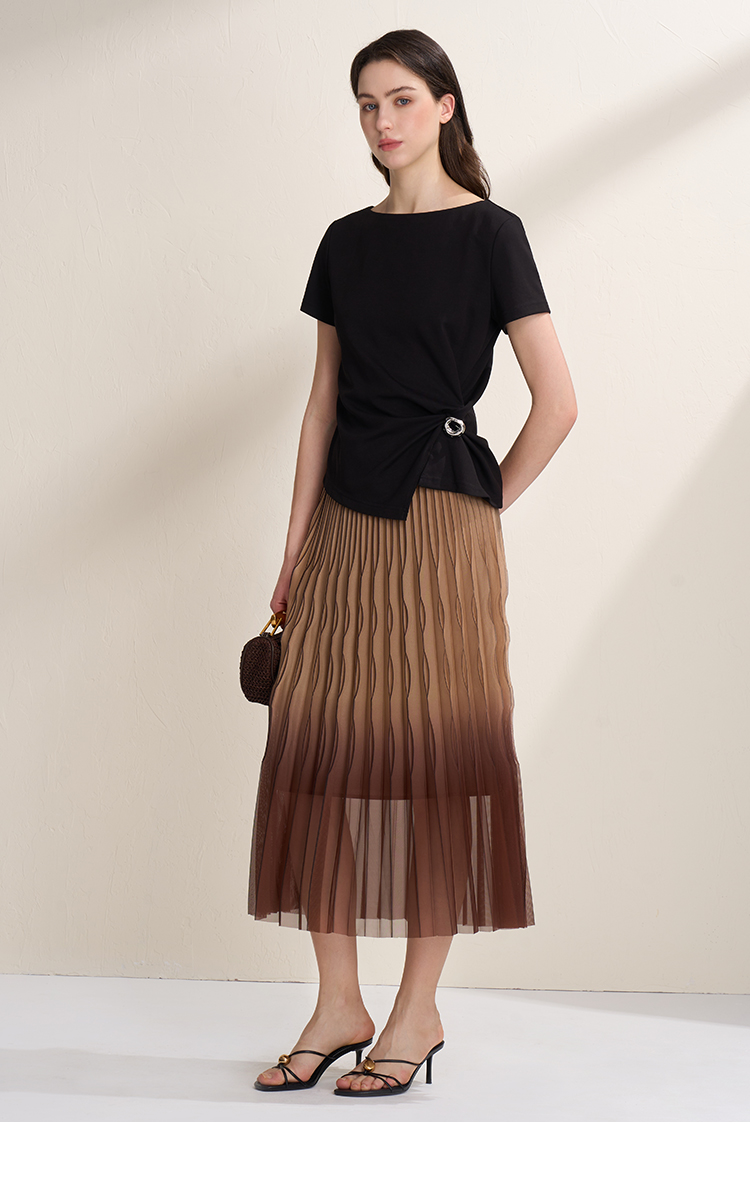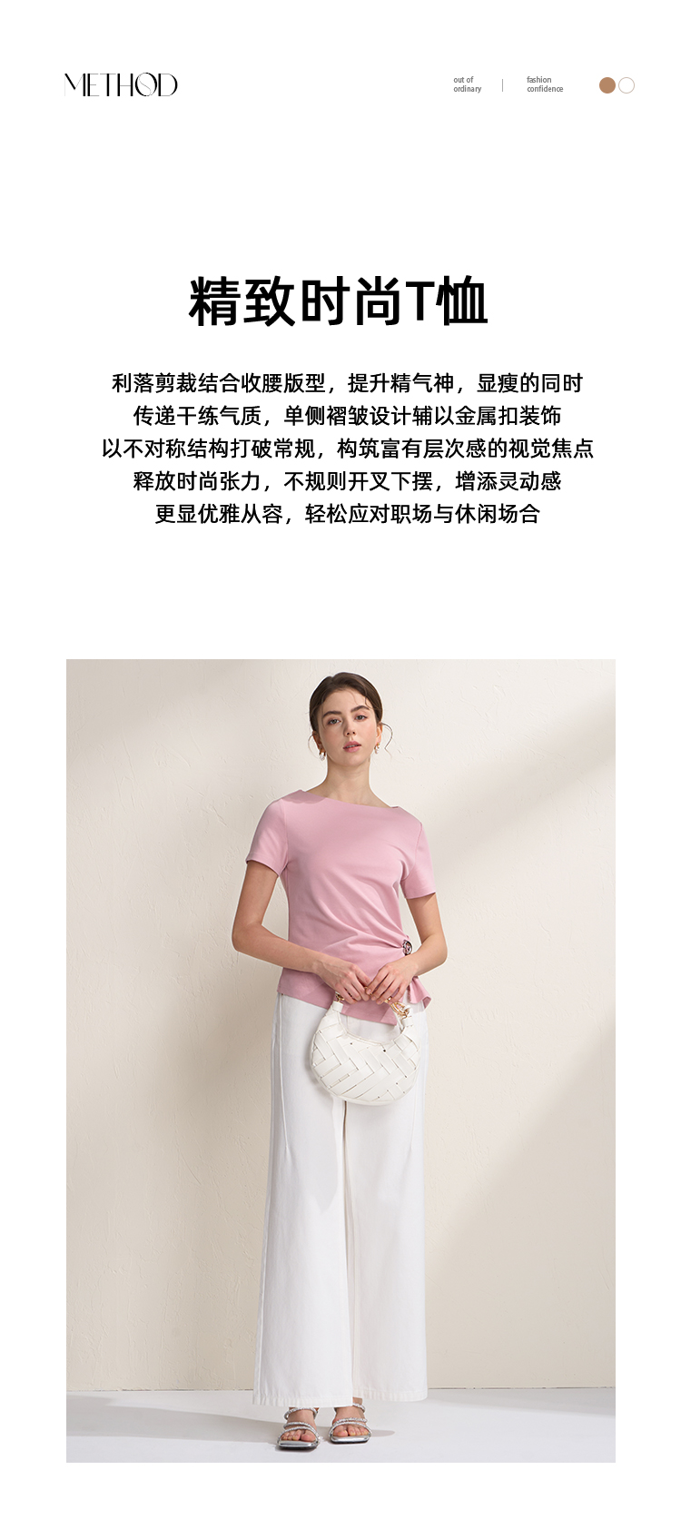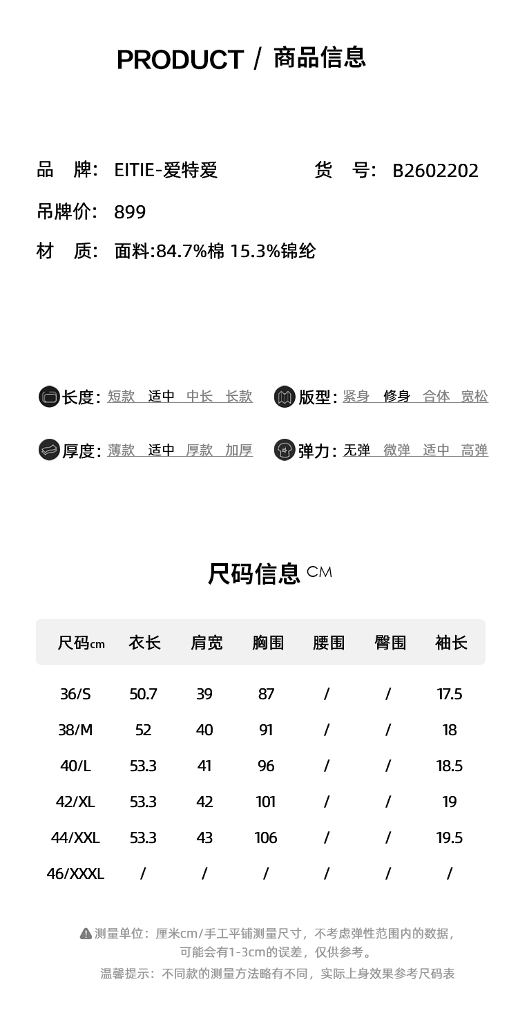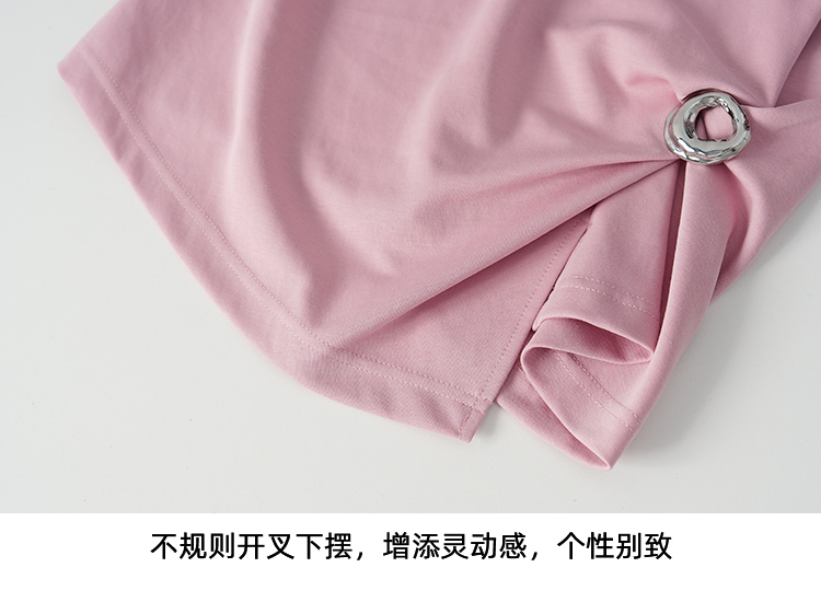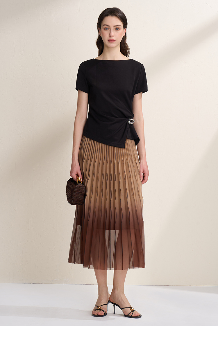 EITIE爱特爱不对称褶皱收腰正肩显瘦时尚短袖T恤上衣2026夏新款B2602202