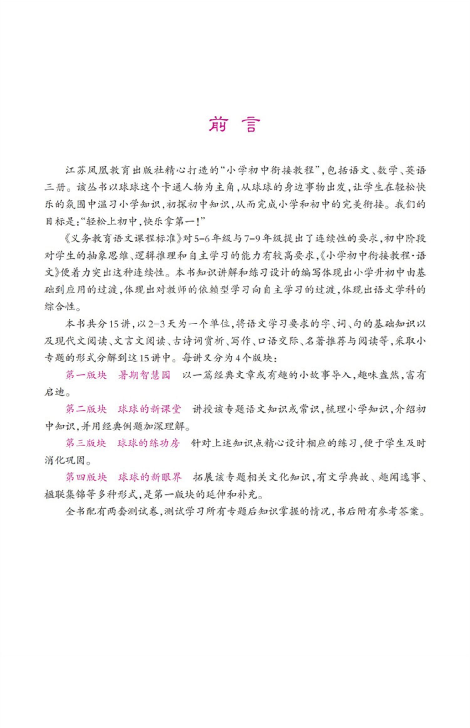 2025年 小学初中衔接教程 语文 基础知识 阅读写作 含参考答案 江苏凤凰教育出版社