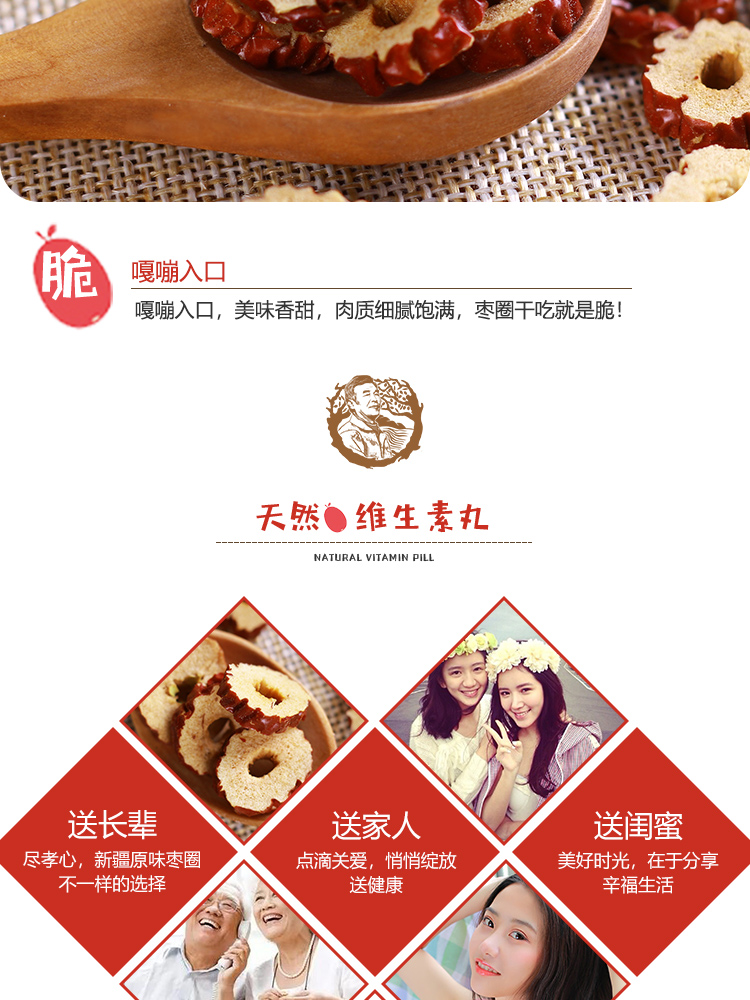 塔玛庄园枣片新疆枣圈360g免洗无核煮粥泡水香酥干吃零食泡茶新品