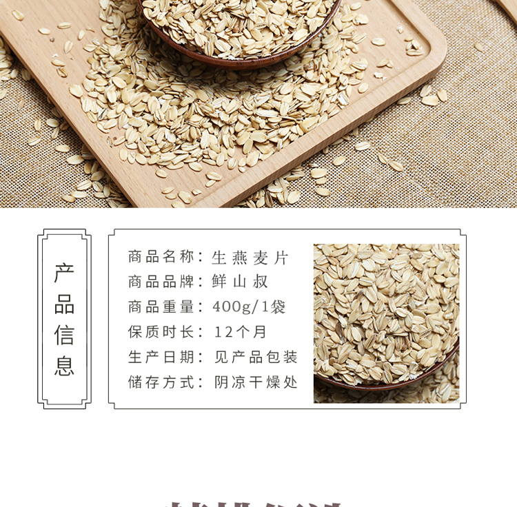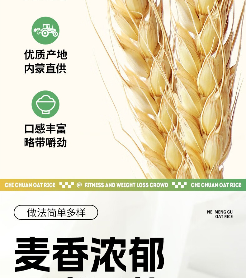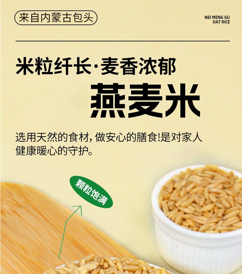 鲜山叔 内蒙古燕麦米高蛋白膳食纤维营养粗粮米原味生燕麦片 真空包装