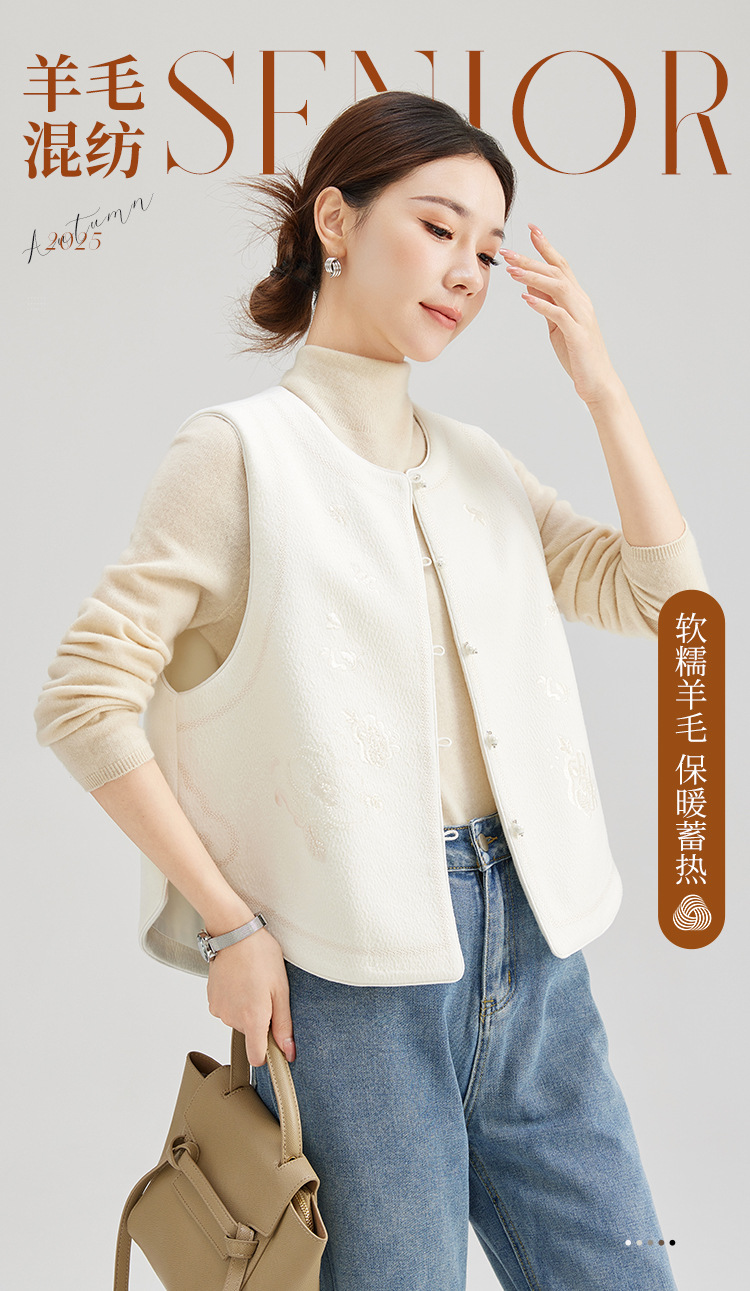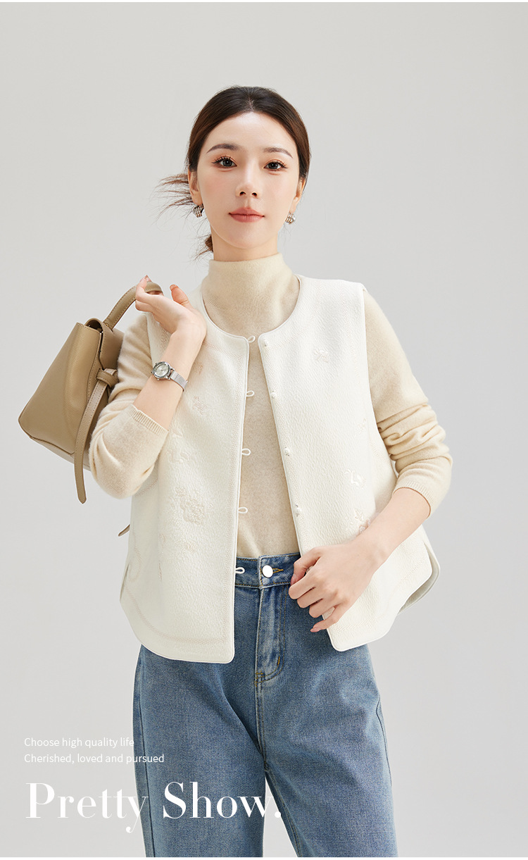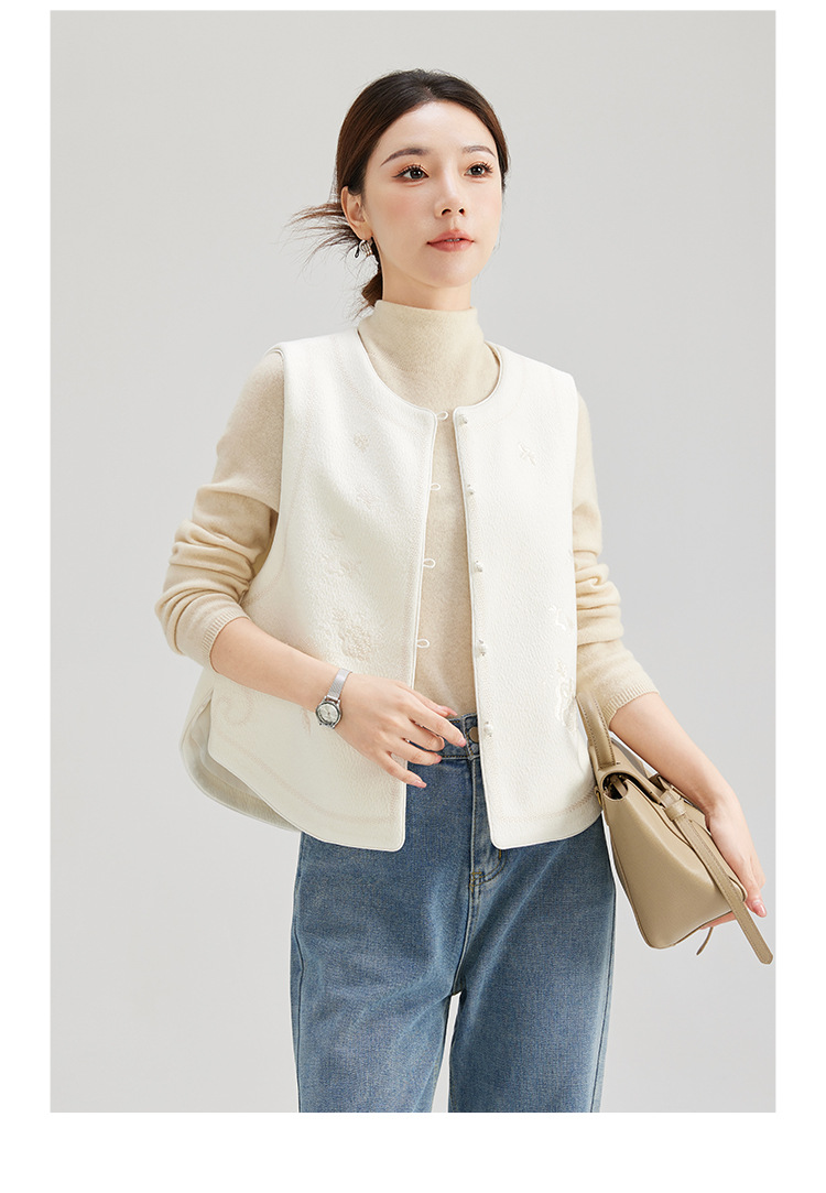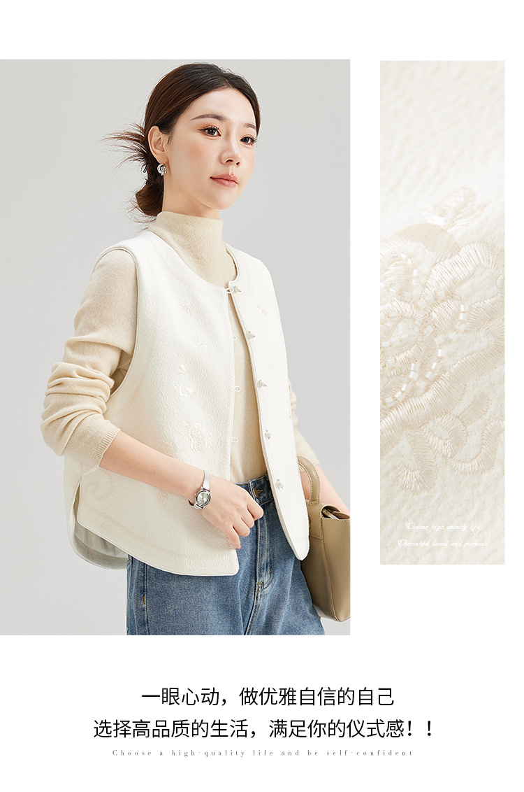 SM 1319坎肩马夹无袖外套新中式刺绣马甲宽松减龄洋气 商品图0