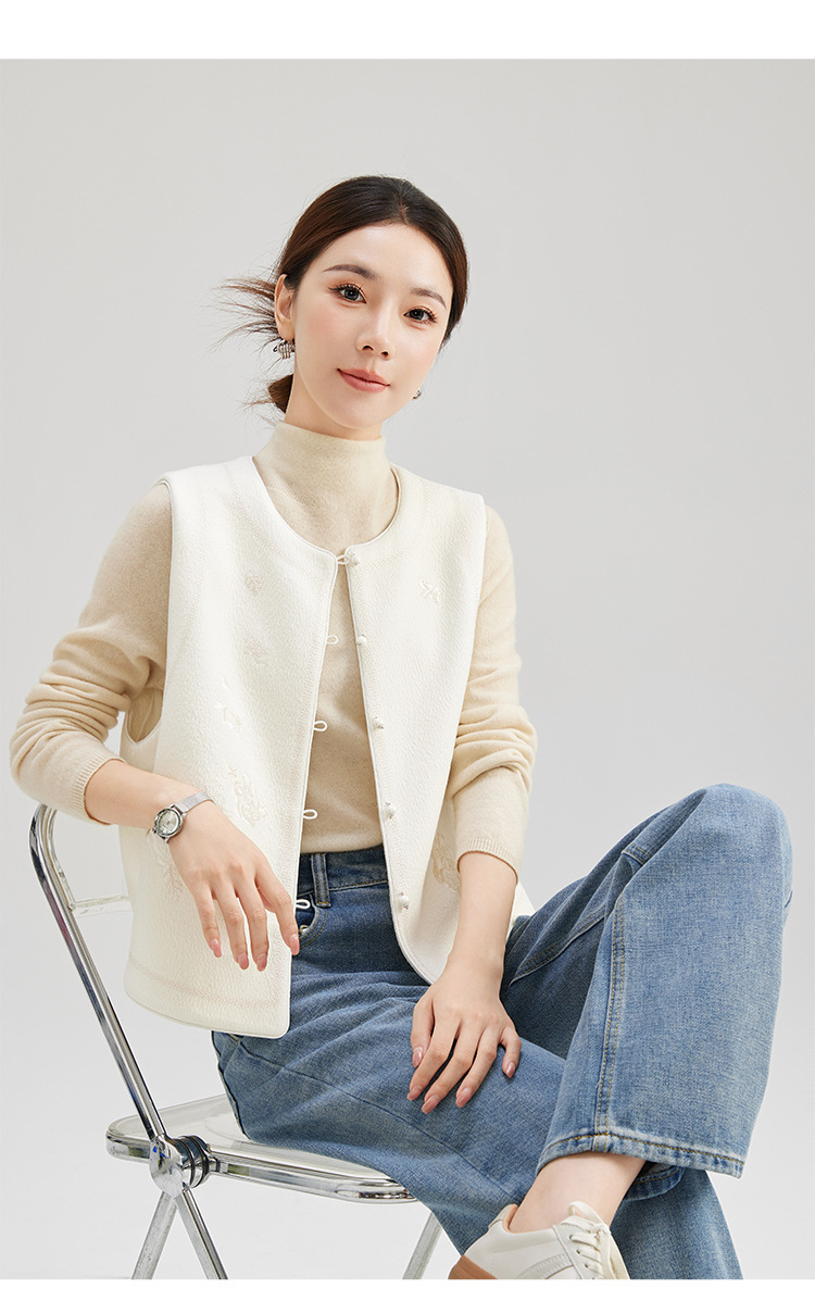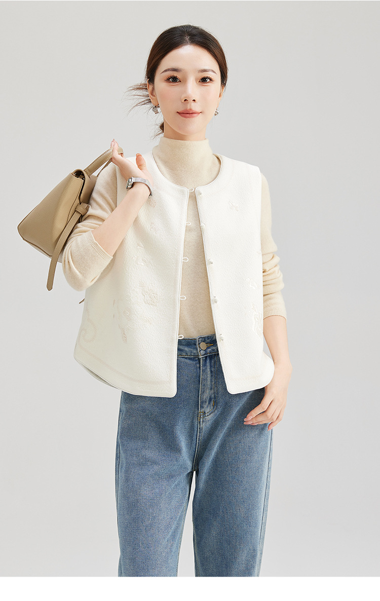 SM 1319坎肩马夹无袖外套新中式刺绣马甲宽松减龄洋气