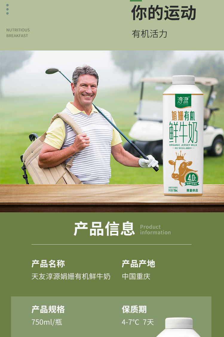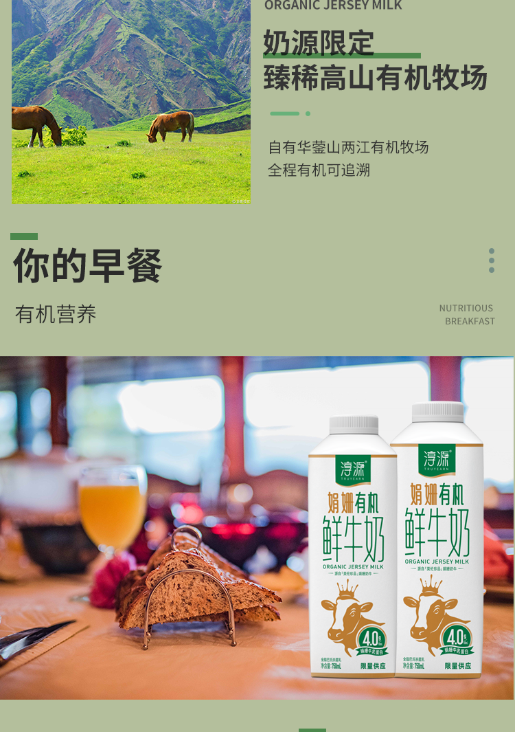 【天友】淳源娟姗有机鲜牛奶750ml*2 48小时内配送