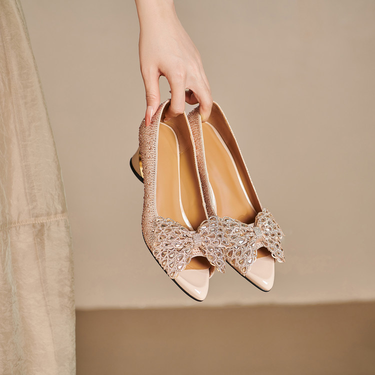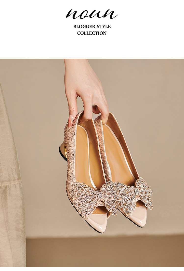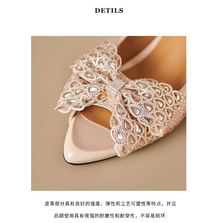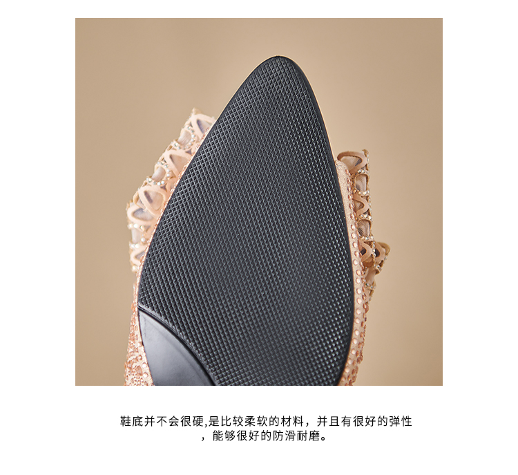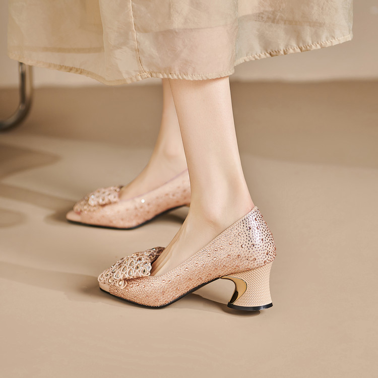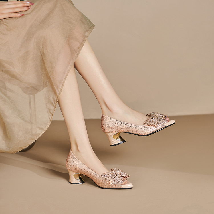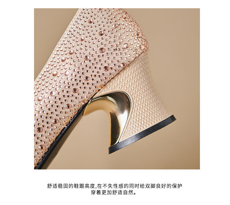 【预售5天】鱼嘴女鞋夏季新款镂空时尚水钻单鞋香槟色性感粗跟高跟鞋SY&2351