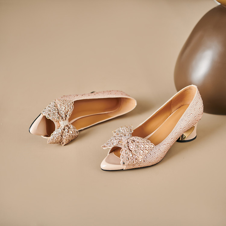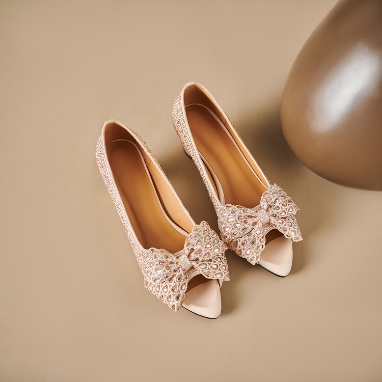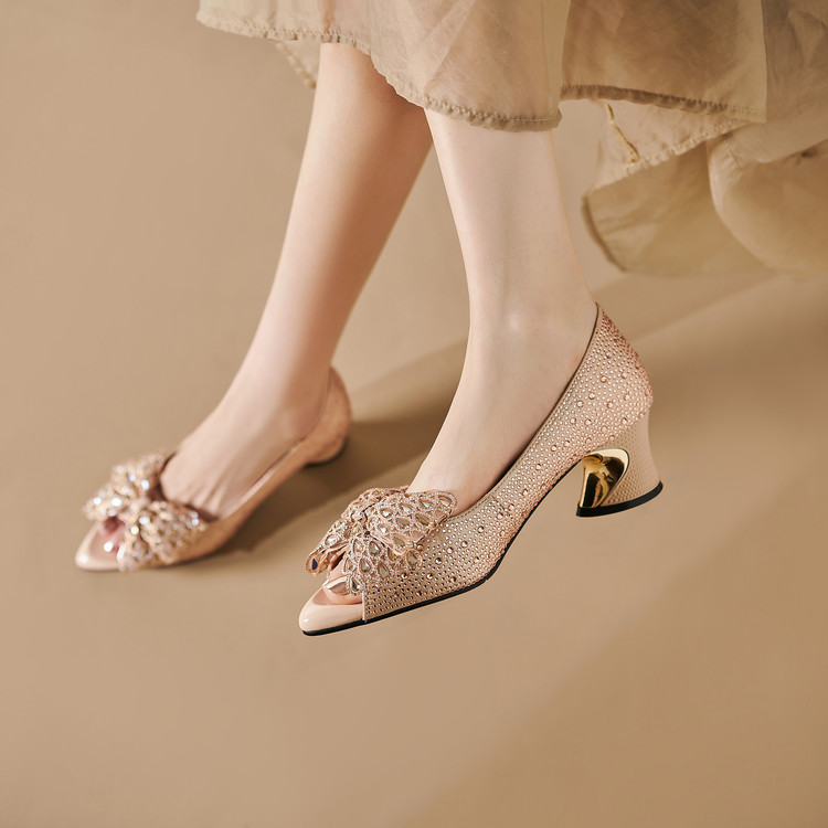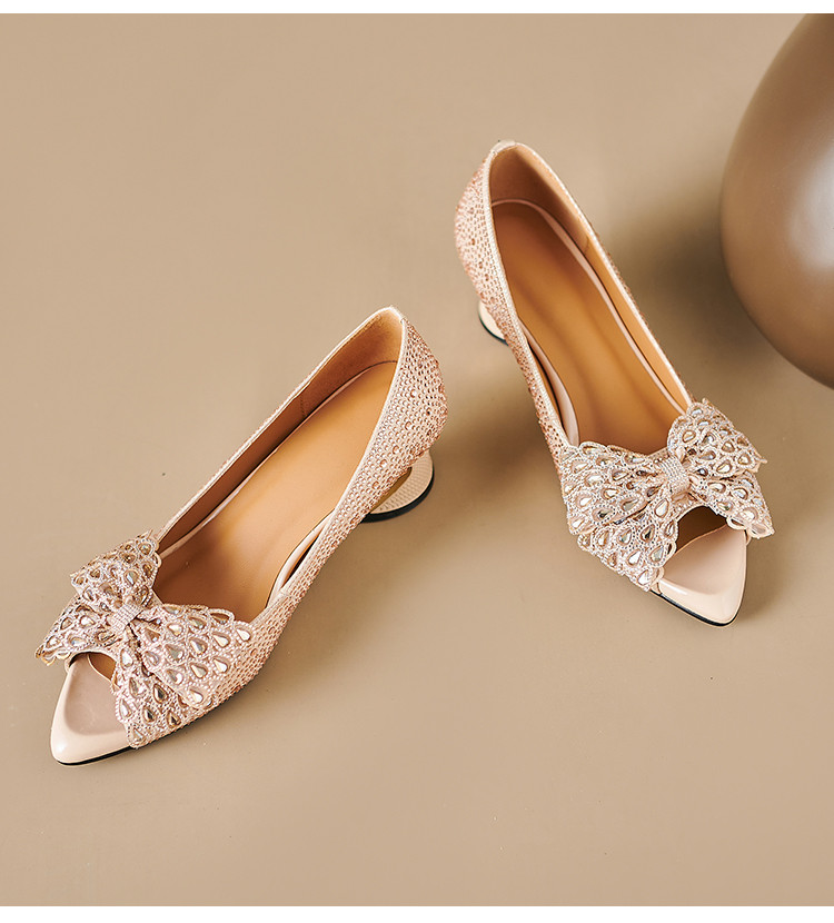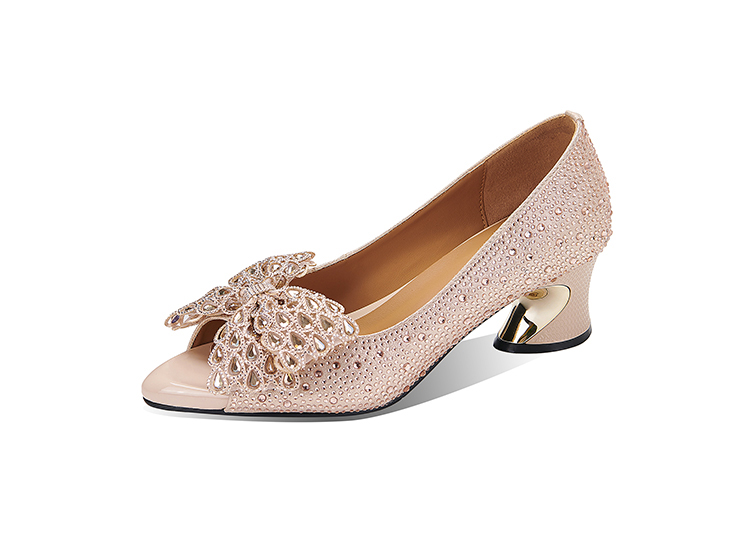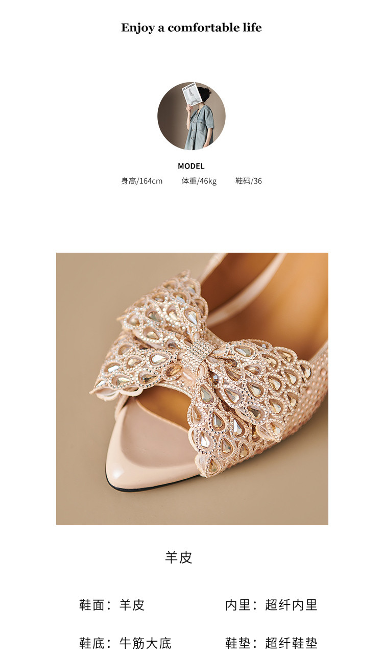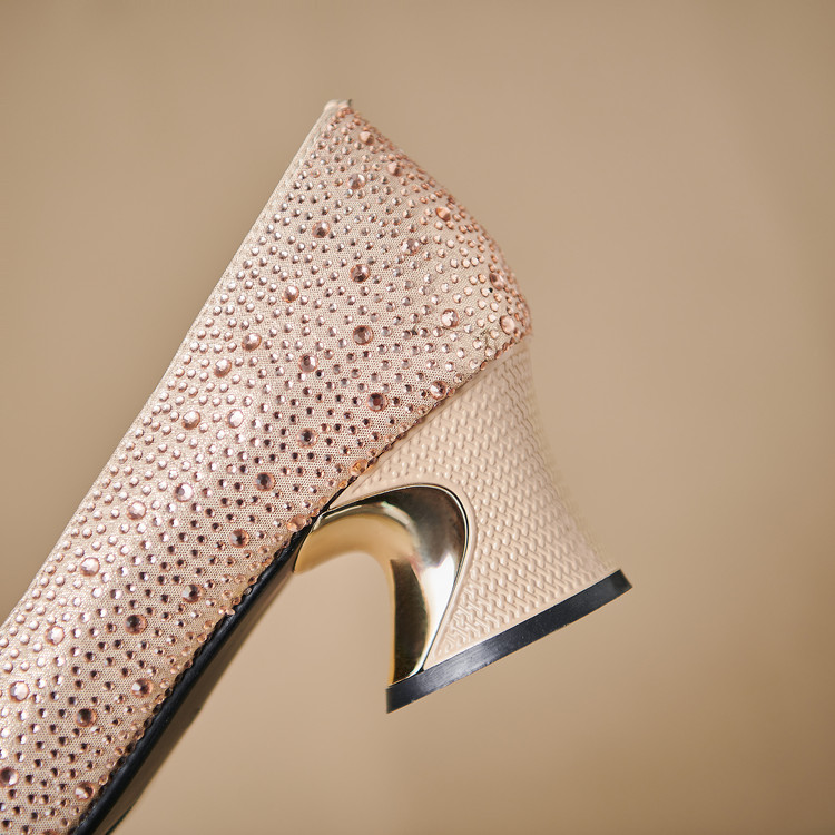 【预售5天】鱼嘴女鞋夏季新款镂空时尚水钻单鞋香槟色性感粗跟高跟鞋SY&2351