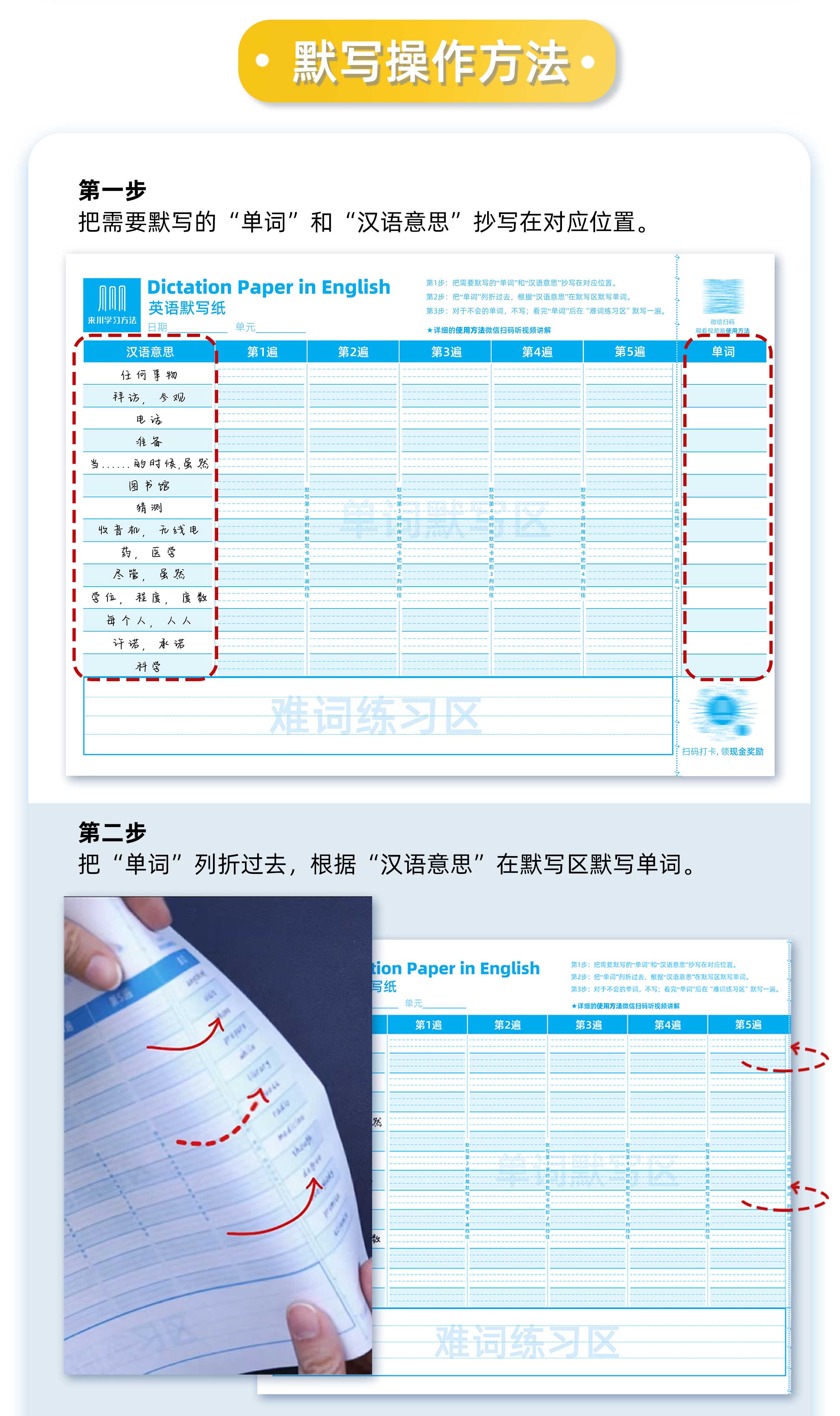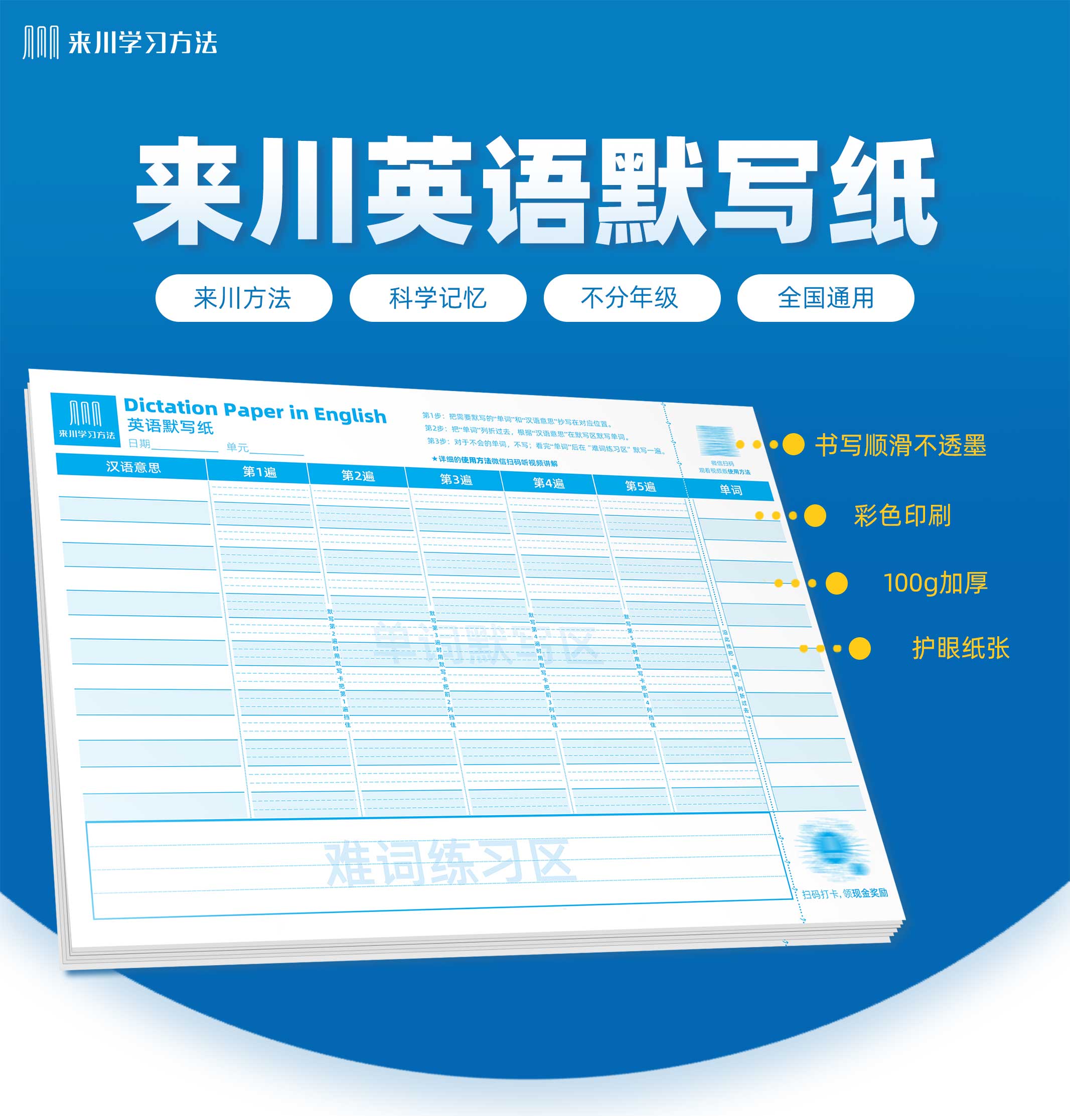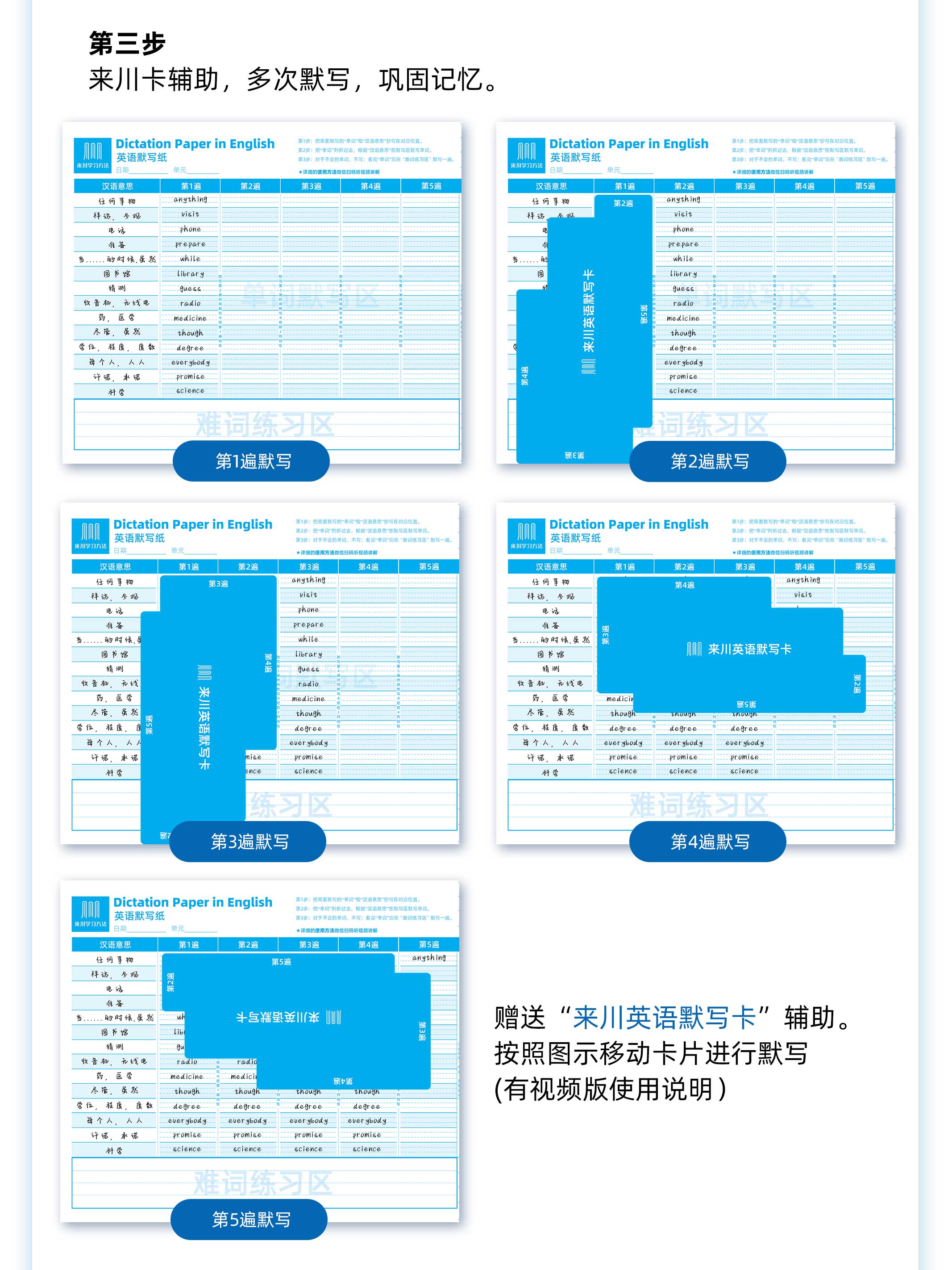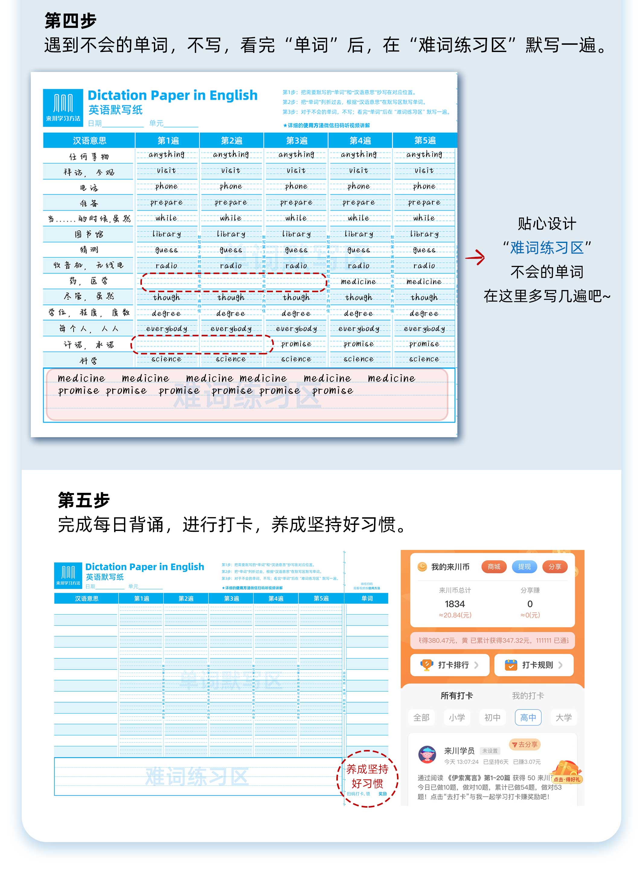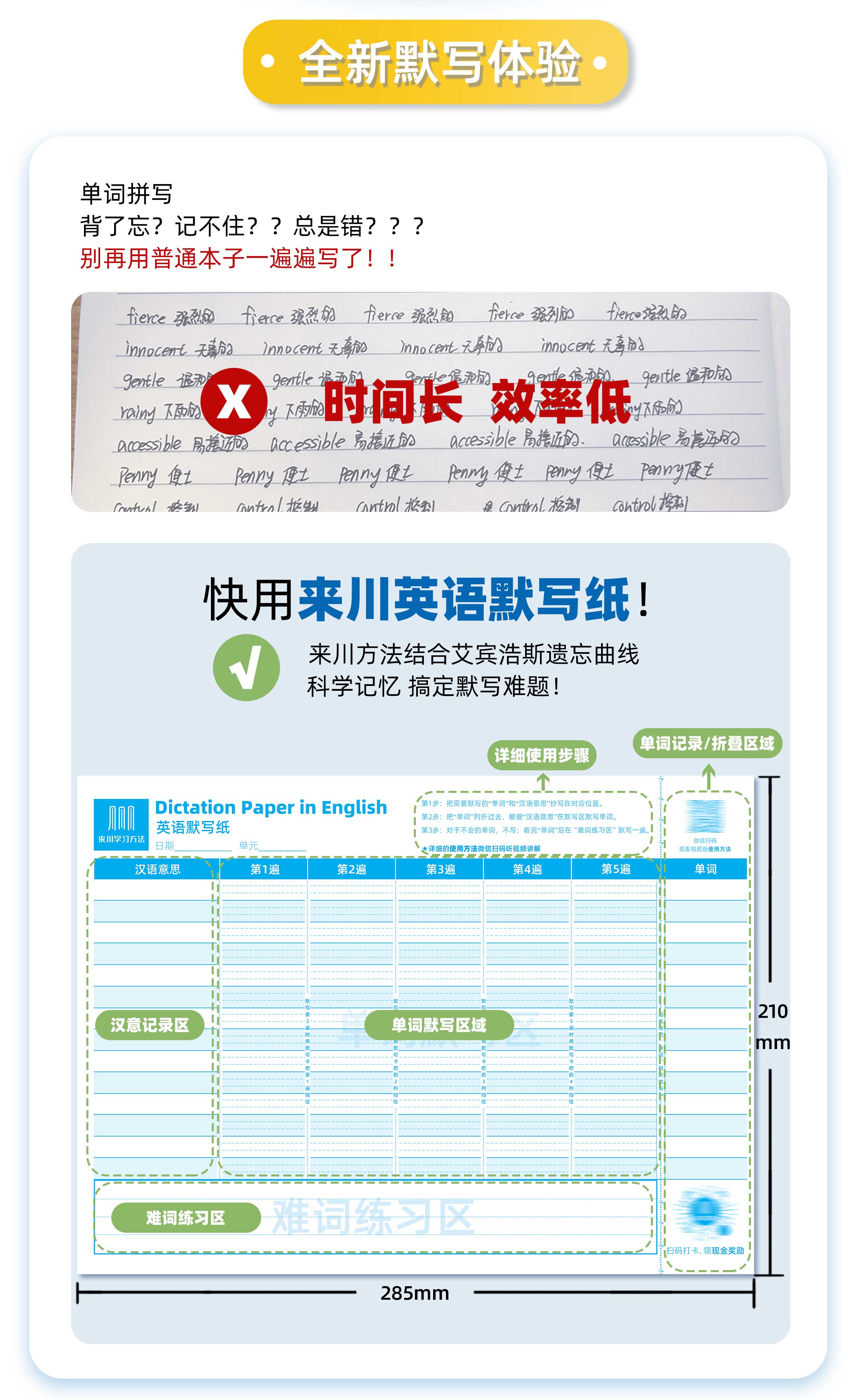 来川英语默写纸 单词记忆本 小学初中高中 艾宾浩斯记忆 听写默写神器 每日背诵 英语练习