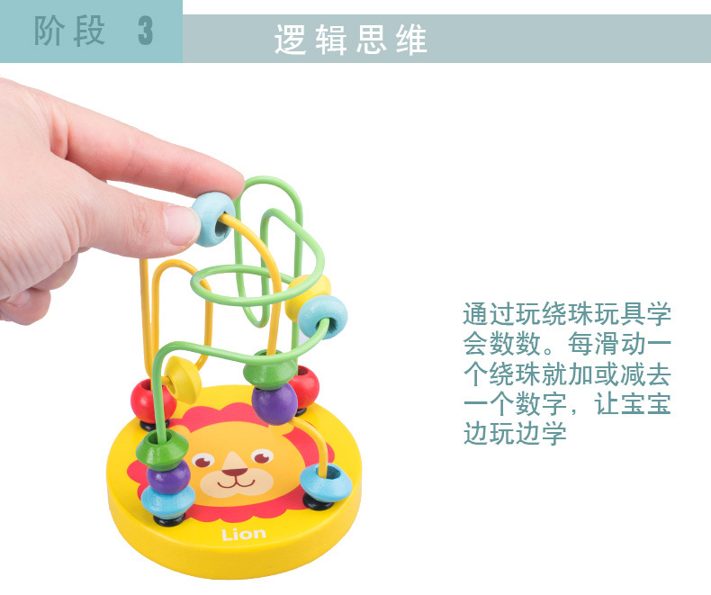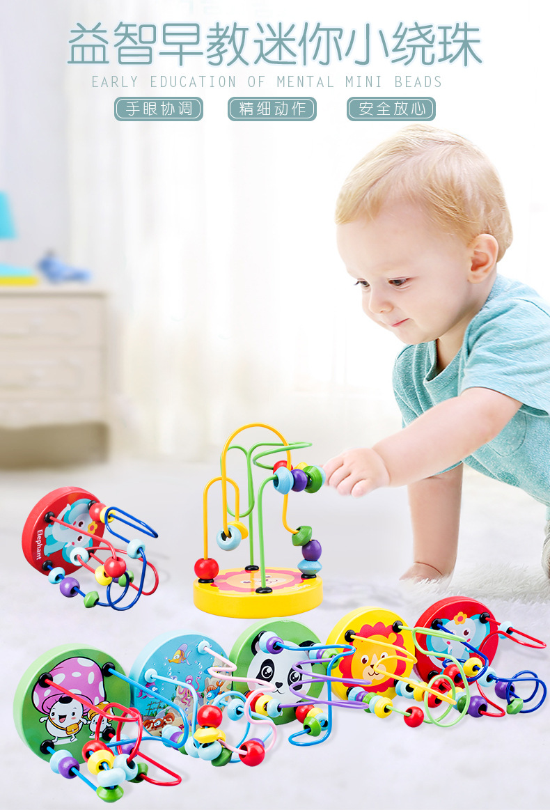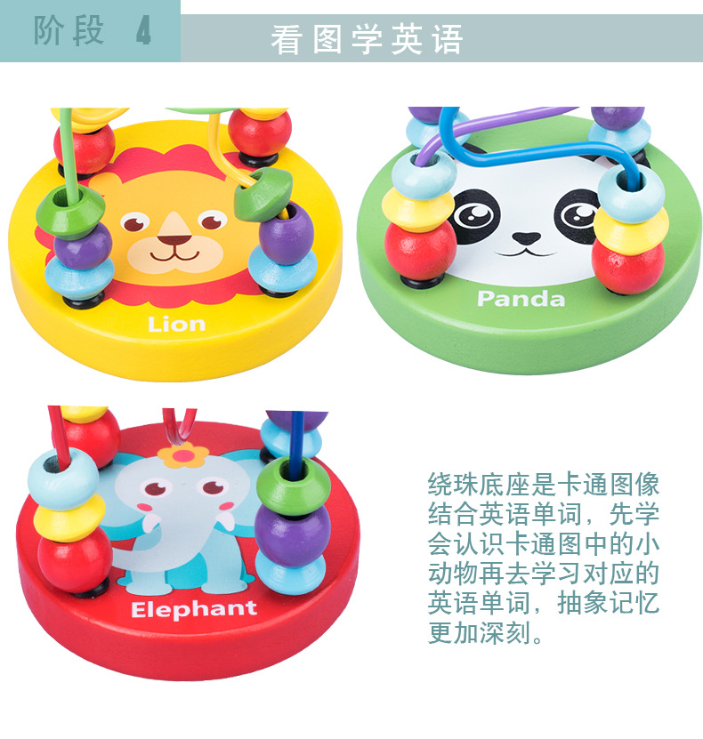 【手眼协调,精细动作,安全放心!】迷你卡通动物小绕珠 婴幼儿早教 木制玩具 1-4岁早教 益智儿童玩具-QB