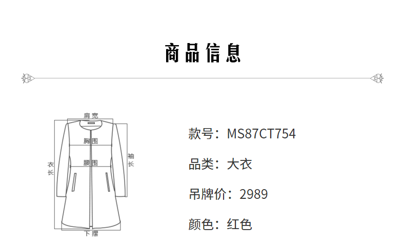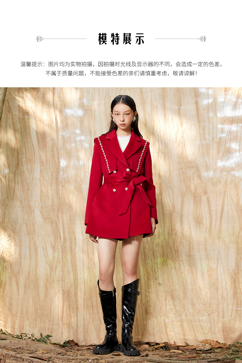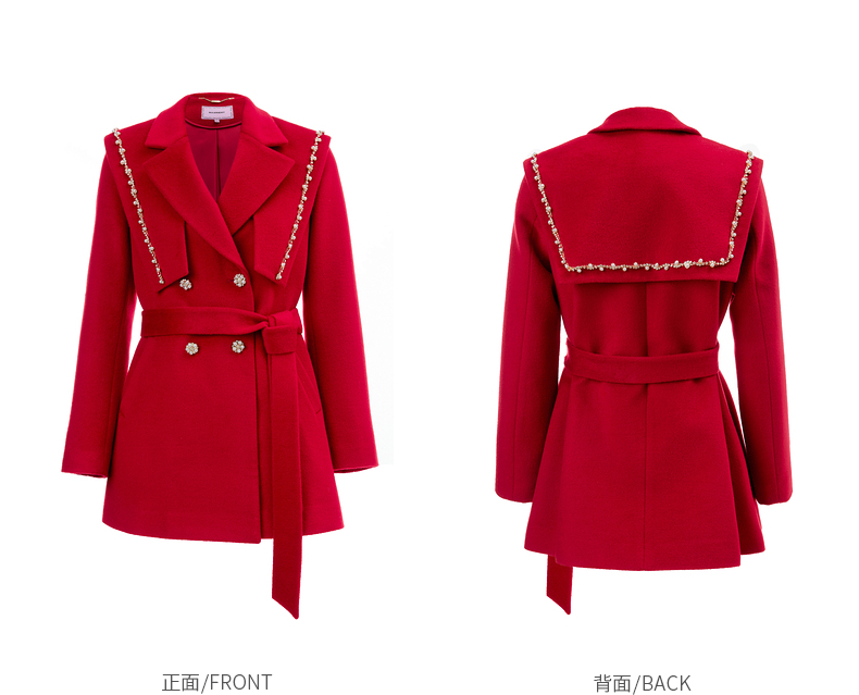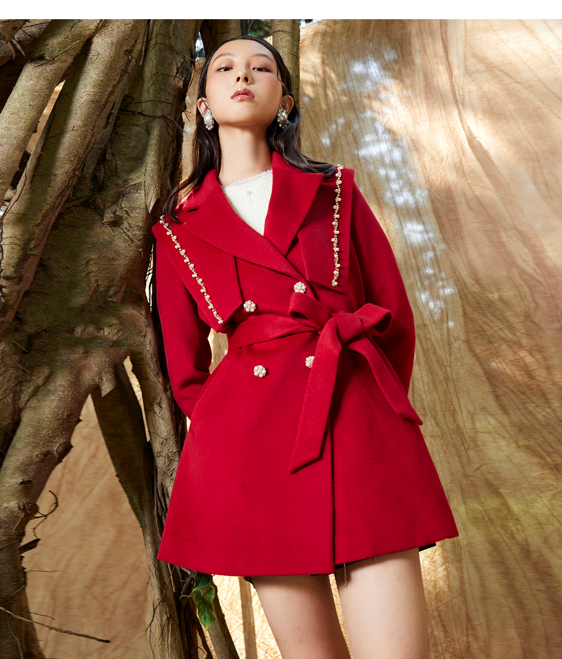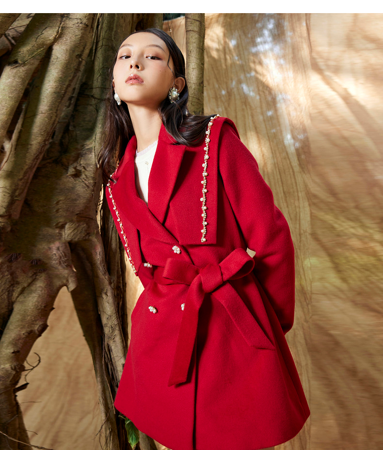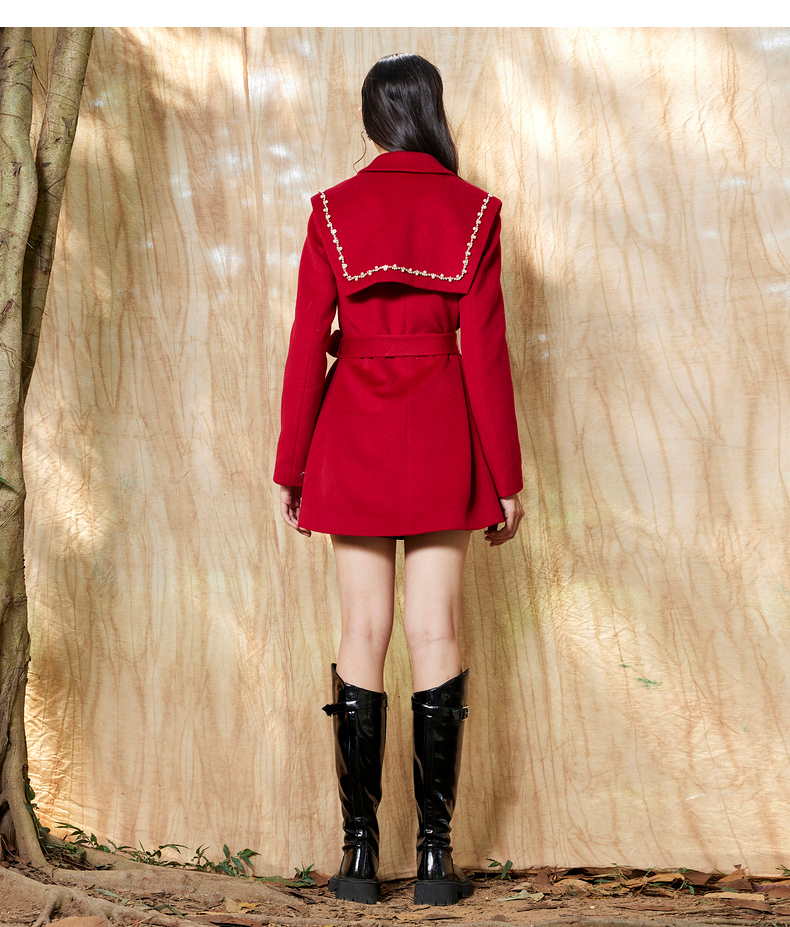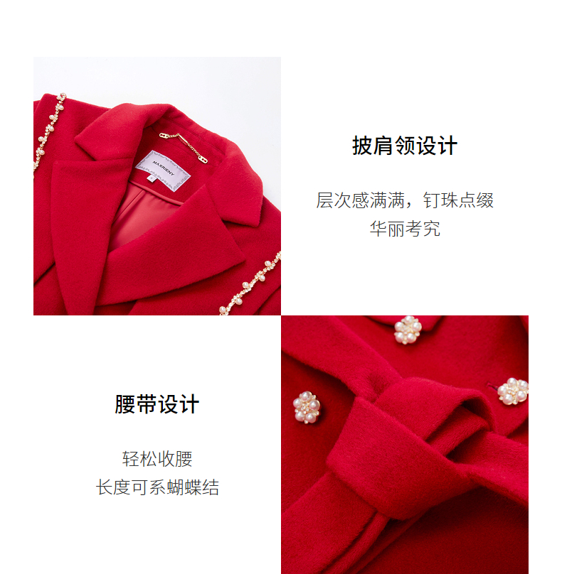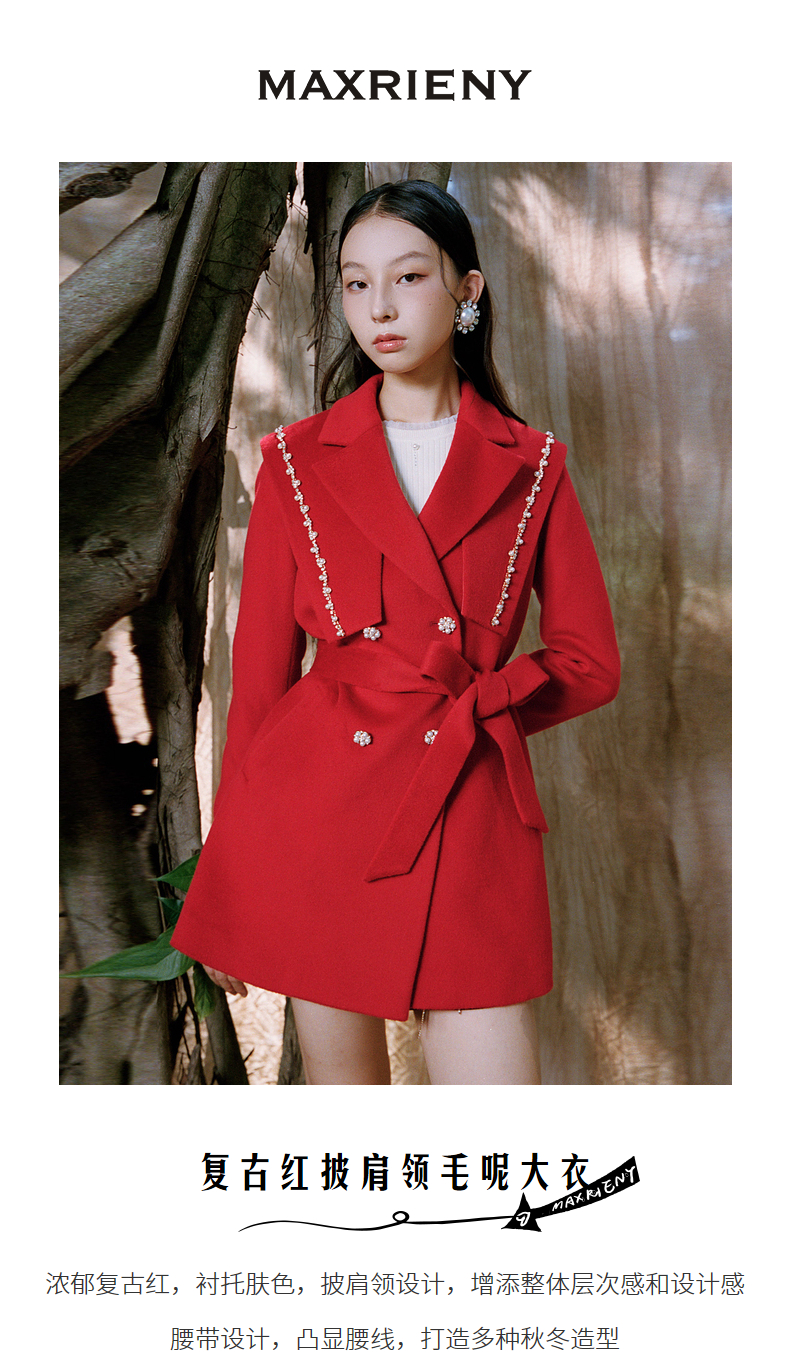 MAXRIENY复古红披肩领毛呢大衣毛呢外套羊毛外衣(货号:MS87CT754)