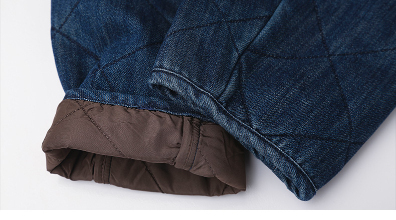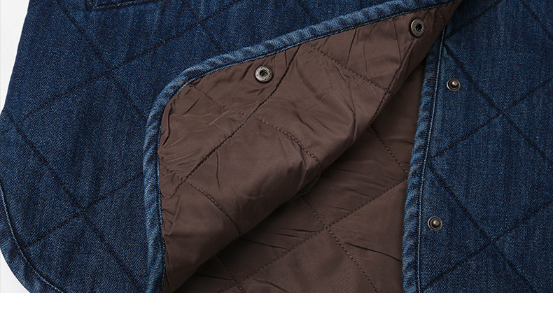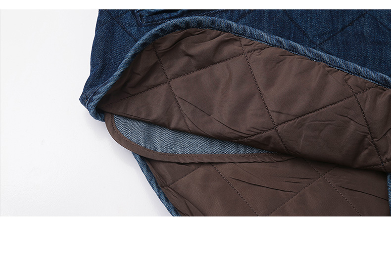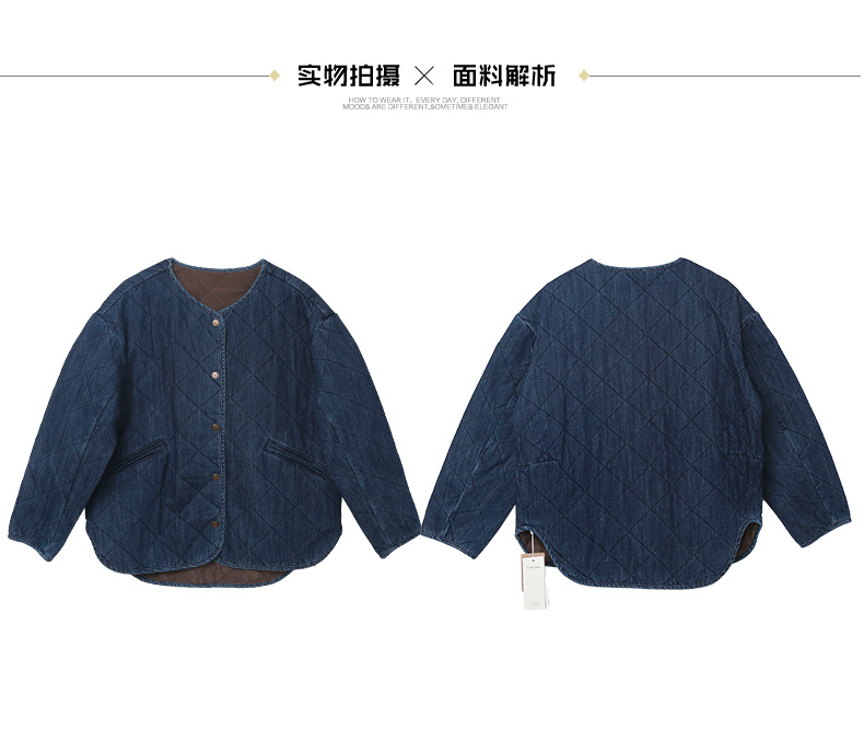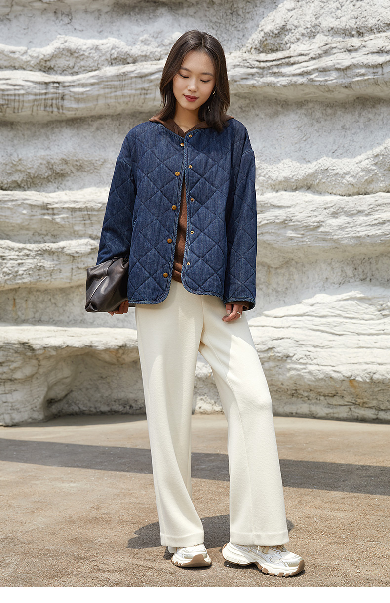 复古做旧水洗牛仔菱格绗缝夹棉外套 无领宽松廓形单排扣落肩袖休闲通勤保暖上衣