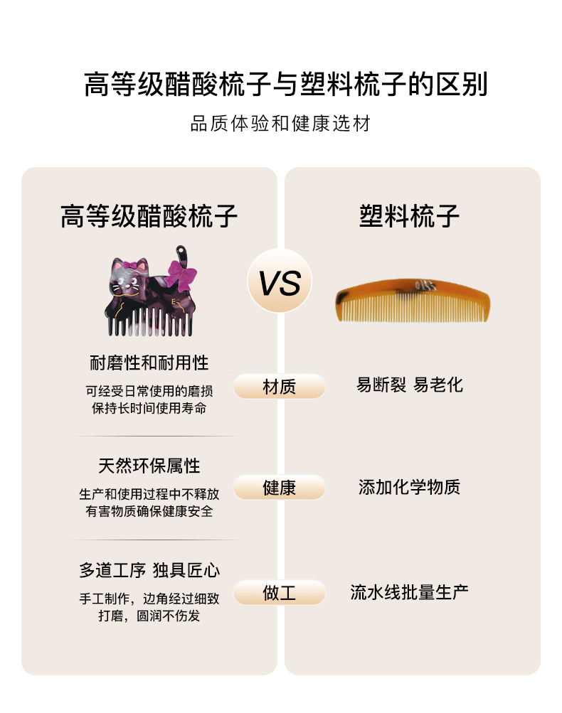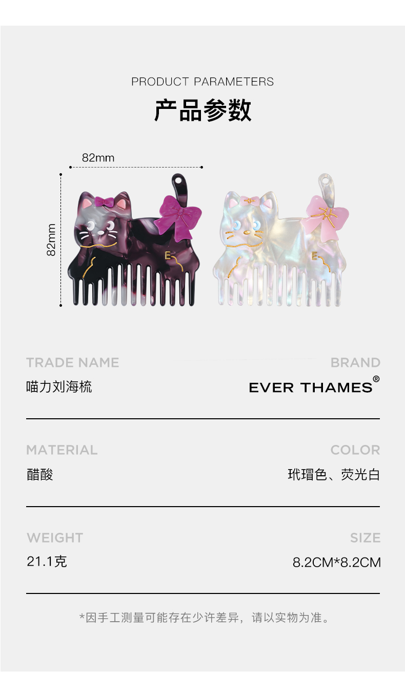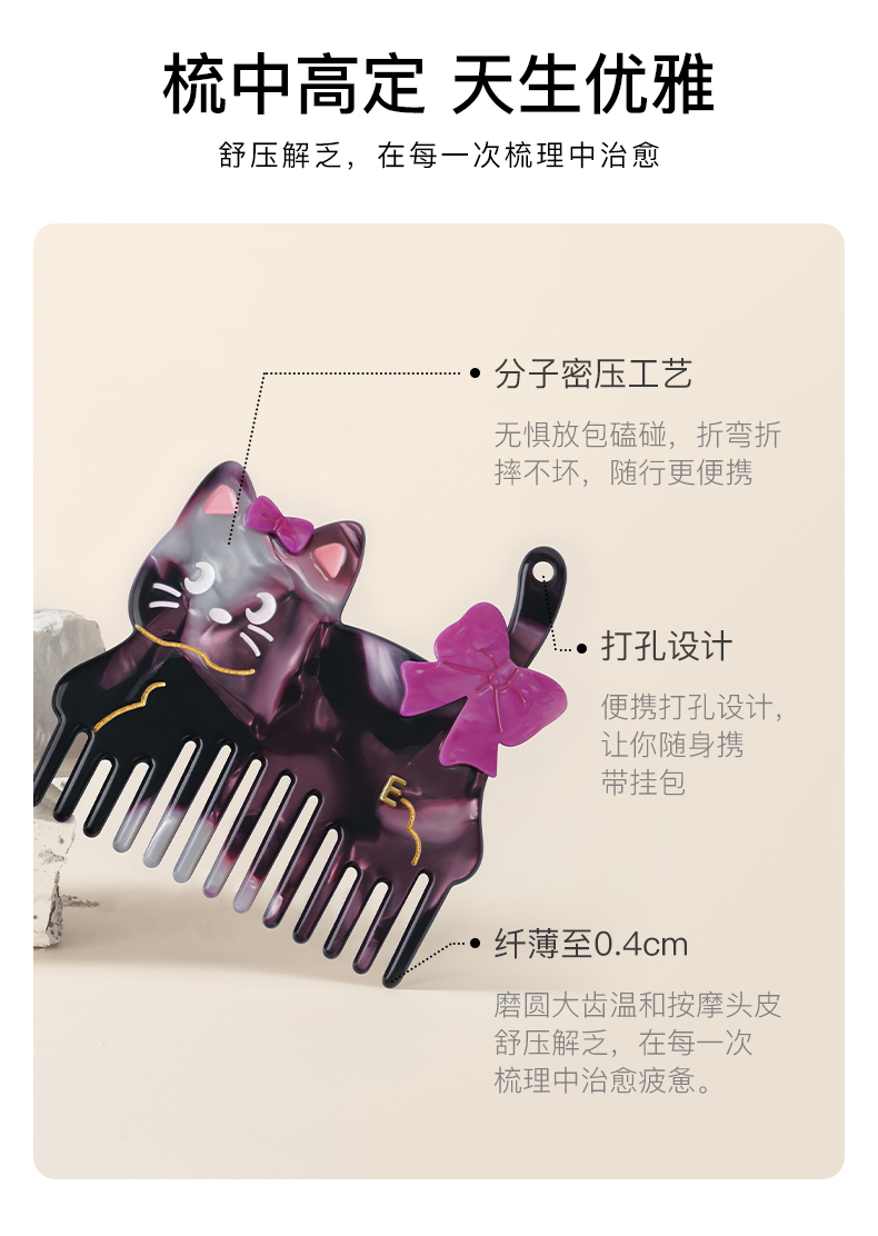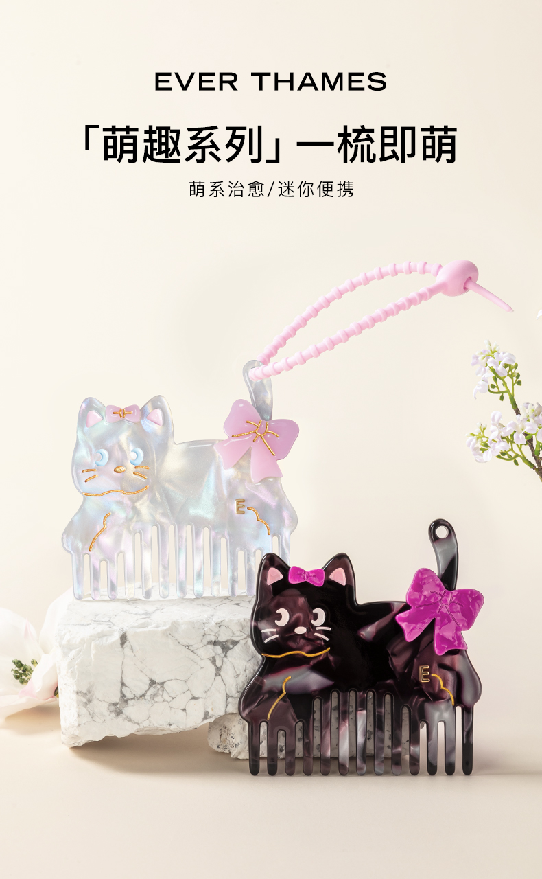 EVER THAMES 2025新款时尚可爱造型加厚醋酸板材小猫梳