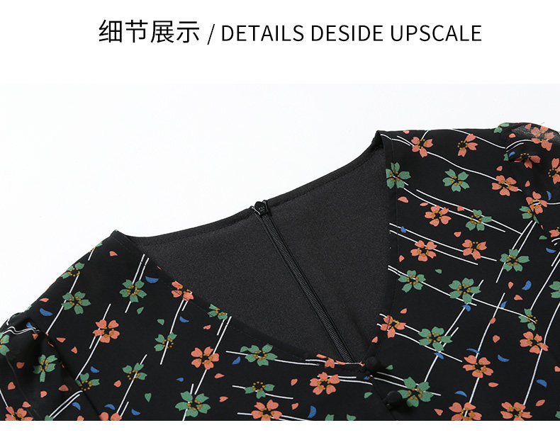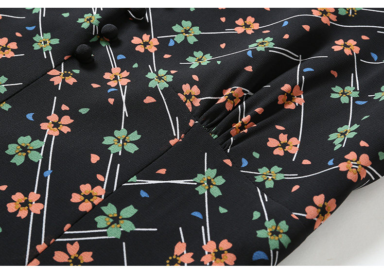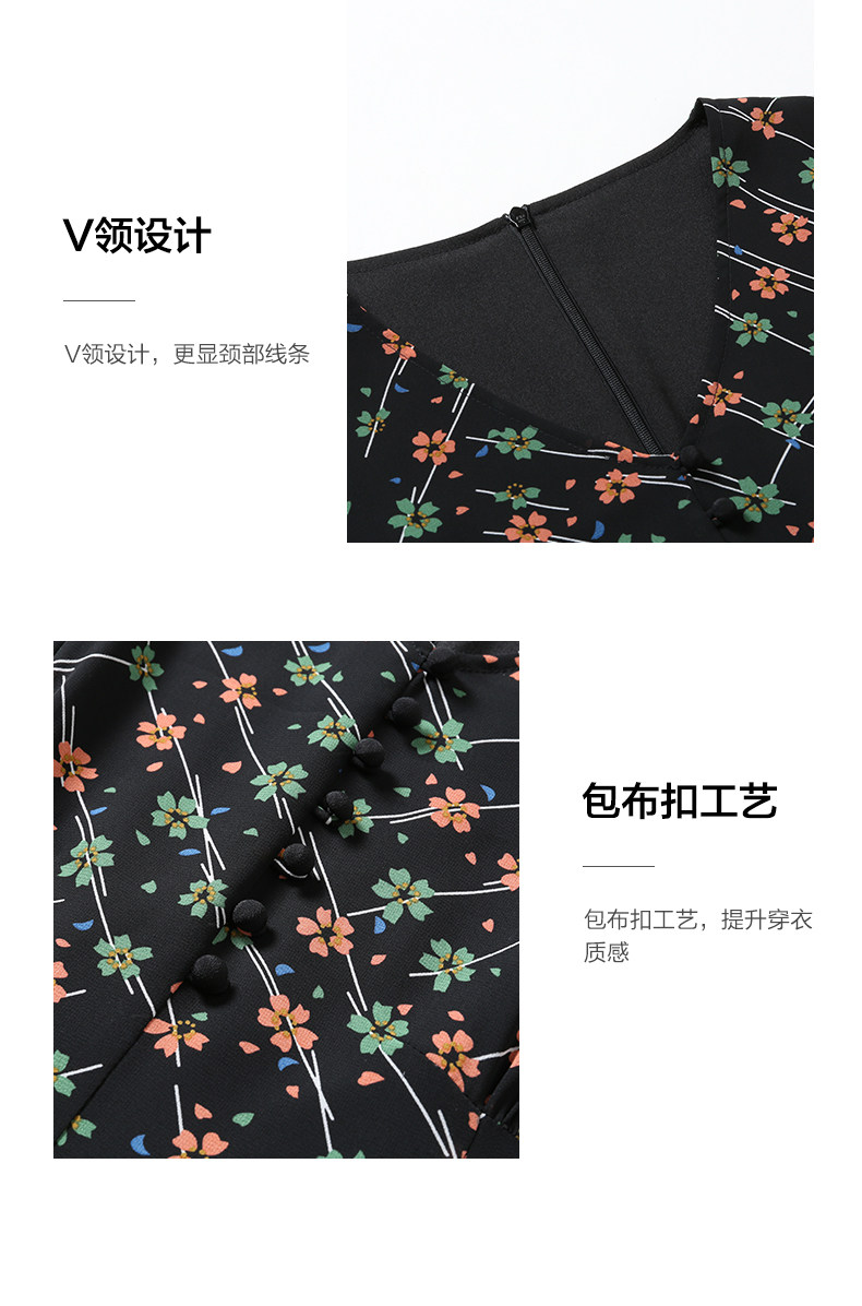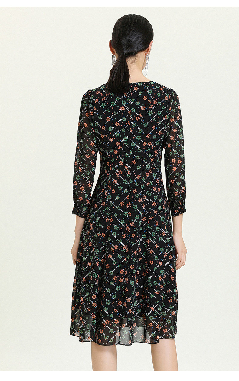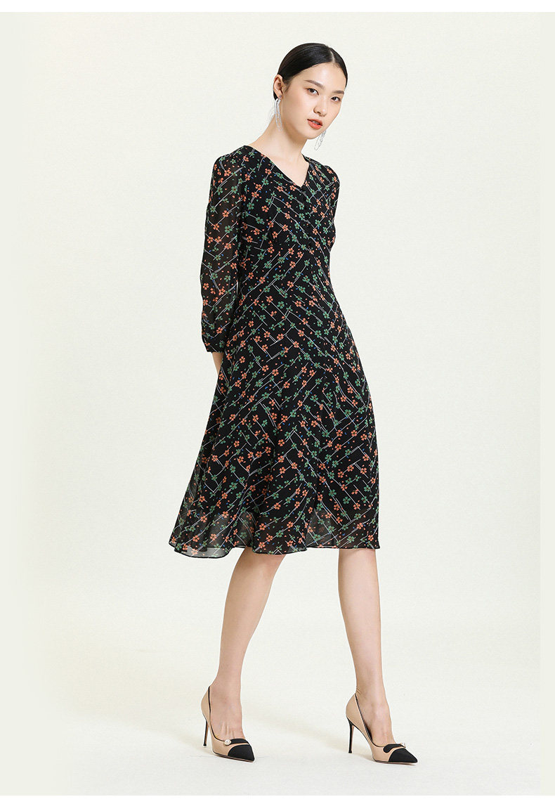乔万尼新款秋V领显瘦长袖收腰洋气中长设计感气质连衣裙ES3E585