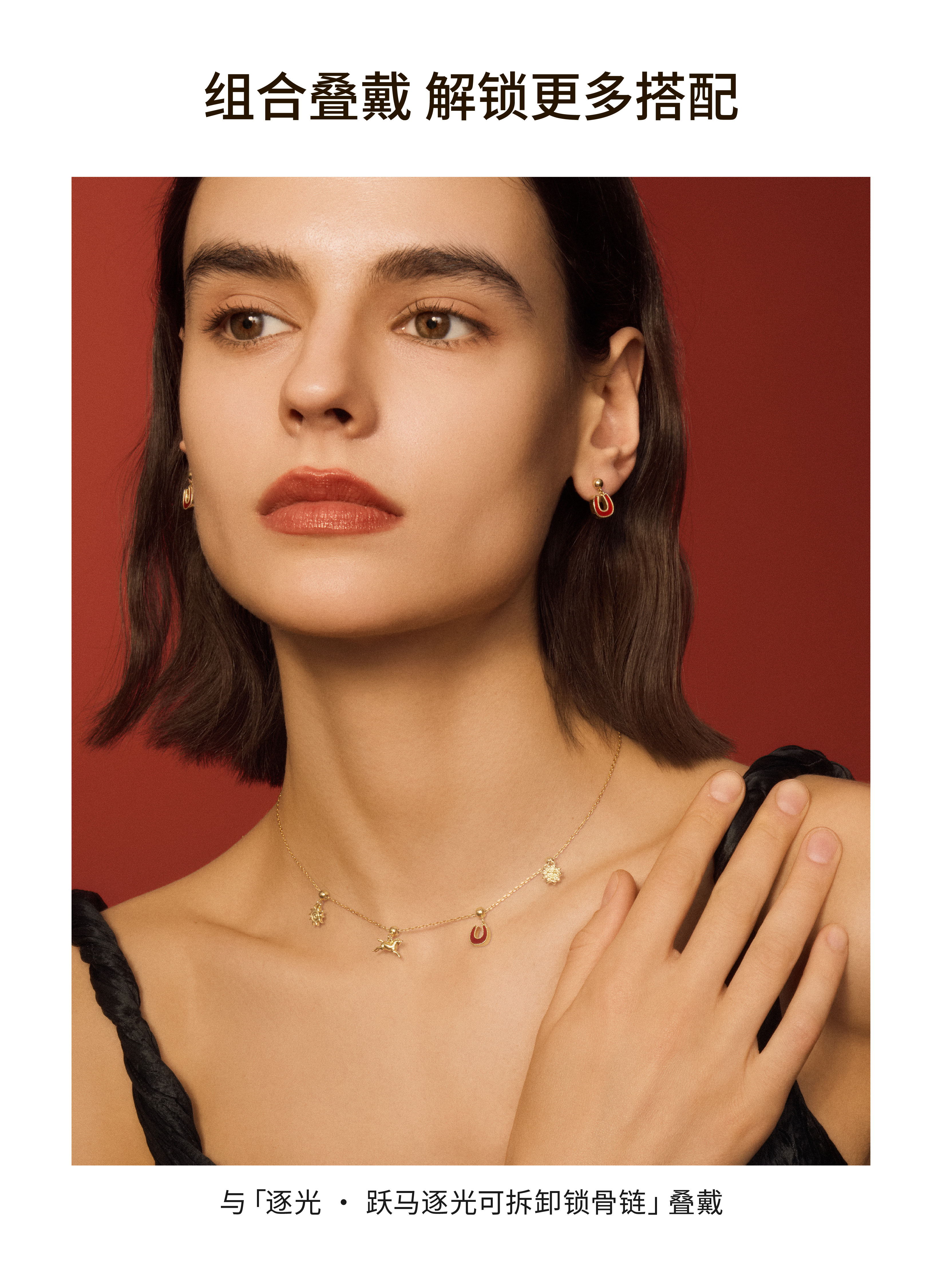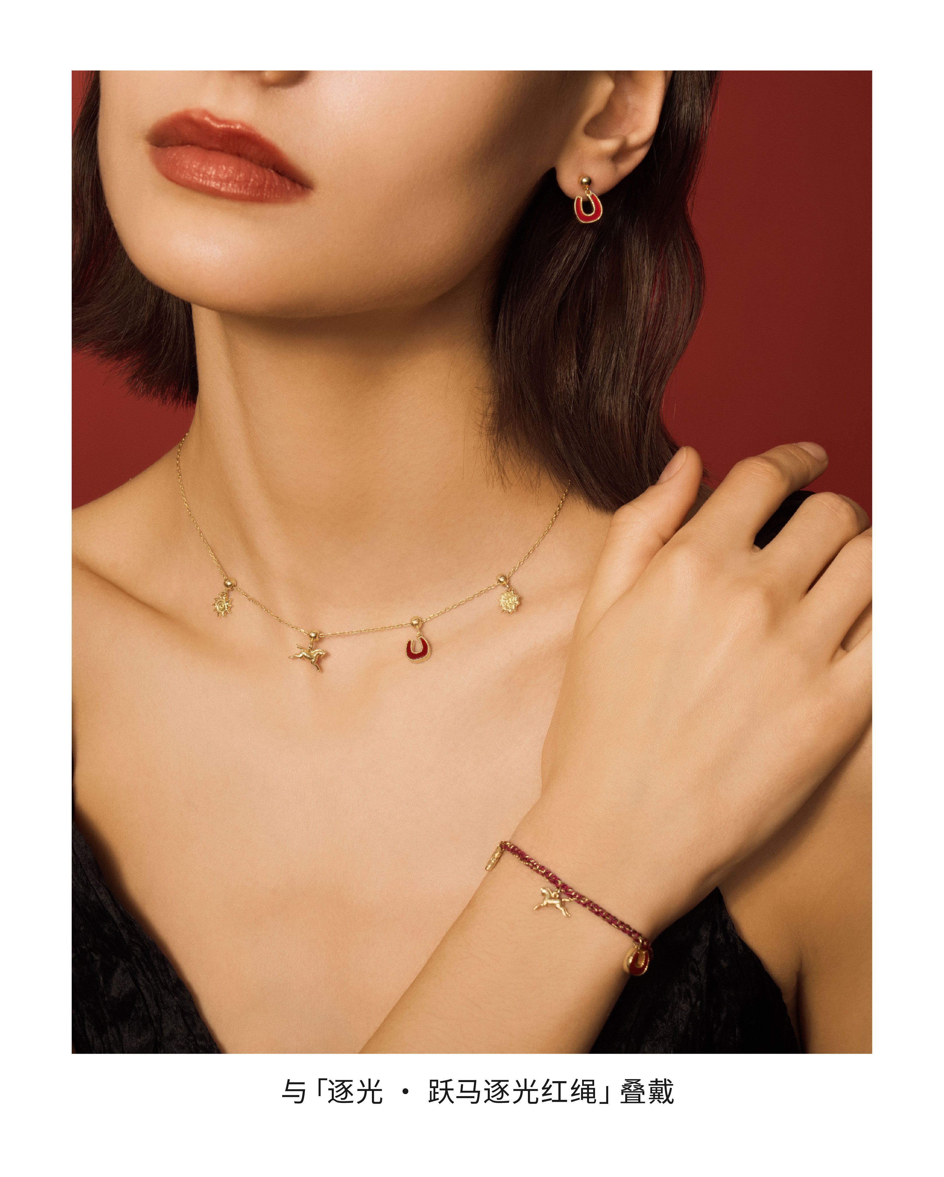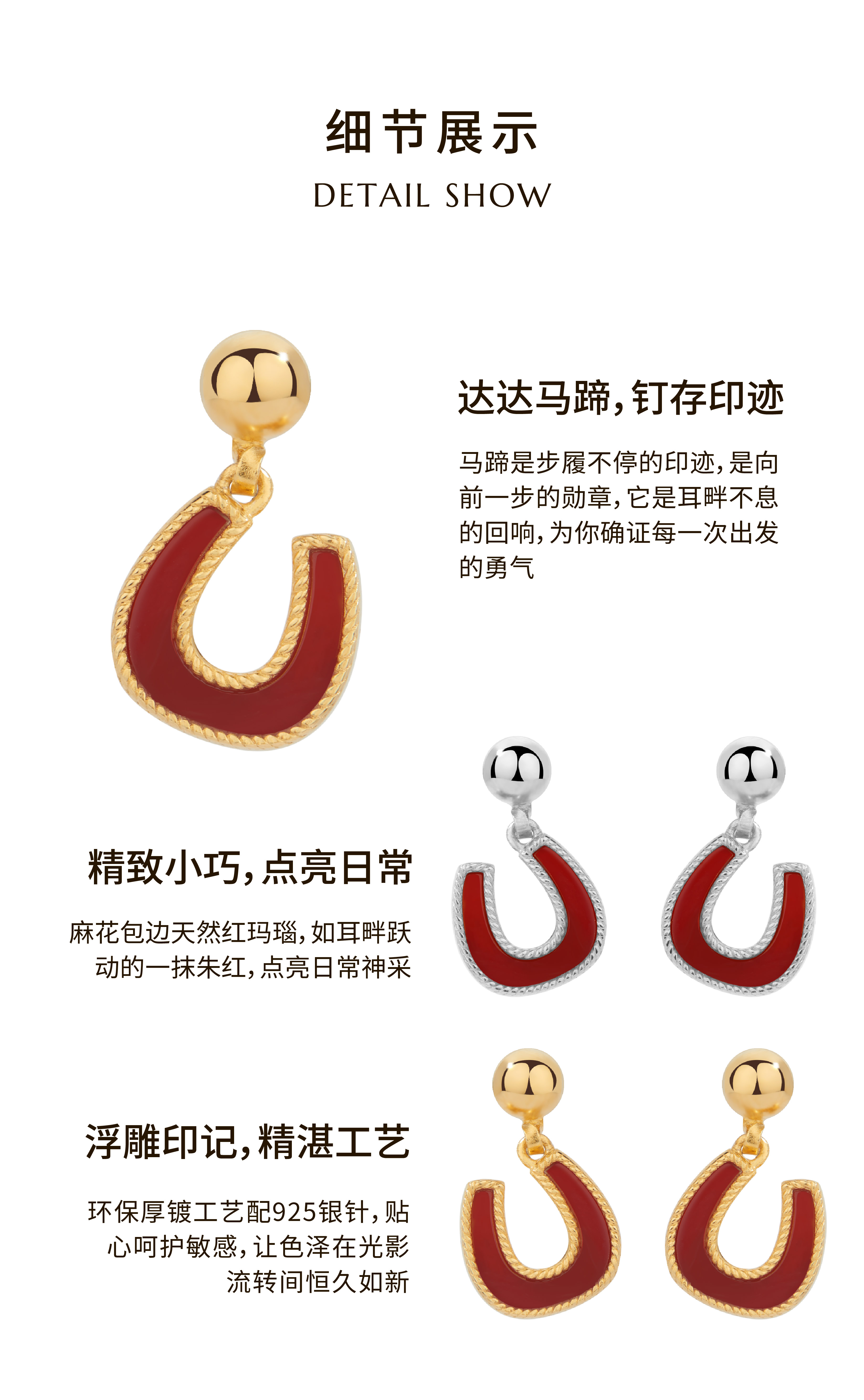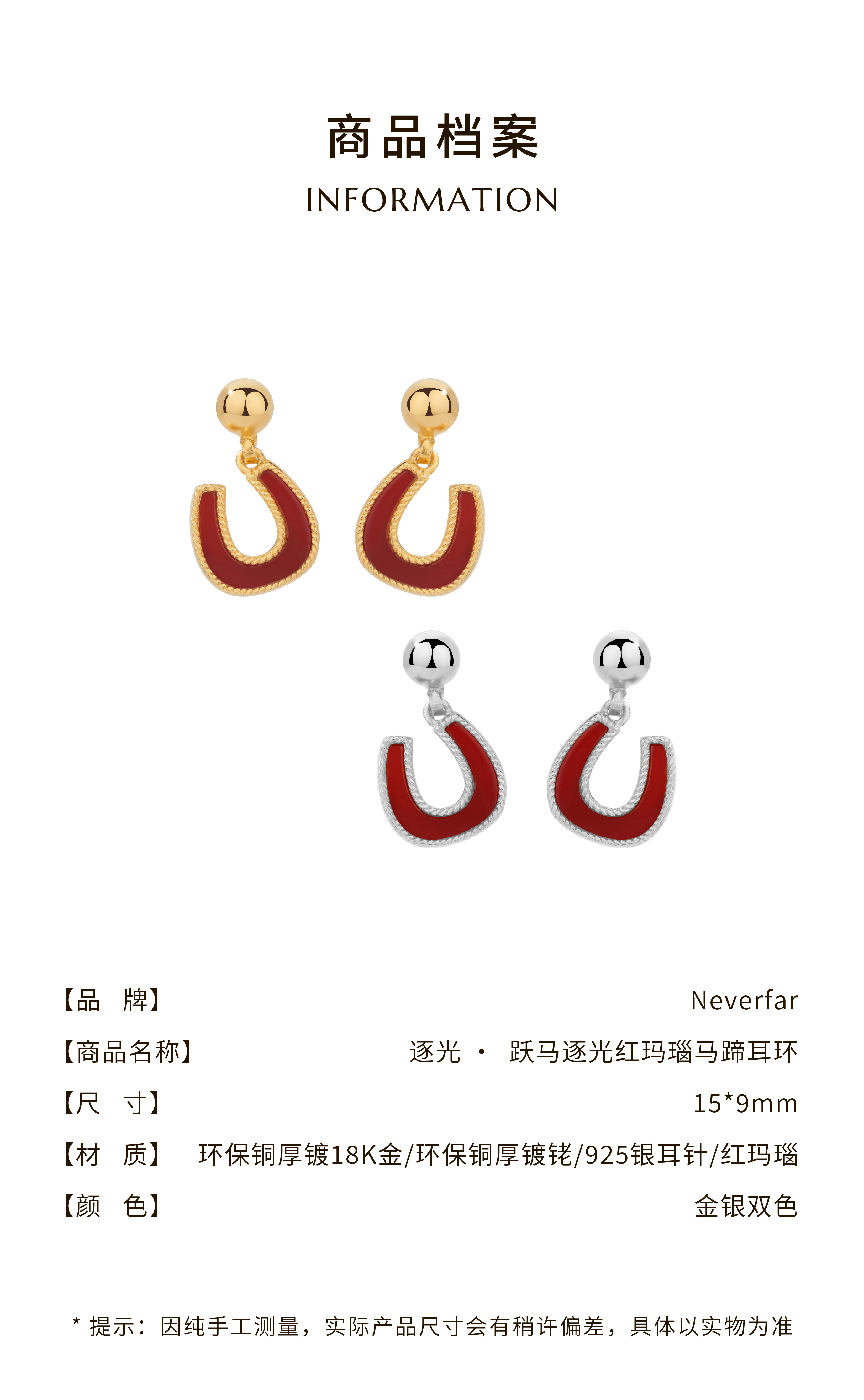 Neverfar 跃马逐光系列跃马逐光红玛瑙马蹄耳环小号
