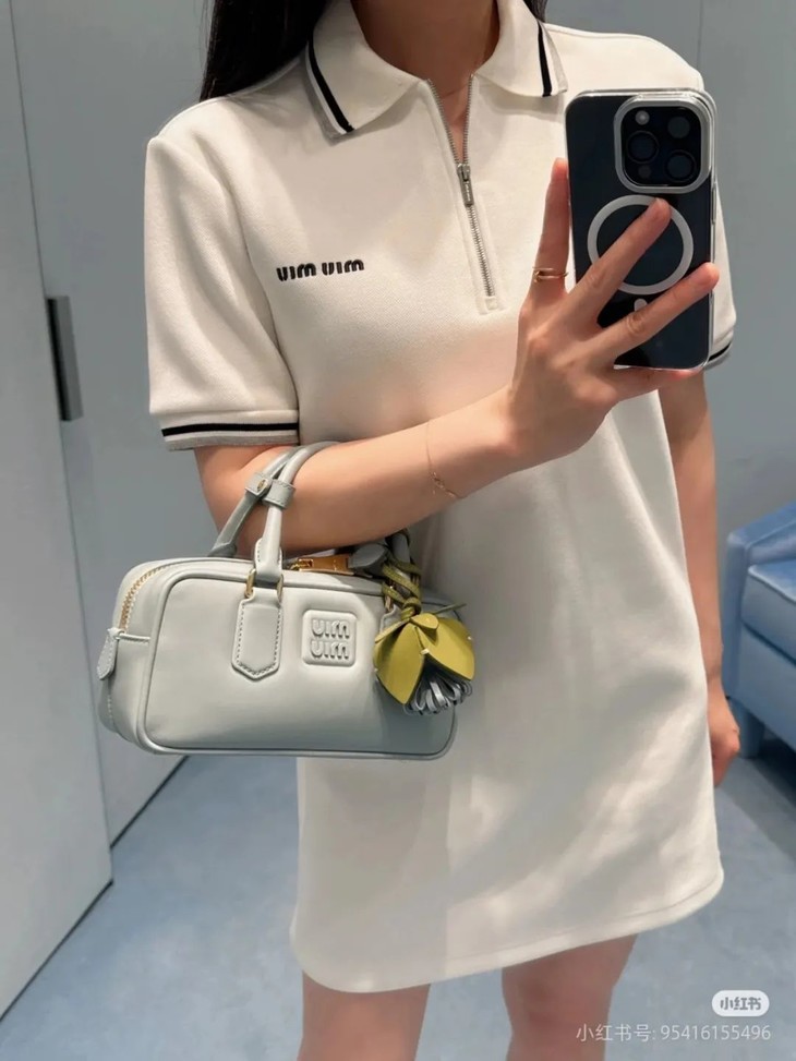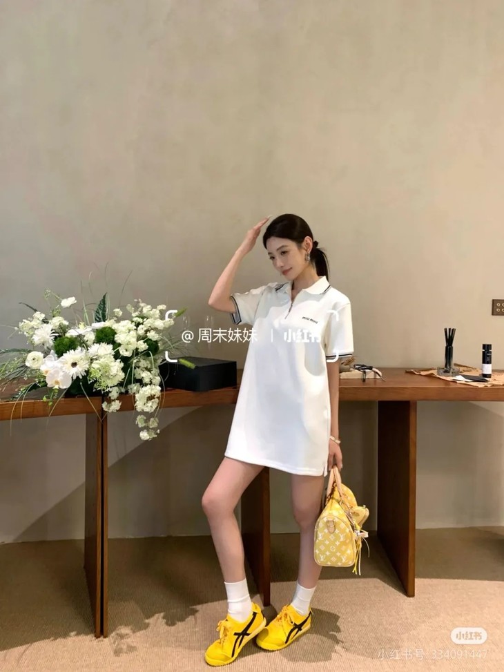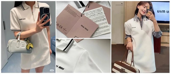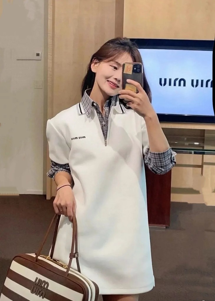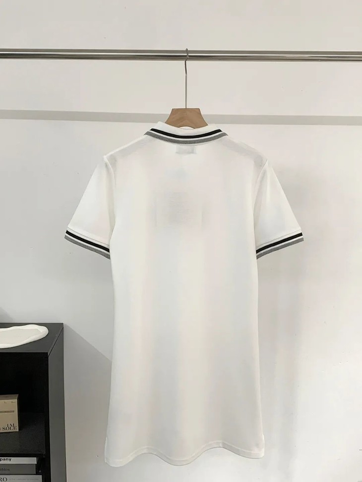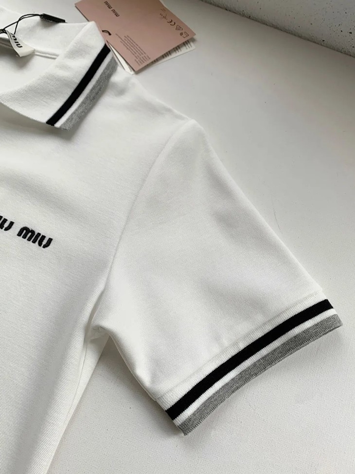 miumi*明星同款复古刺绣纯棉精梳撞色翻领连衣裙