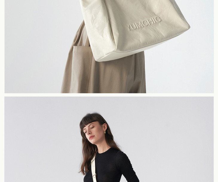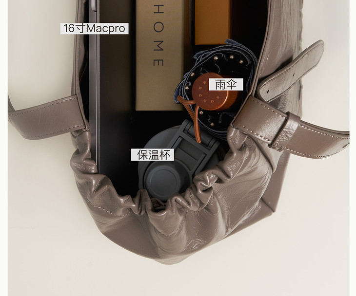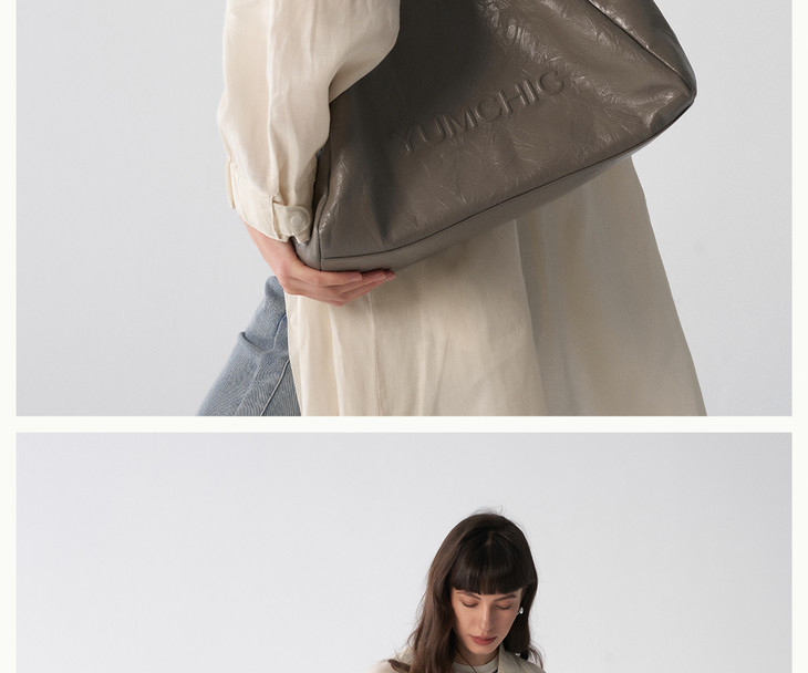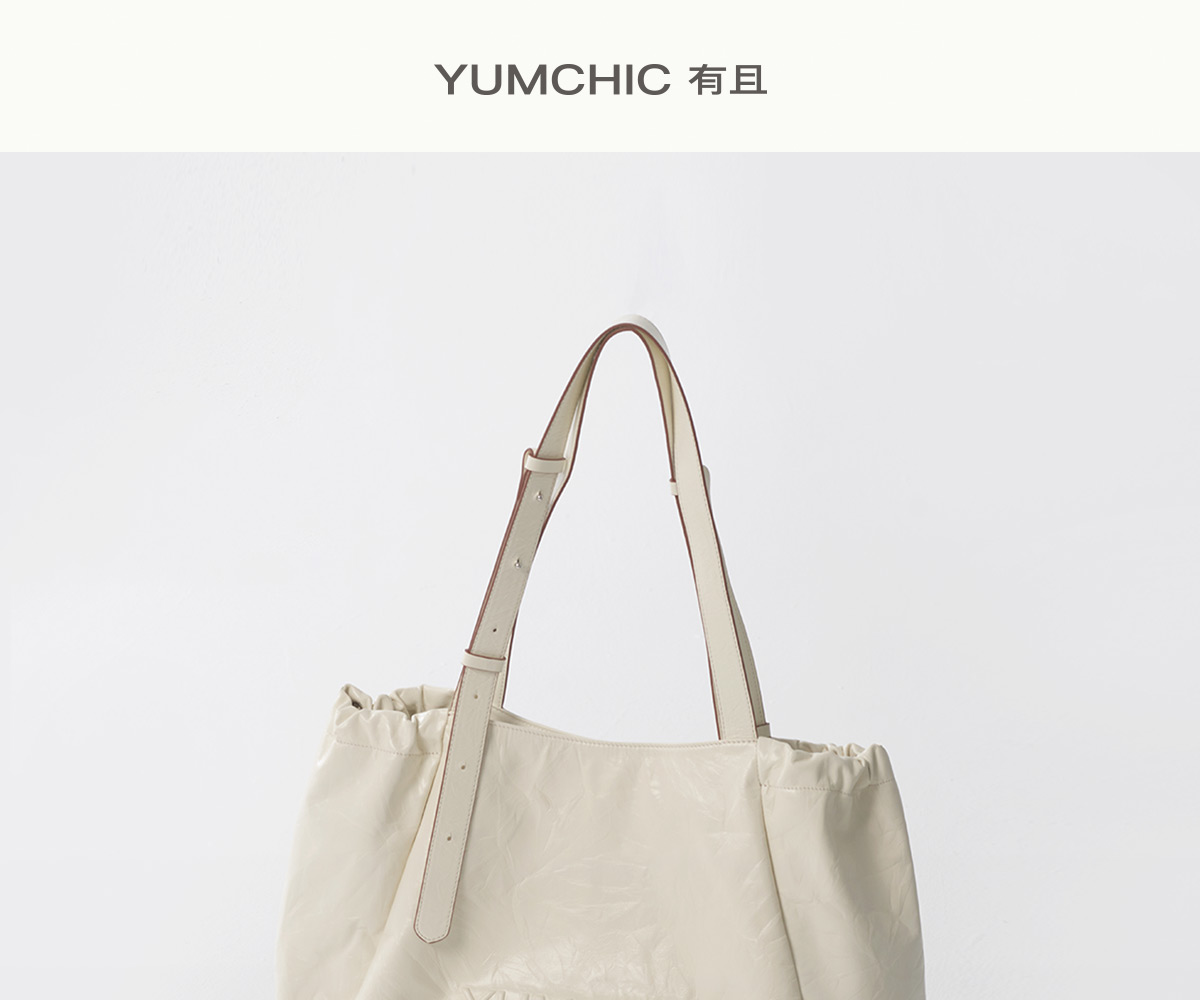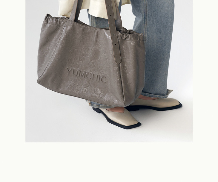 FolliFollie&yumchic 购物包真皮大容量皱皱软托特totebag头层牛皮单肩包