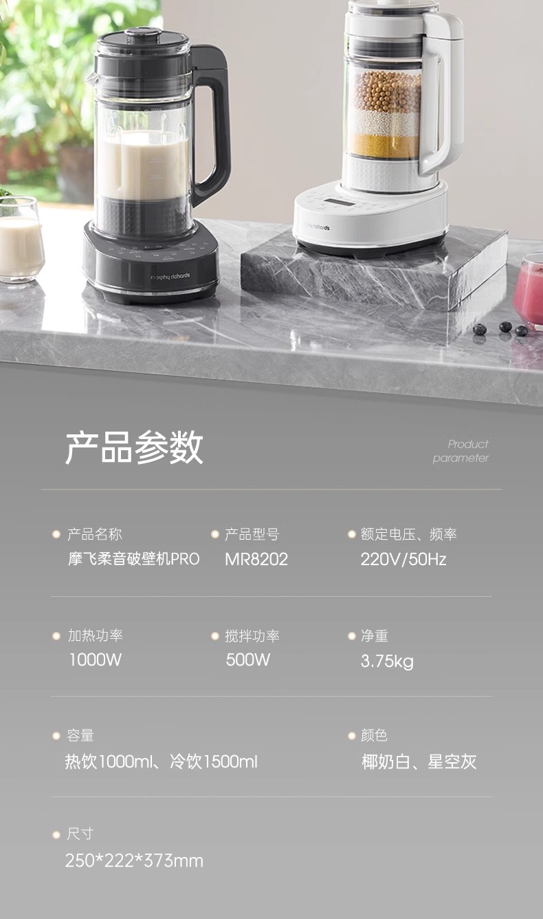 英国morphy摩飞MR8202多功能破壁料理机(轻奢蓝)