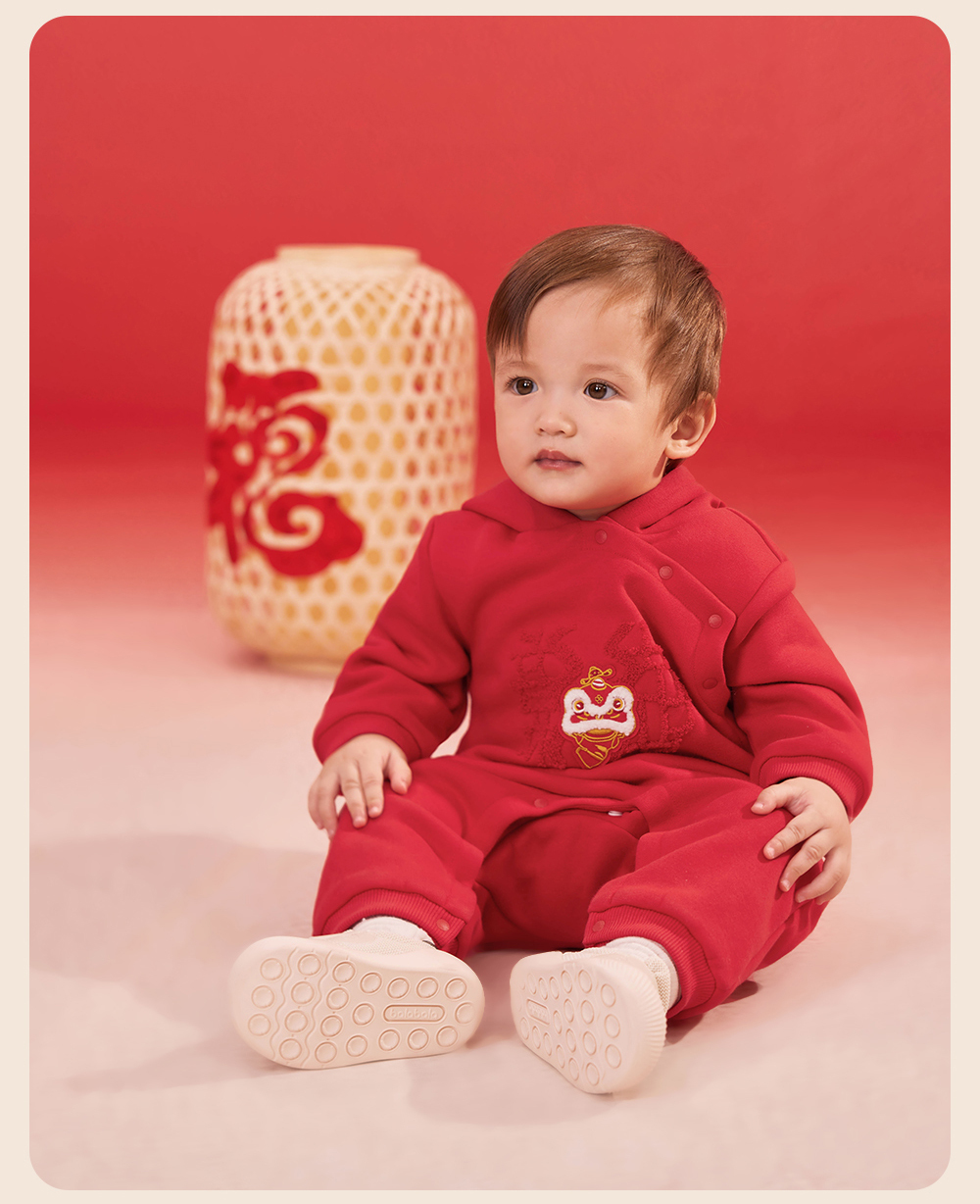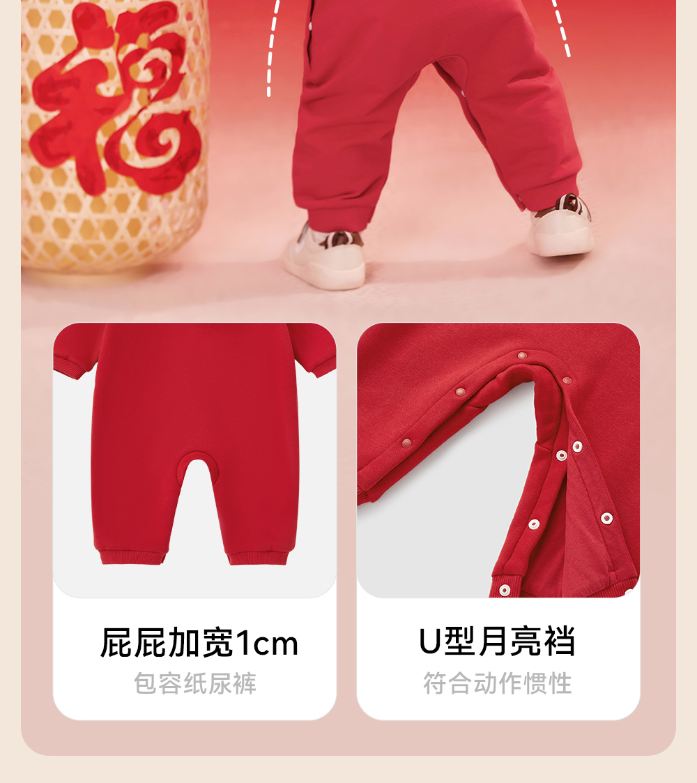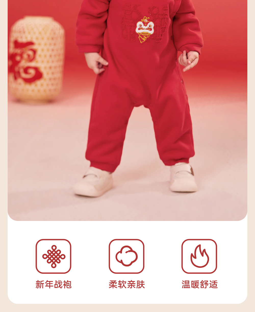 【商场同款】英氏婴儿衣服秋冬羊羔绒保暖男女童连体衣拜年服国风