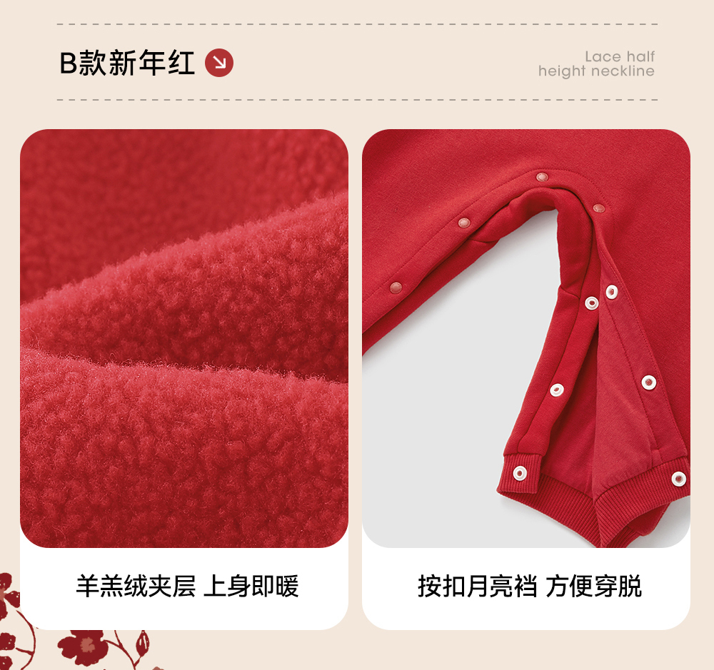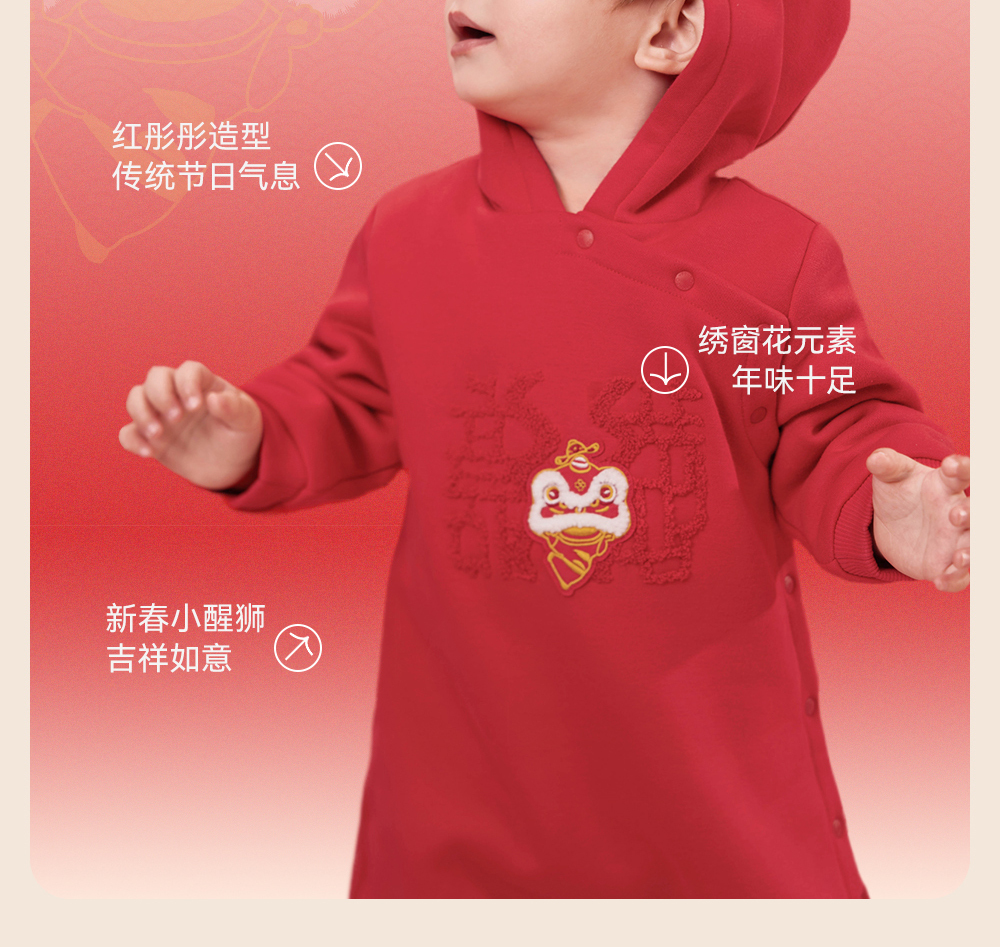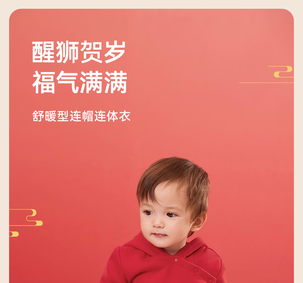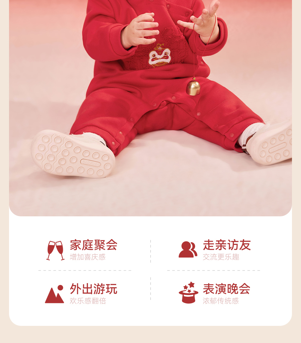 【商场同款】英氏婴儿衣服秋冬羊羔绒保暖男女童连体衣拜年服国风