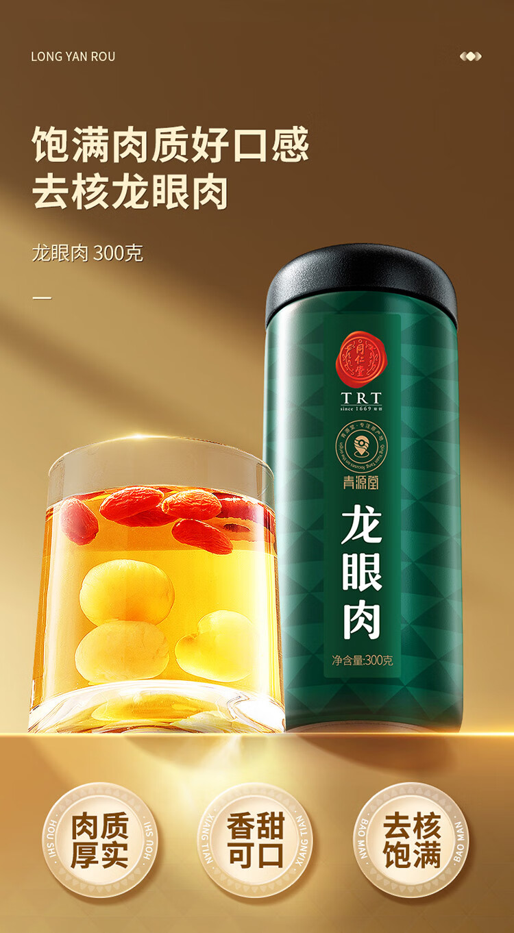 【168元任选3件】【正宗同仁堂品牌】北京同仁堂 青源堂 桂圆肉300g 肉质厚实 去核饱满 口感甘甜SY