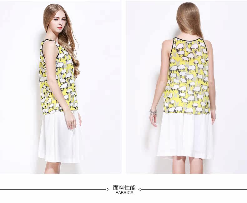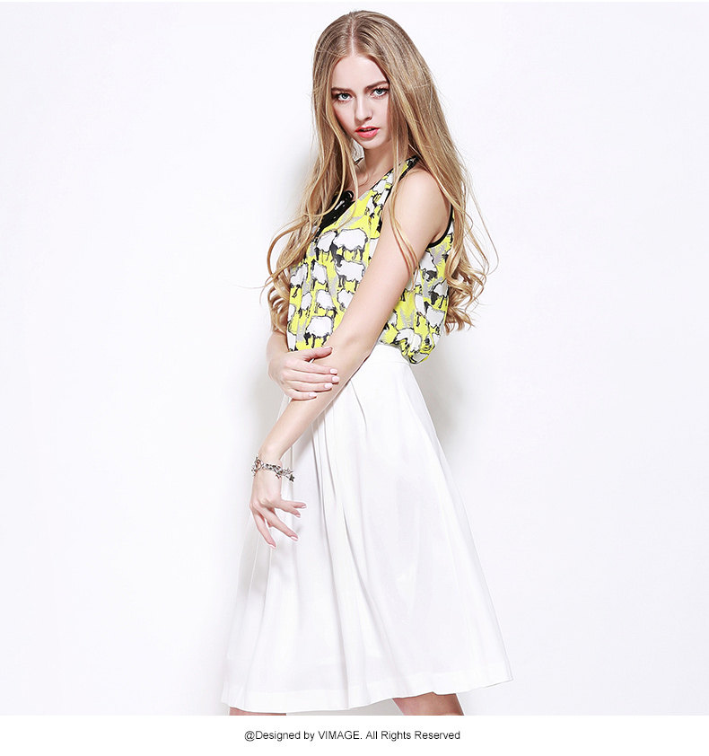VIMAGE纬漫纪夏款女装花色雪纺上衣动物图案印花无袖雪纺衫 女V03090024