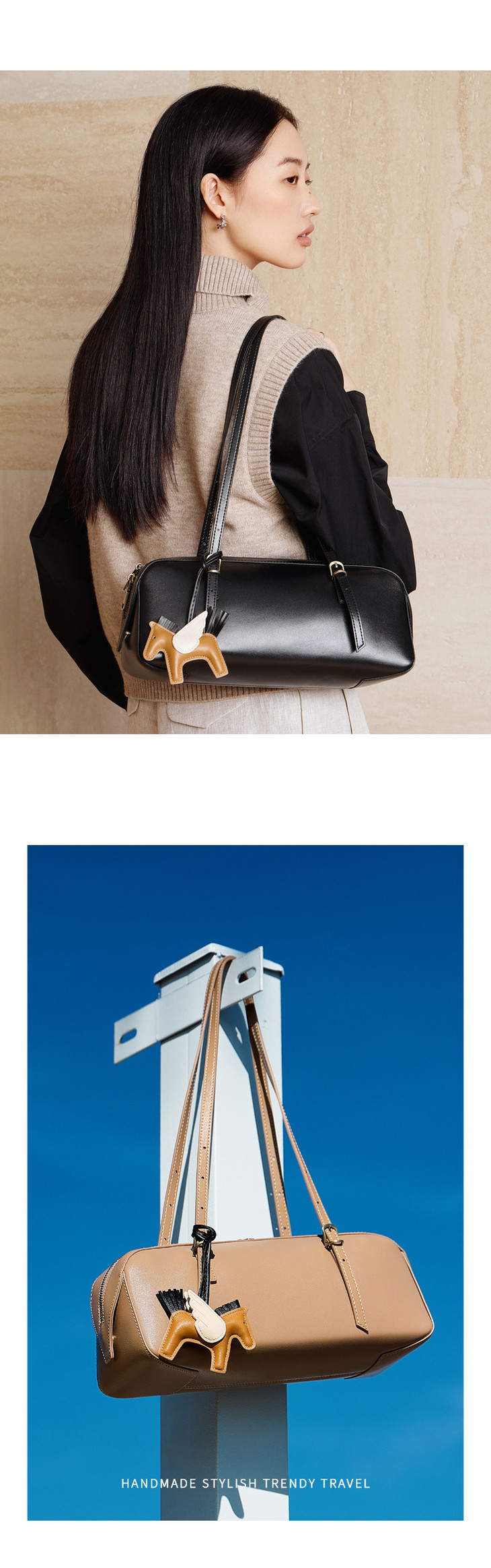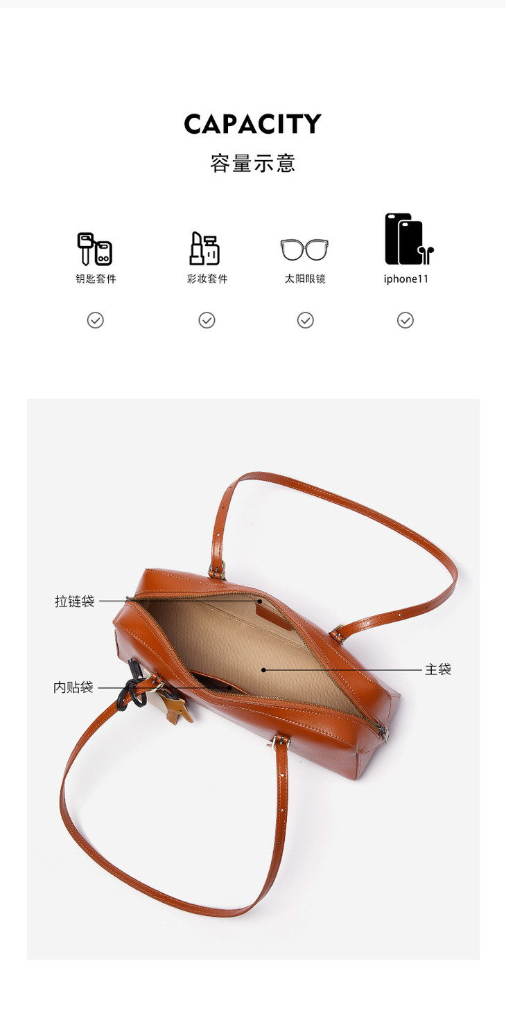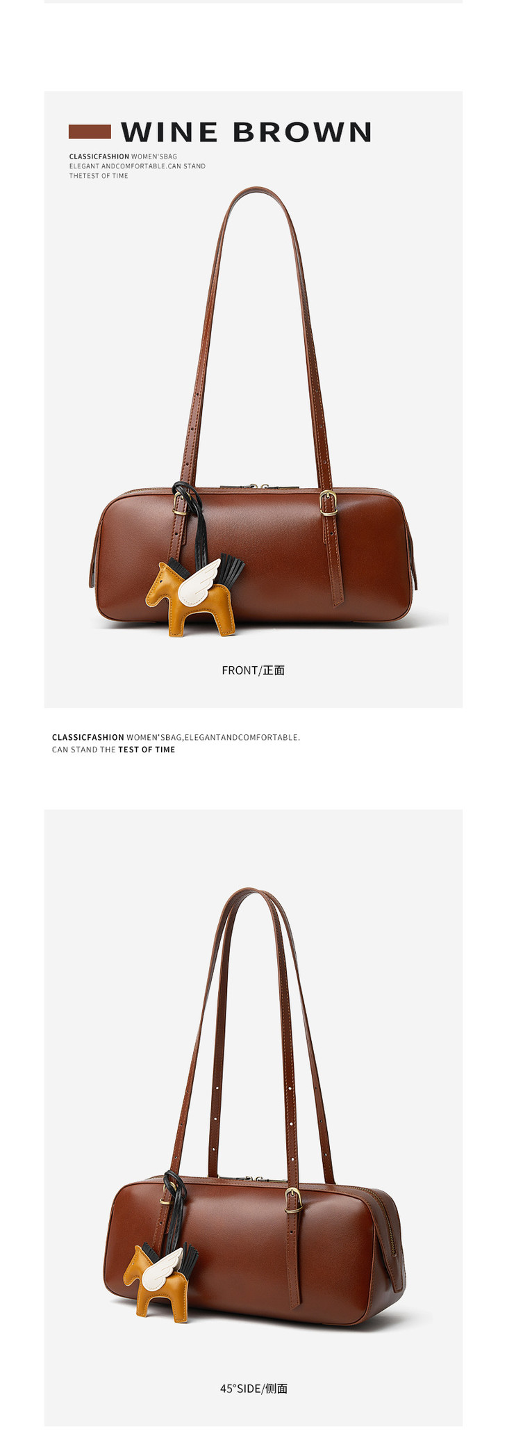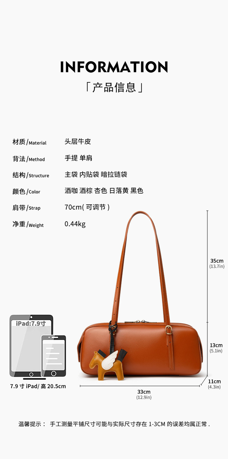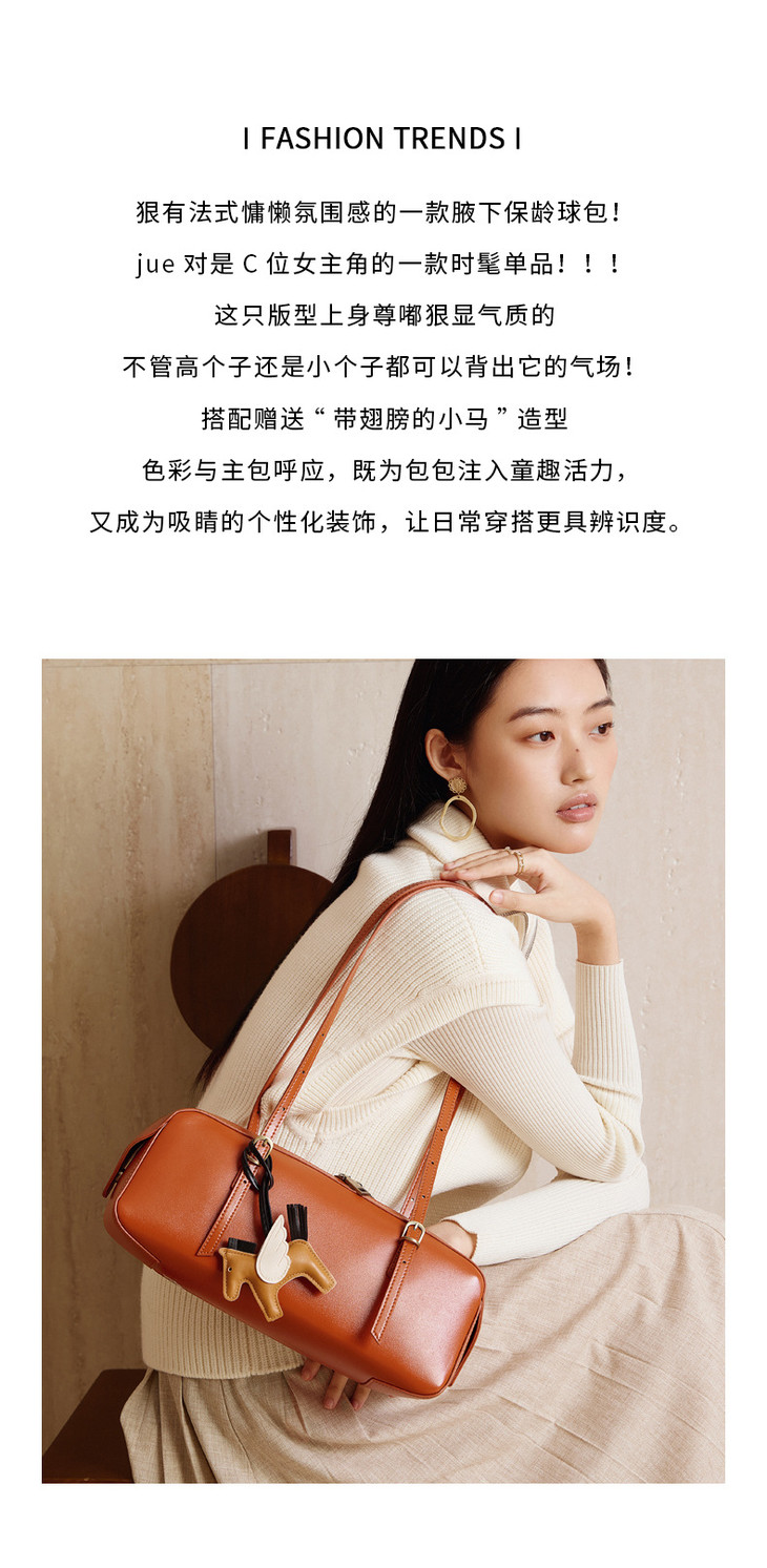 真皮腋下包复古保龄球包,百搭包包小众植鞣头层牛皮包手提包女包QSL-3186