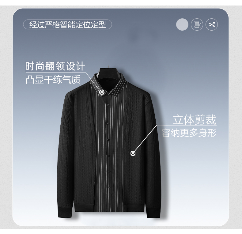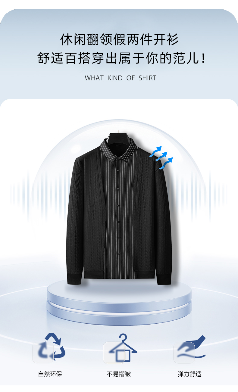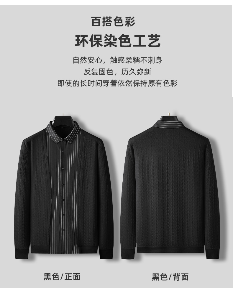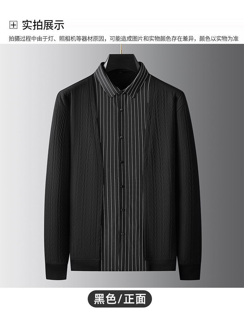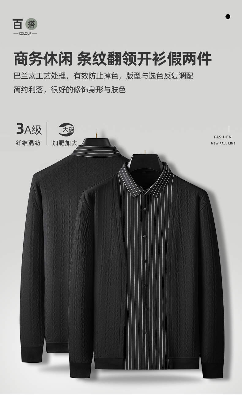 【假两件】【新款DDA】大依优型大码男士假两件开衫长袖T恤商务休闲上衣加肥加大胖子舒适