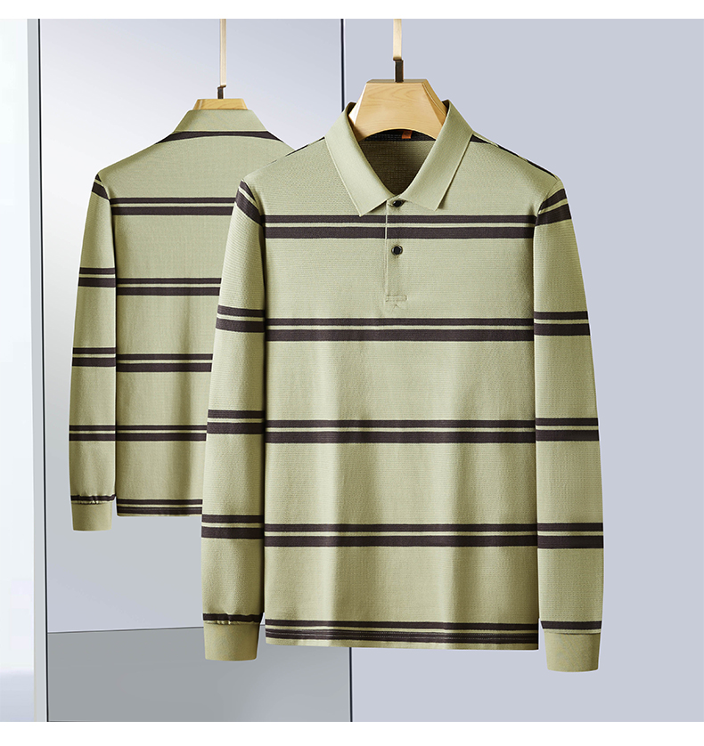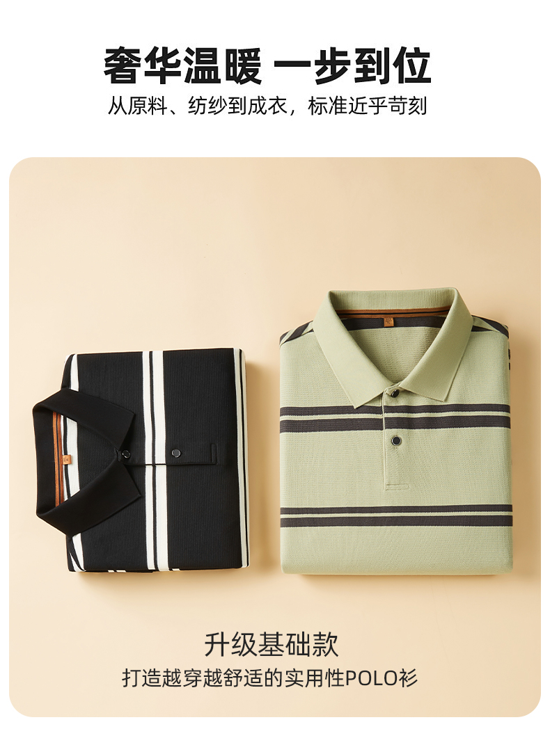 【新款DDP】大依优型大码条纹长袖Polo衫翻领男装加肥加大体恤大号上衣胖子弹力休闲商务 商品图9