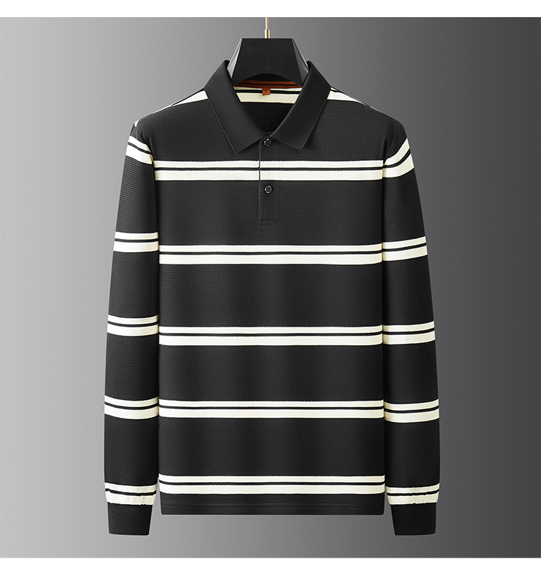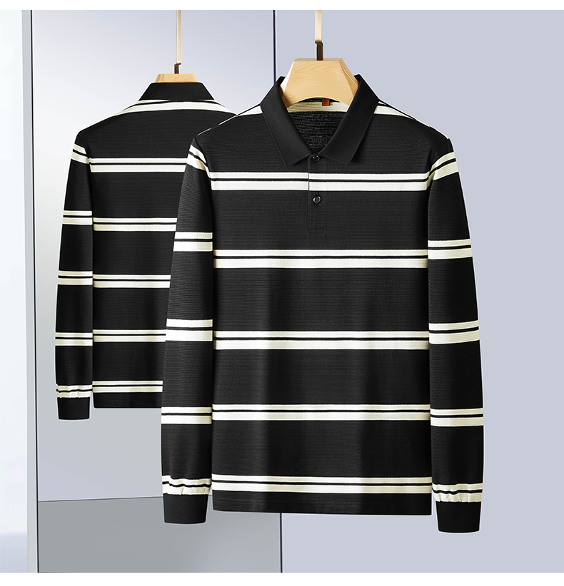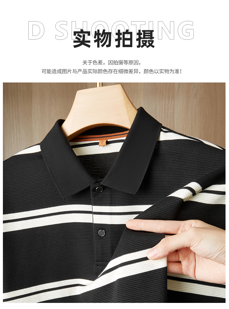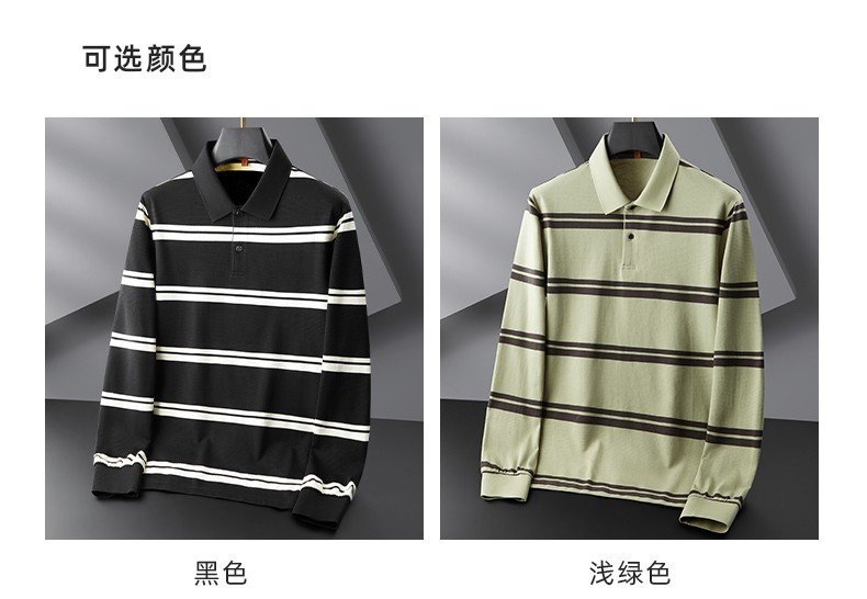 【新款DDP】大依优型大码条纹长袖Polo衫翻领男装加肥加大体恤大号上衣胖子弹力休闲商务 商品图10