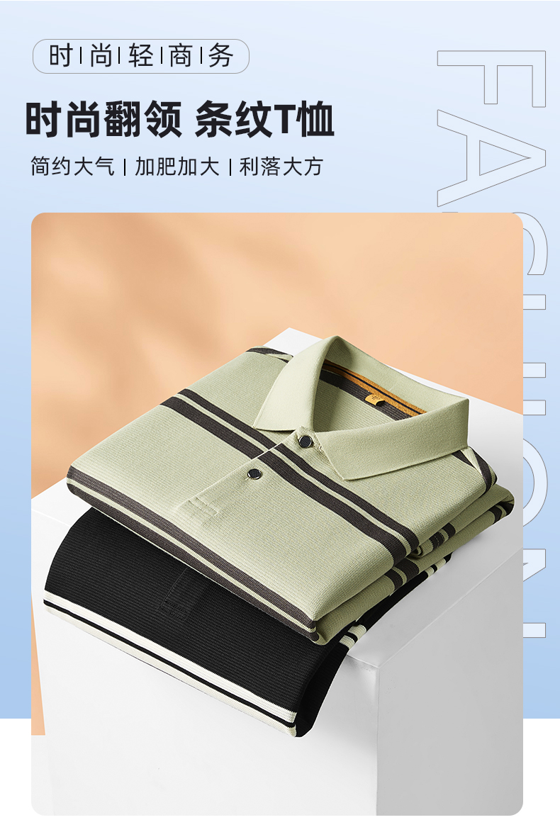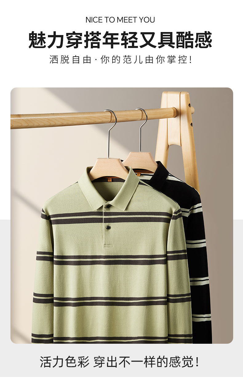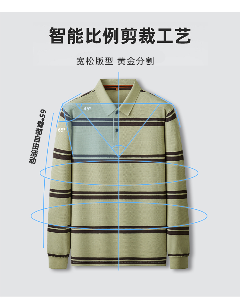 【新款DDP】大依优型大码条纹长袖Polo衫翻领男装加肥加大体恤大号上衣胖子弹力休闲商务 商品图6