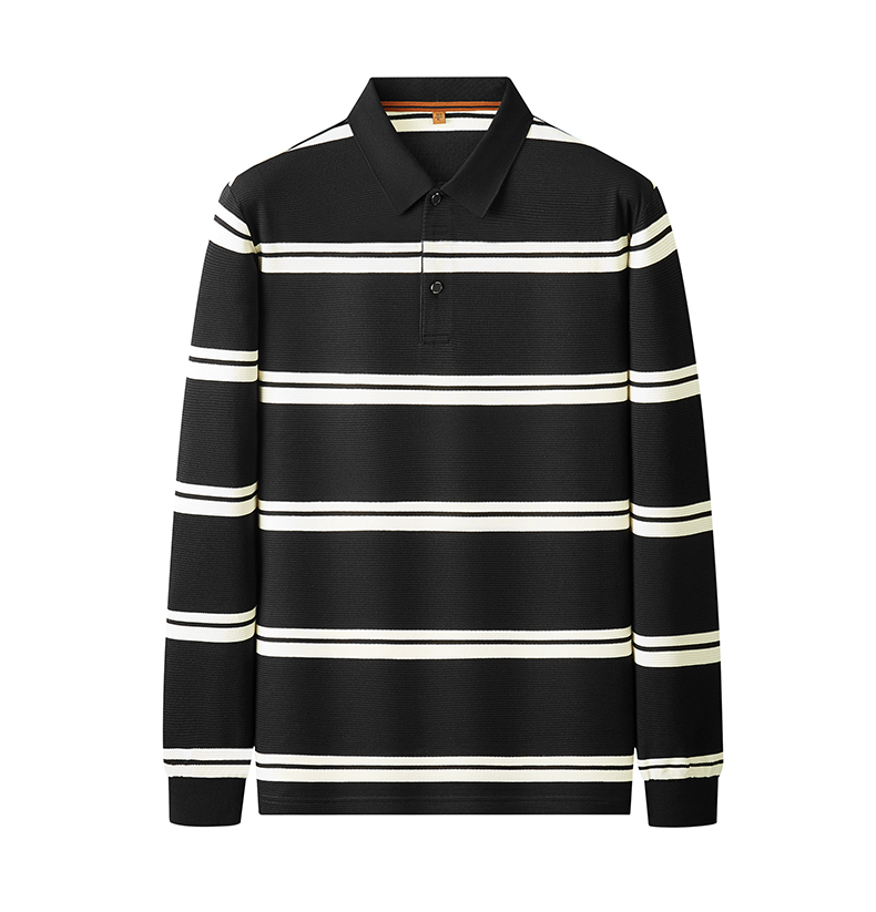 【新款DDP】大依优型大码条纹长袖Polo衫翻领男装加肥加大体恤大号上衣胖子弹力休闲商务 商品图0