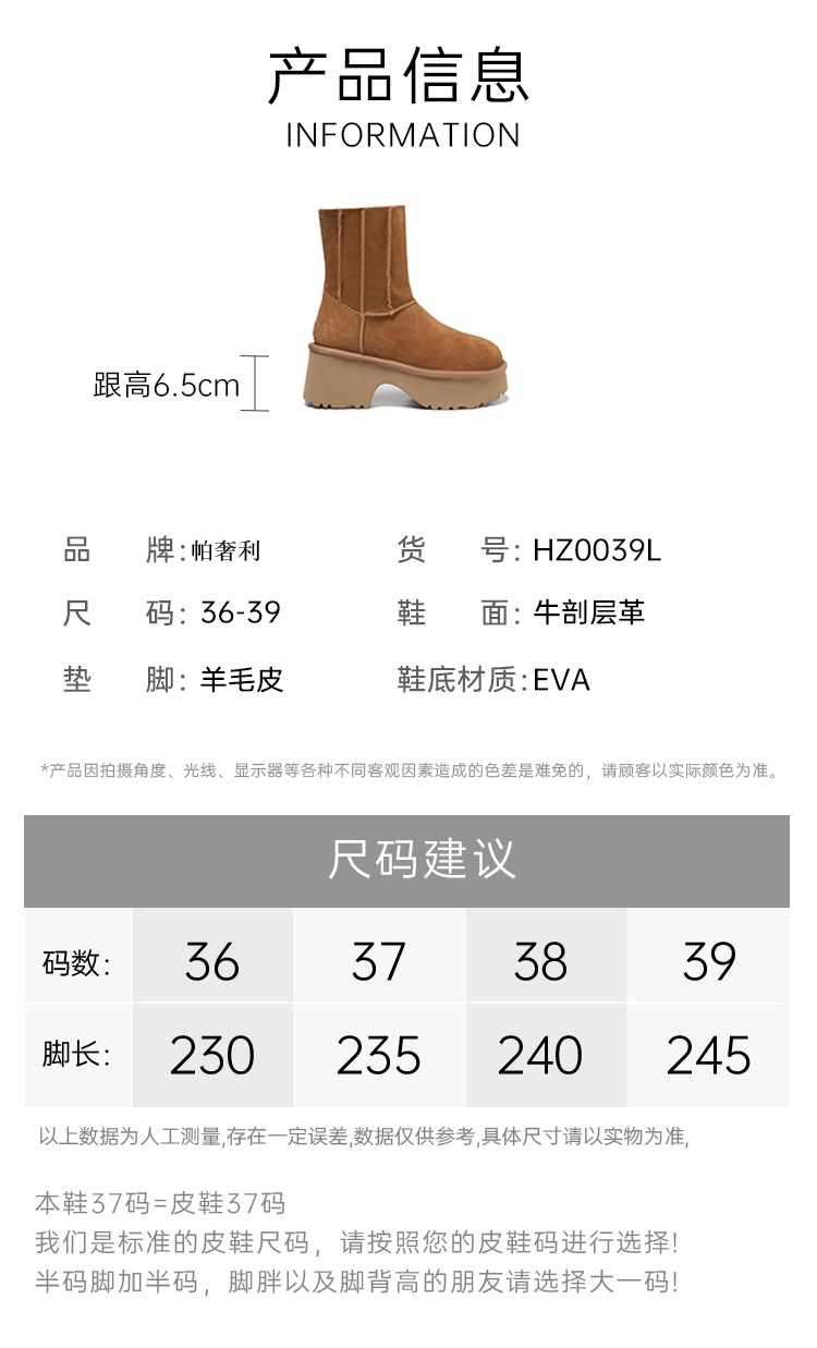【梅花出品】帕奢利/LAMY人鱼底高筒拉链款铅笔筒雪地靴HZ0039