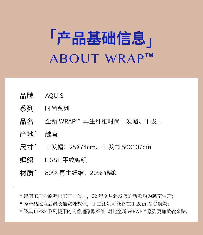 AQUIS 美国黑科技WRAP干发帽再生纤维吸水发帽