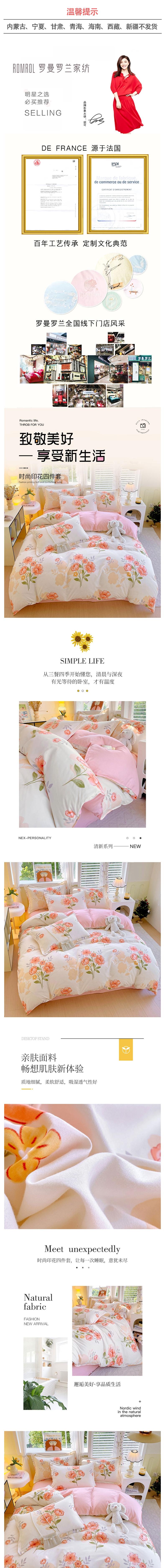 罗曼罗兰 加厚磨毛四件套花园春景200*230cm 6925314787475